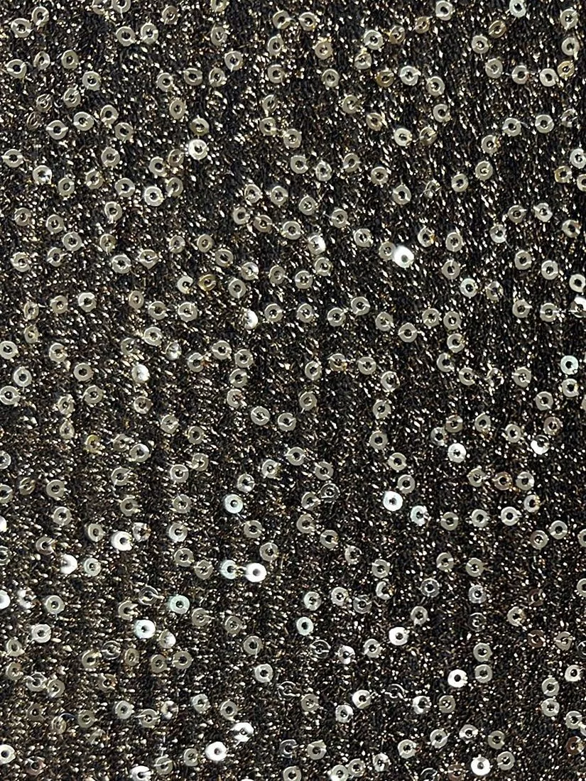 Stretch Jersey with applique sequins. Suitable for use in occasion wear.