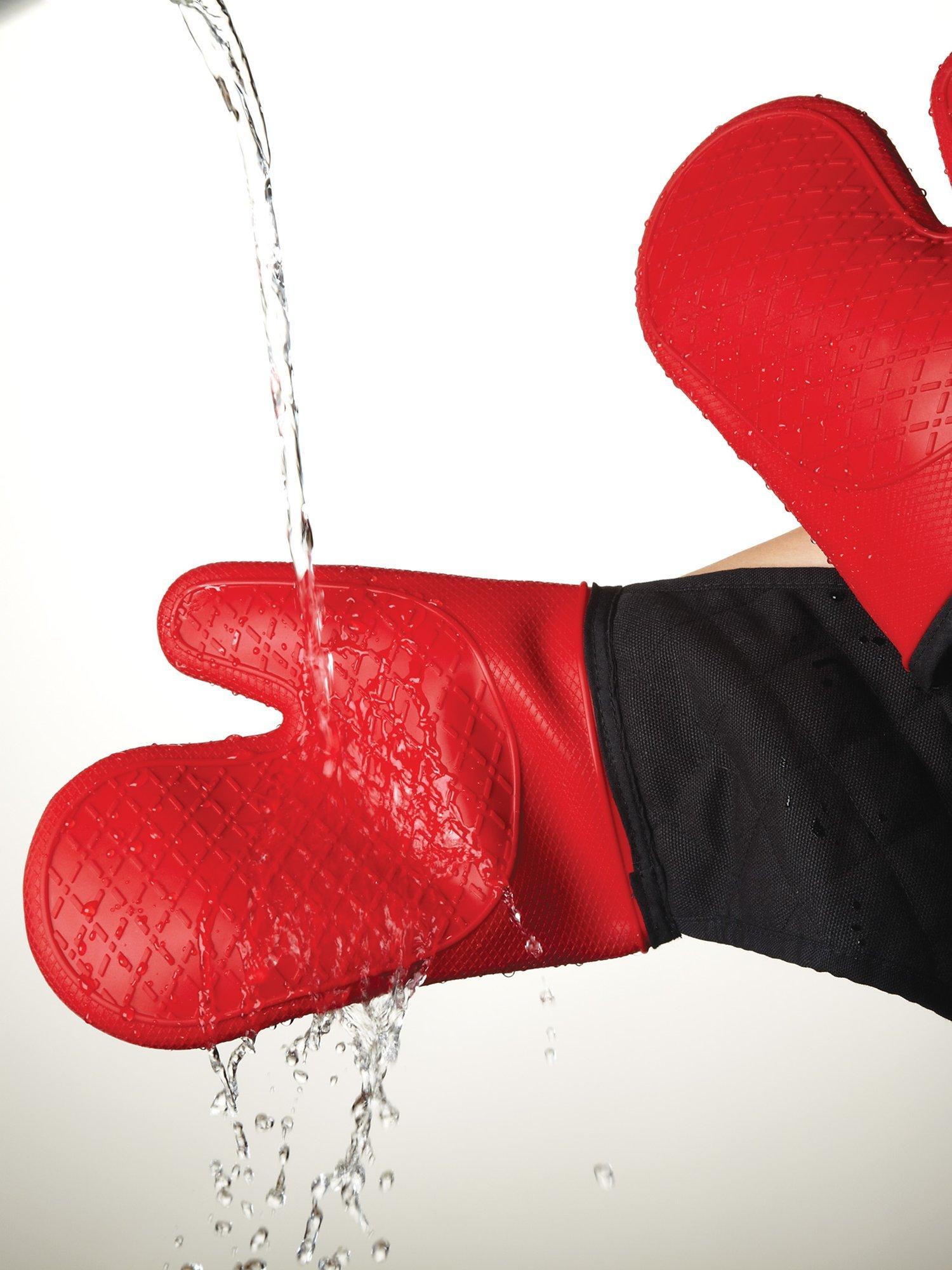 MasterclassSilicon Double Oven Gloves, Red / Black