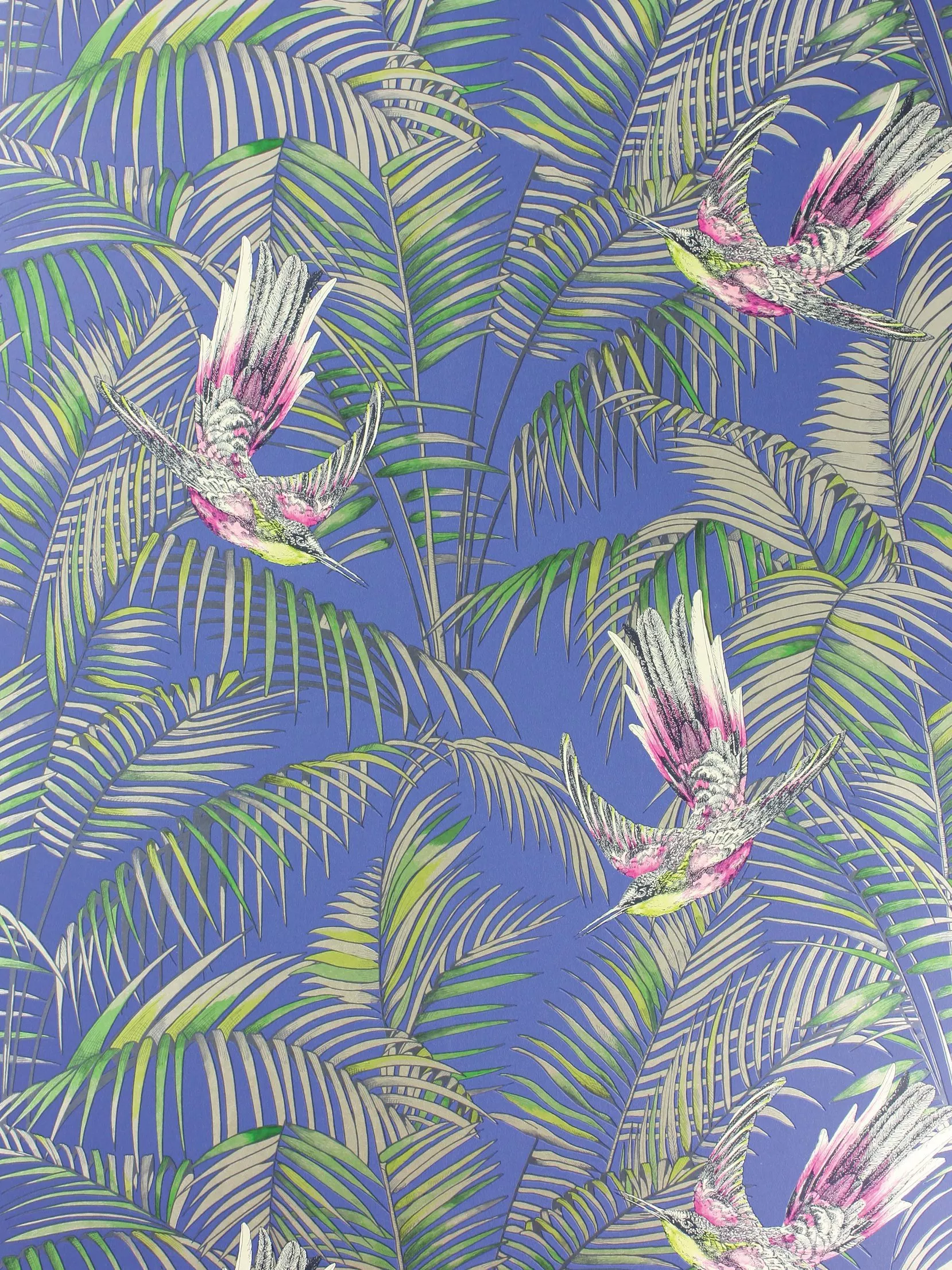 An exotic bird with extravagant plumage darting between rich foliage - designed by Matthew Williamson.