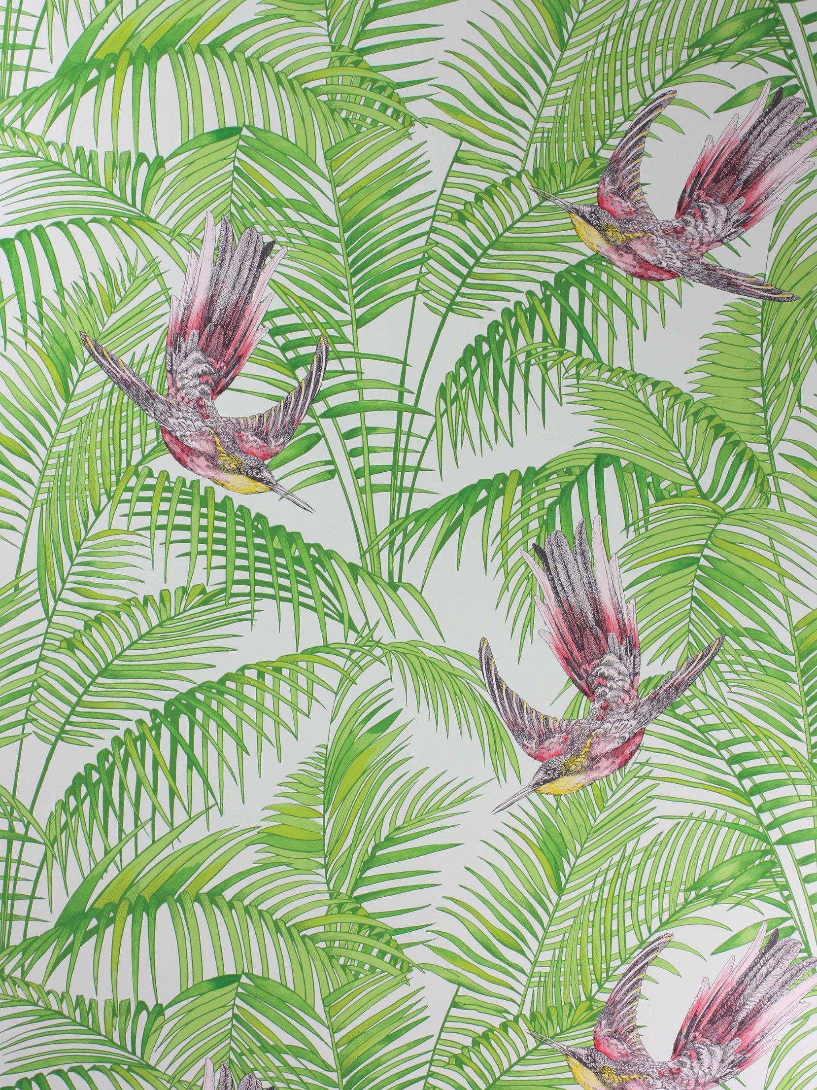 An exotic bird with extravagant plumage darting between rich foliage - designed by Matthew Williamson.