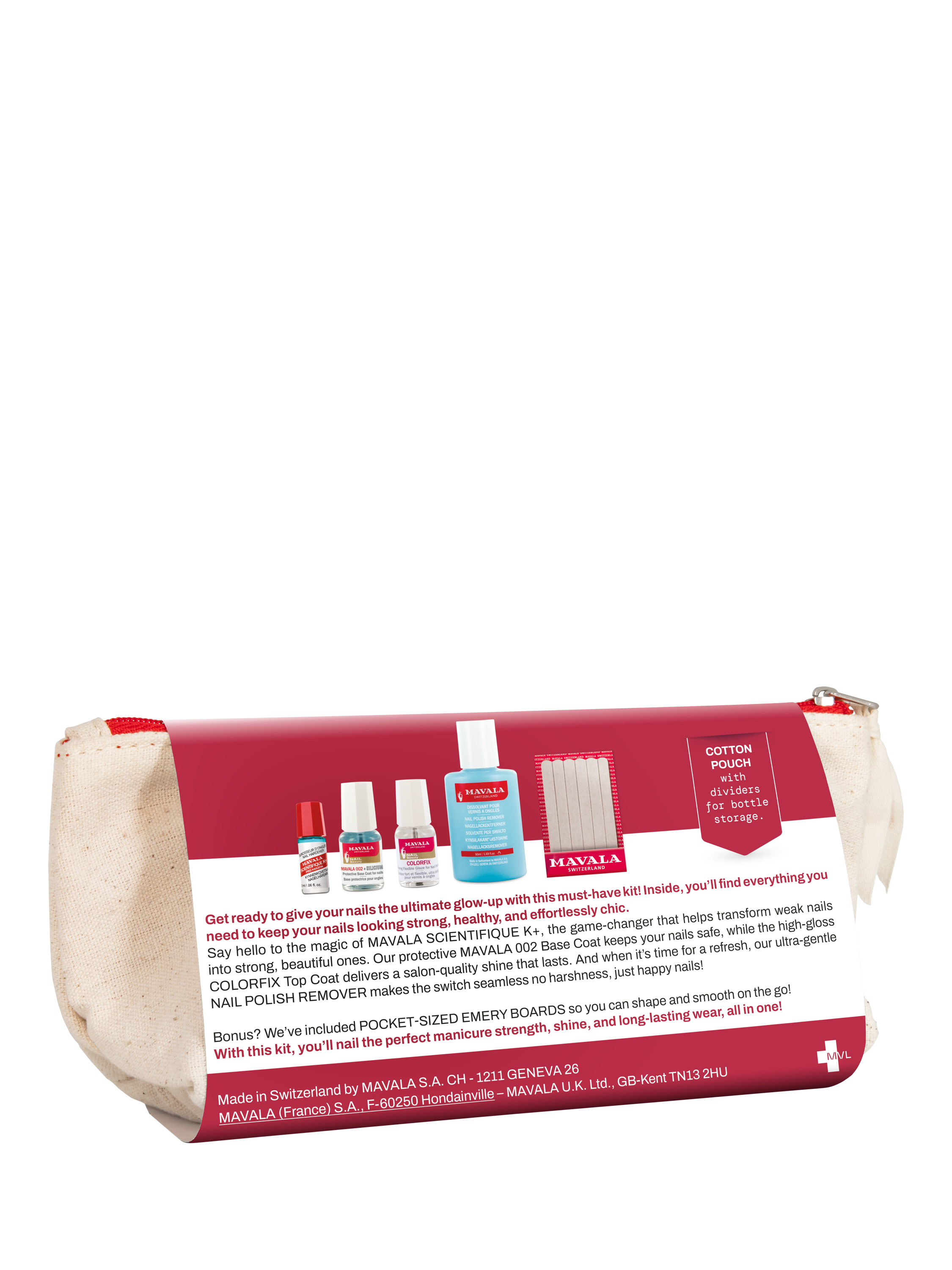Say hello to the magic of Mavala Scientifique K+, the game-changer that helps transform weak nails into strong, beautiful ones. Our protective Mavala 002 Base Coat keeps your nails safe, while the high-gloss Colorfix Top Coat delivers a salon-quality shine that lasts. And when it’s time for a refresh, our ultra-gentle Nail Polish Remover makes the switch seamless no harshness, just happy nails!