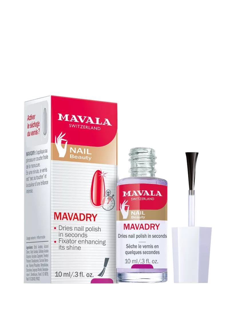 Cut down on drying time and extend the wear of your manicure with Mavadry! This 2-in-1 product ensures your polish is touch-dry in about a minute while adding shine and protection.