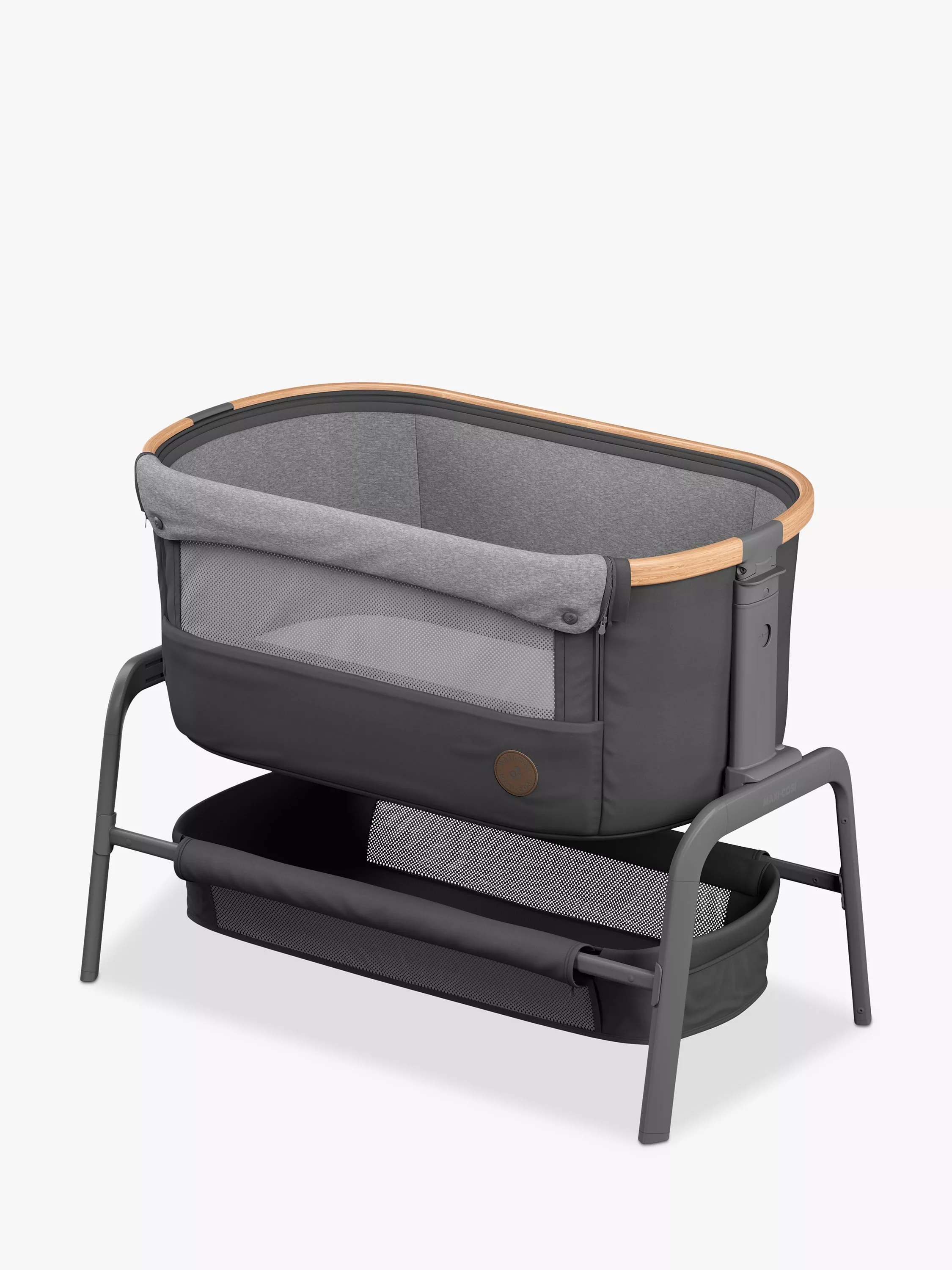 Rest easy knowing that your baby is sleeping in luxury only an arm's reach away with the Maxi-Cosi Iora bedside sleeper - a sophisticated, adjustable crib with an extremely comfortable mattress.
