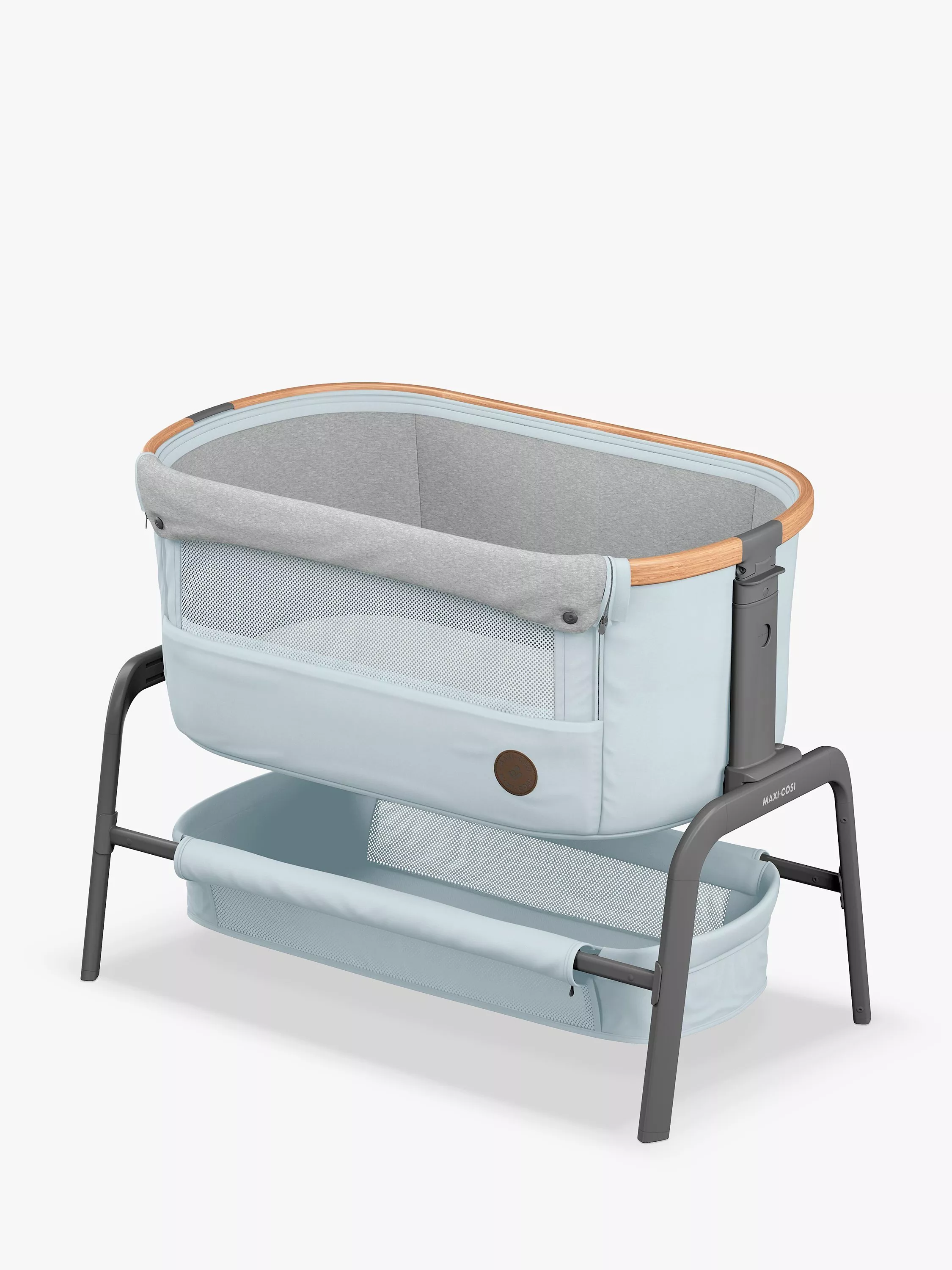 Rest easy knowing that your baby is sleeping in luxury only an arm's reach away with the Maxi-Cosi Iora bedside sleeper - a sophisticated, adjustable crib with an extremely comfortable mattress.