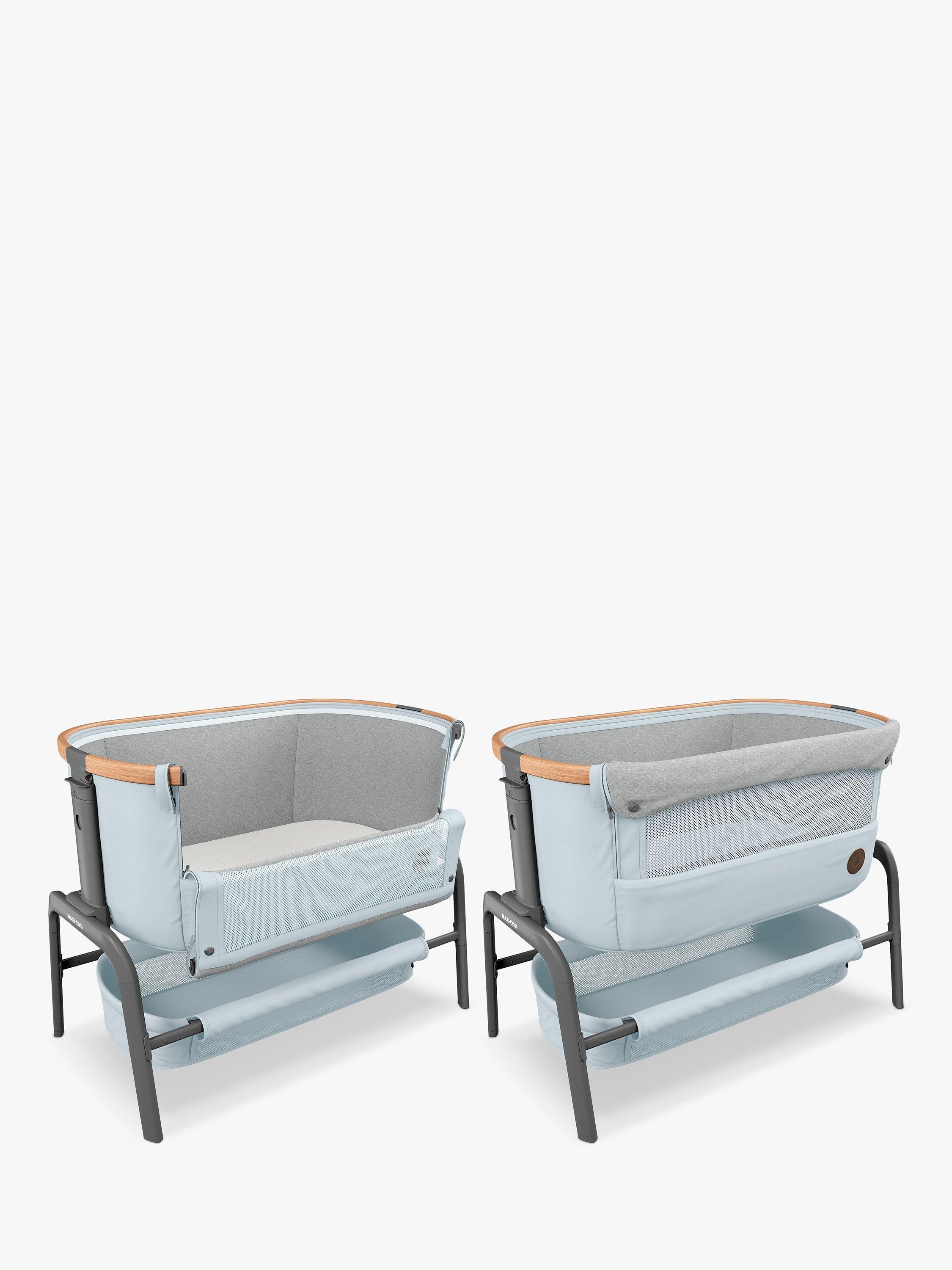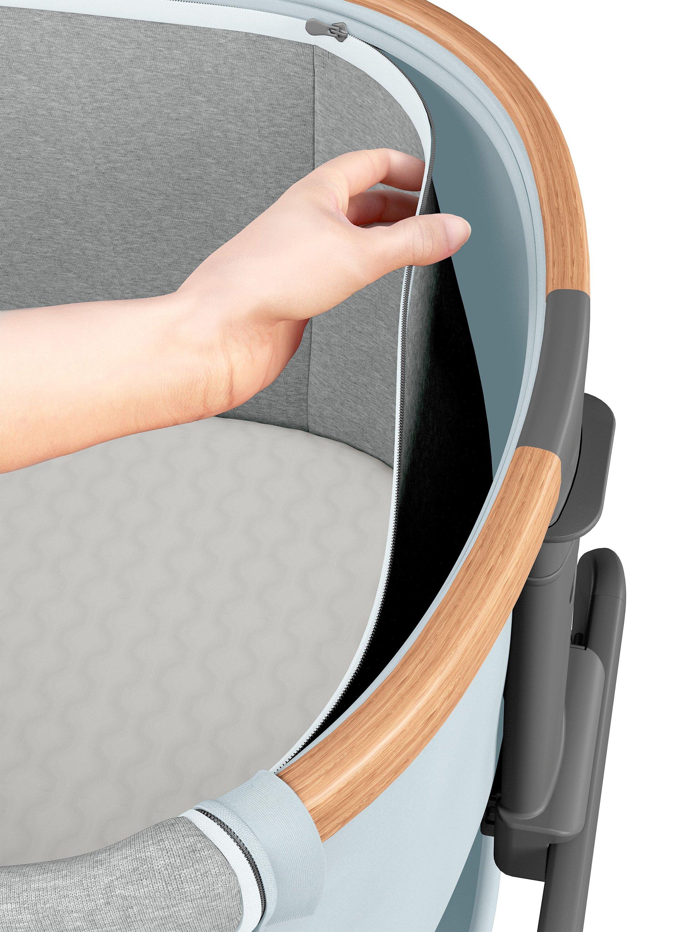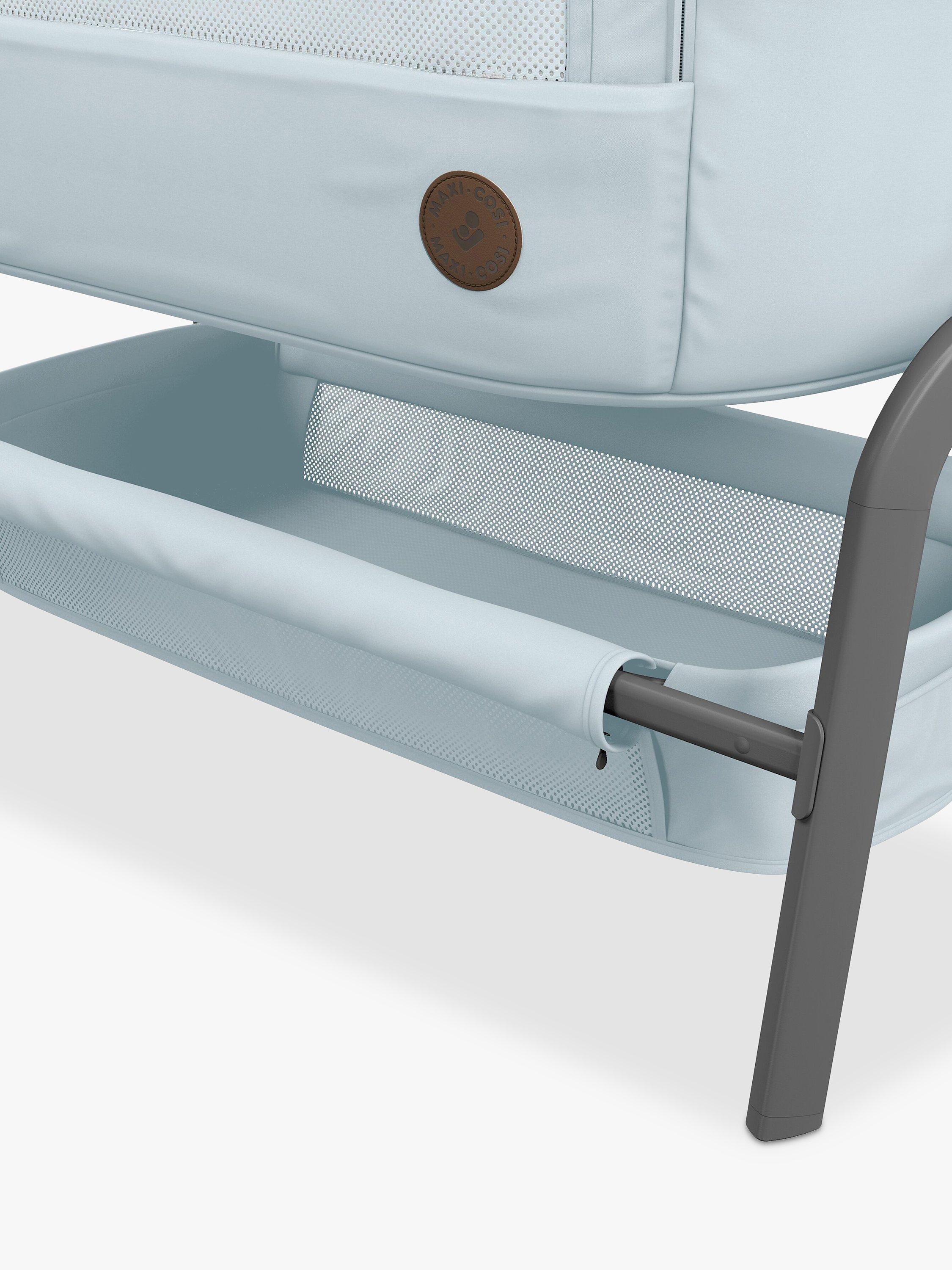 Rest easy knowing that your baby is sleeping in luxury only an arm's reach away with the Maxi-Cosi Iora bedside sleeper - a sophisticated, adjustable crib with an extremely comfortable mattress.