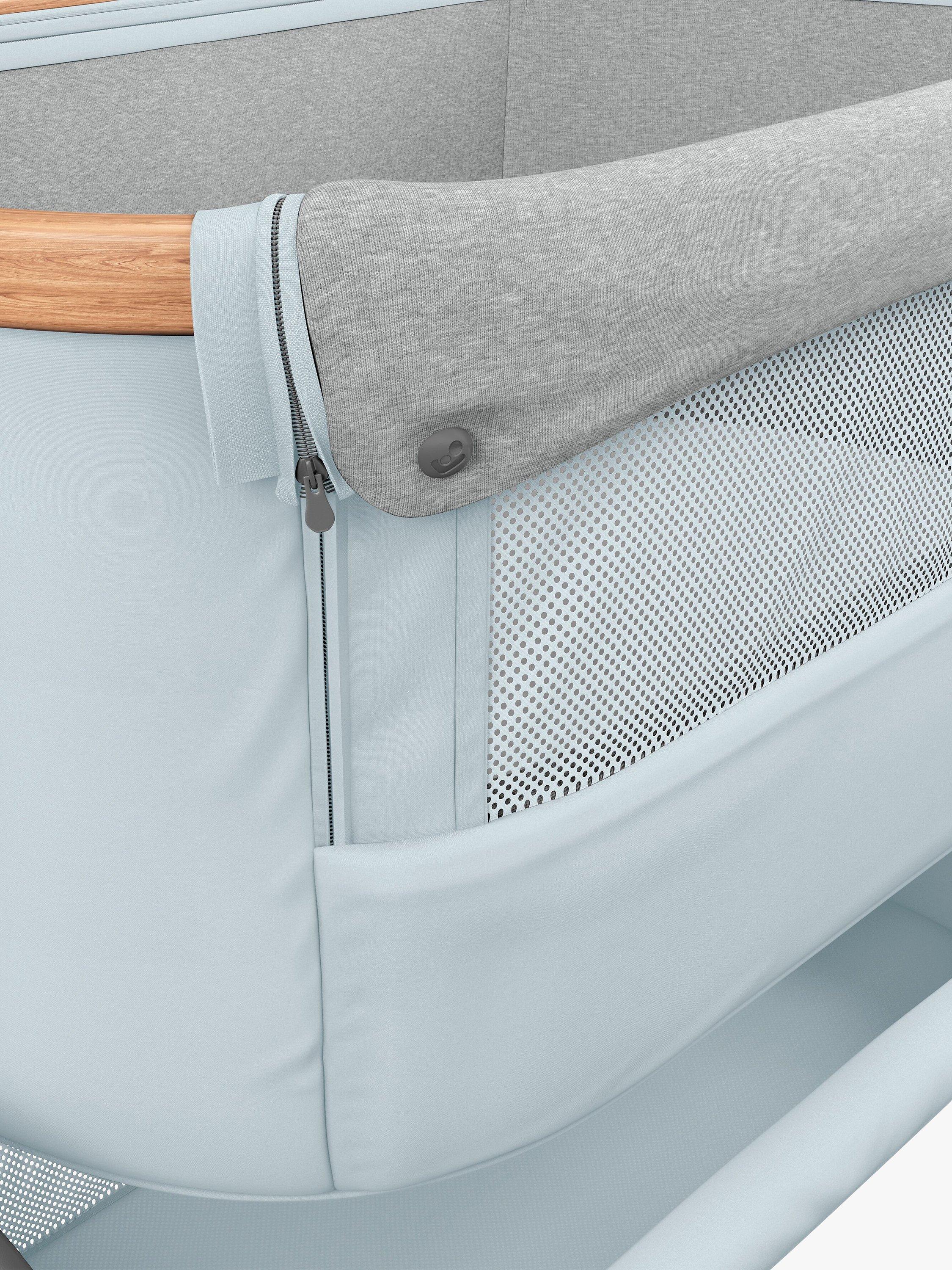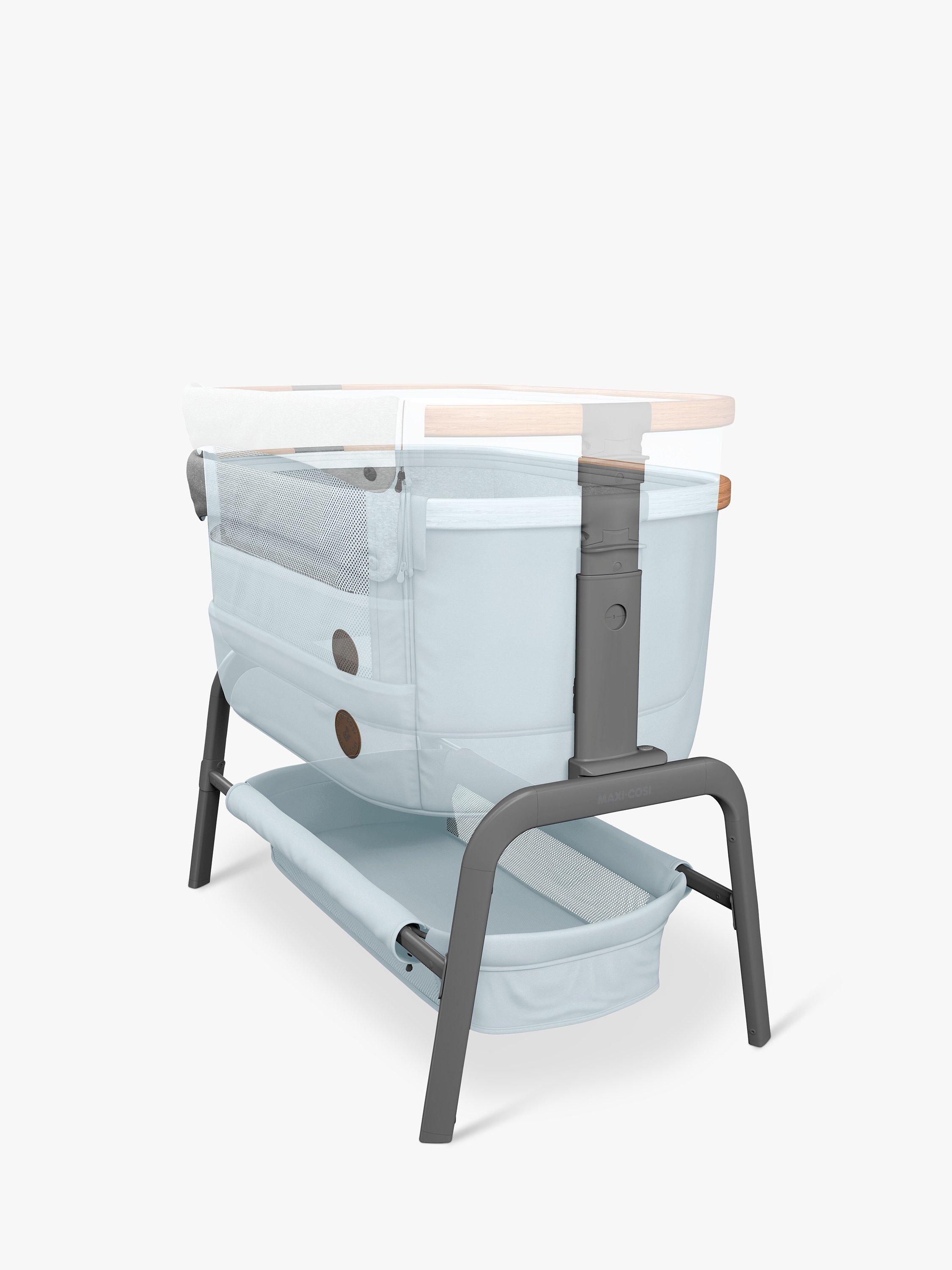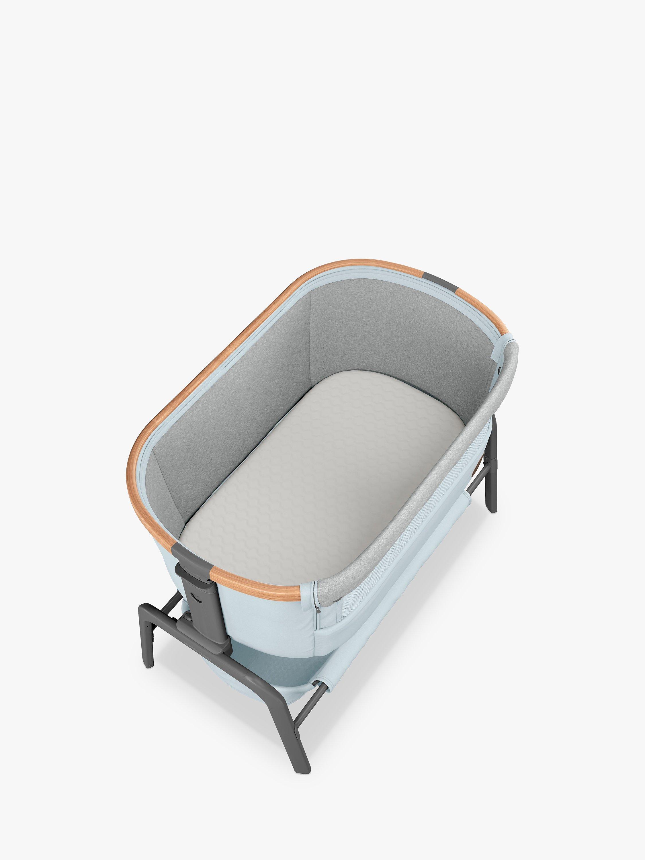Rest easy knowing that your baby is sleeping in luxury only an arm's reach away with the Maxi-Cosi Iora bedside sleeper - a sophisticated, adjustable crib with an extremely comfortable mattress.