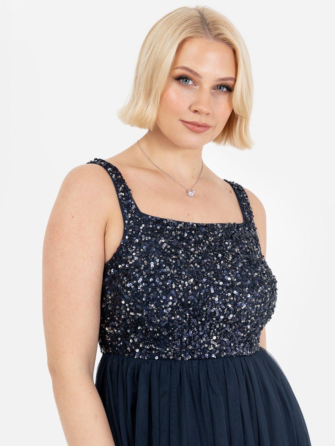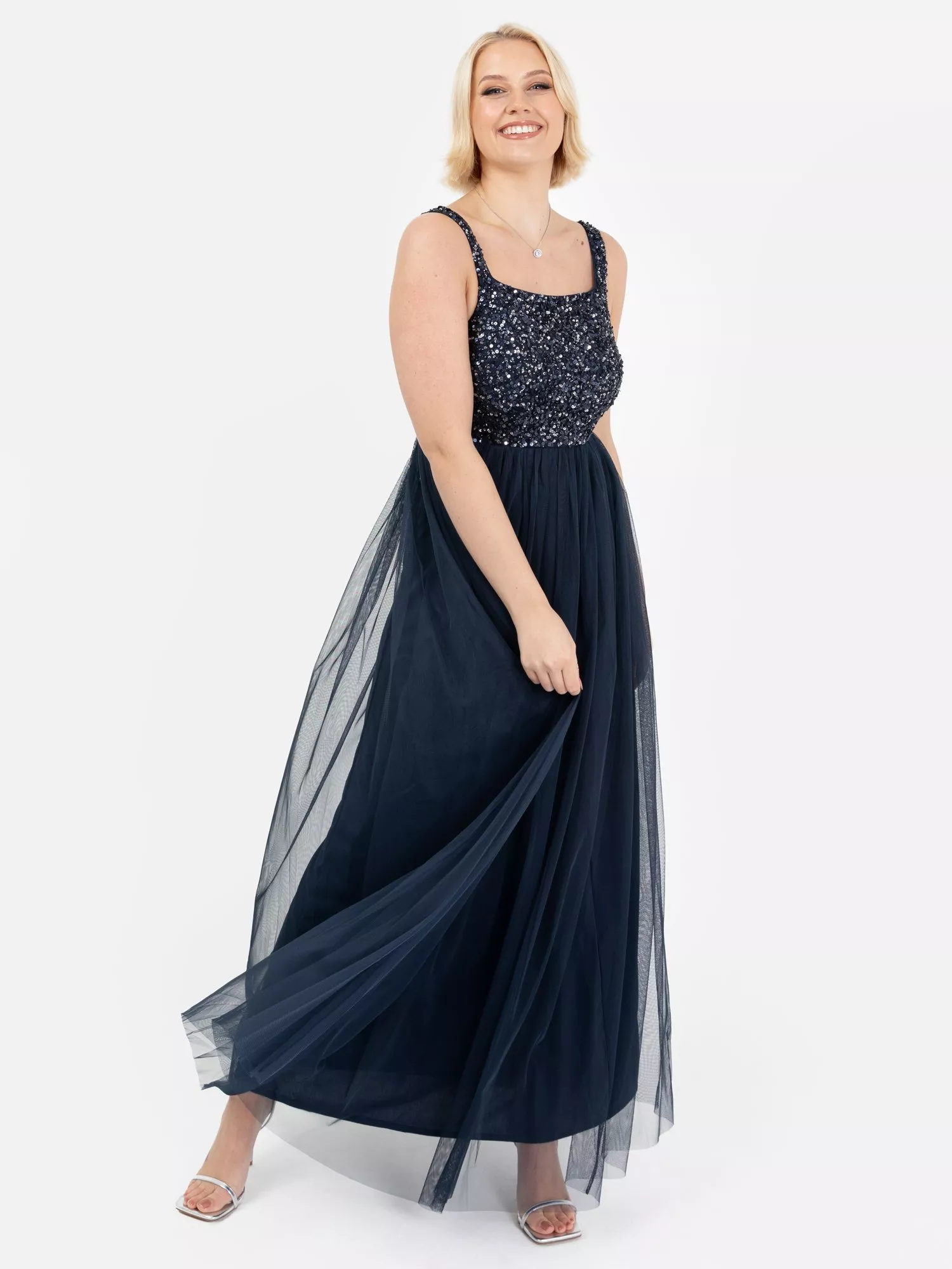 Discover the ideal strappy maxi dress from our latest Maya Deluxe collection. With a fully embellished bodice featuring a square neckline and slender straps it embodies a trendy glamorous style. The Tulle maxi skirt allows you to dance freely throughout the day with its A-line silhouette that is flattering on all body shapes. Complete the look with shimmering accessories and a chic clutch bag.