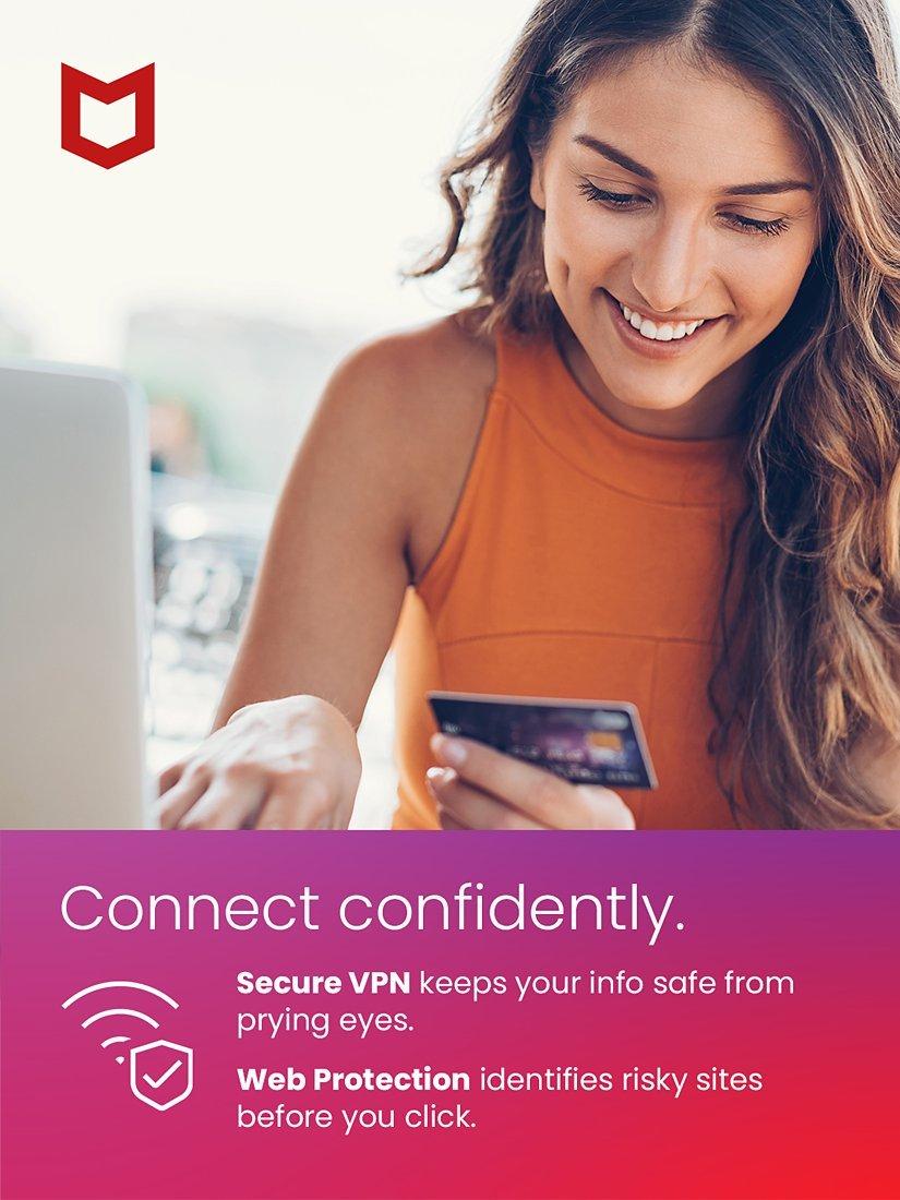 McAfeeTotal Protection, Automatic Renewal with Unlimited VPN, 5 Devices, 1 Year Subscription