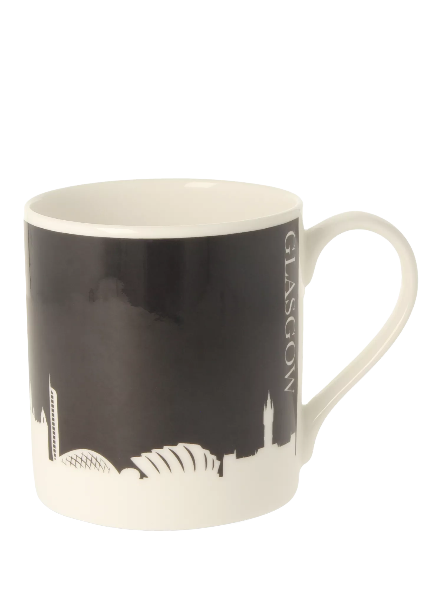 Celebrate Glasgow with this elegant mug, featuring a minimalist skyline of the city's most iconic sights. Take a sip and a look at the Finnieston Crane, Clyde Arc, the traffic cone-topped Duke of Wellington statue, George Square and the Glasgow University spire, all in glorious silhouette.