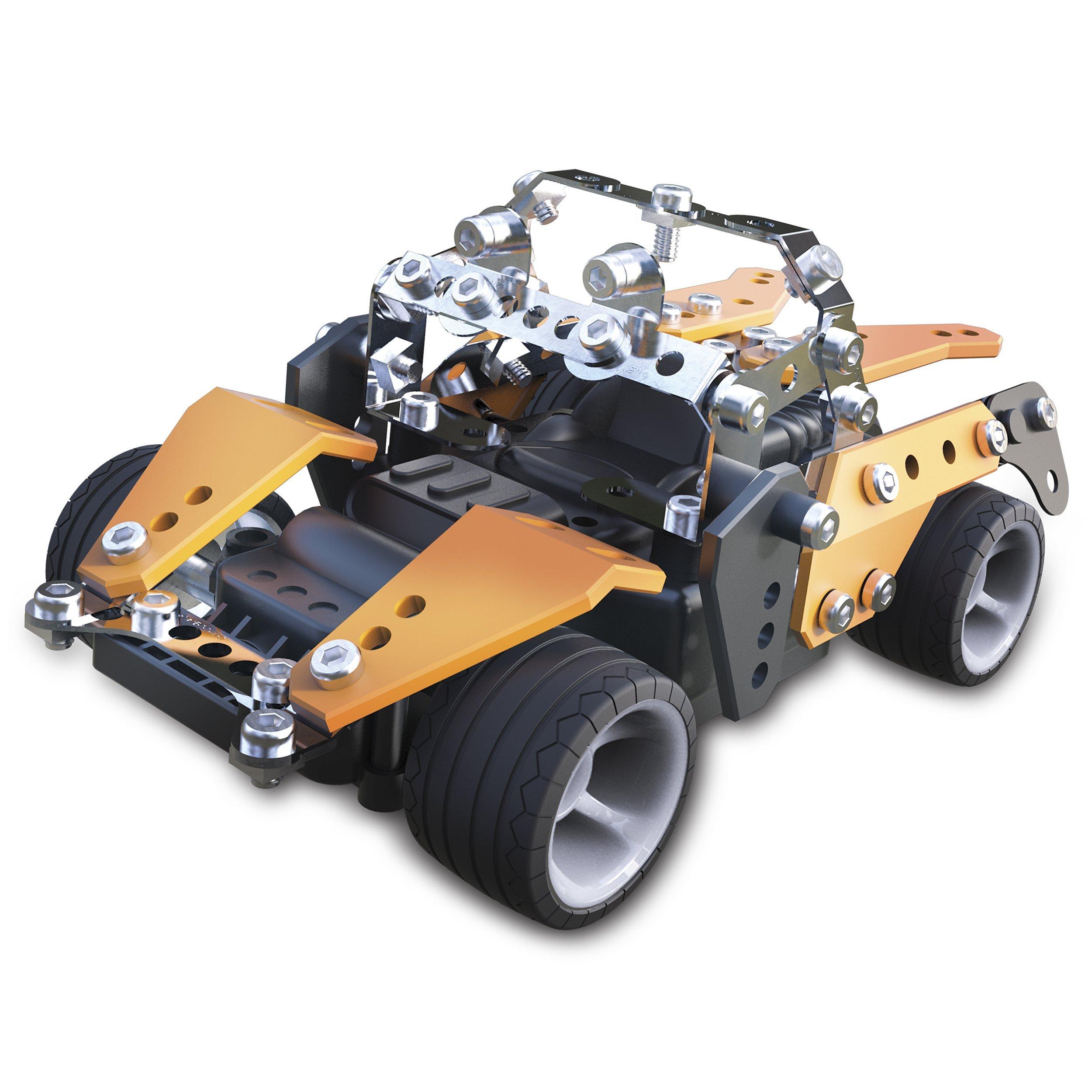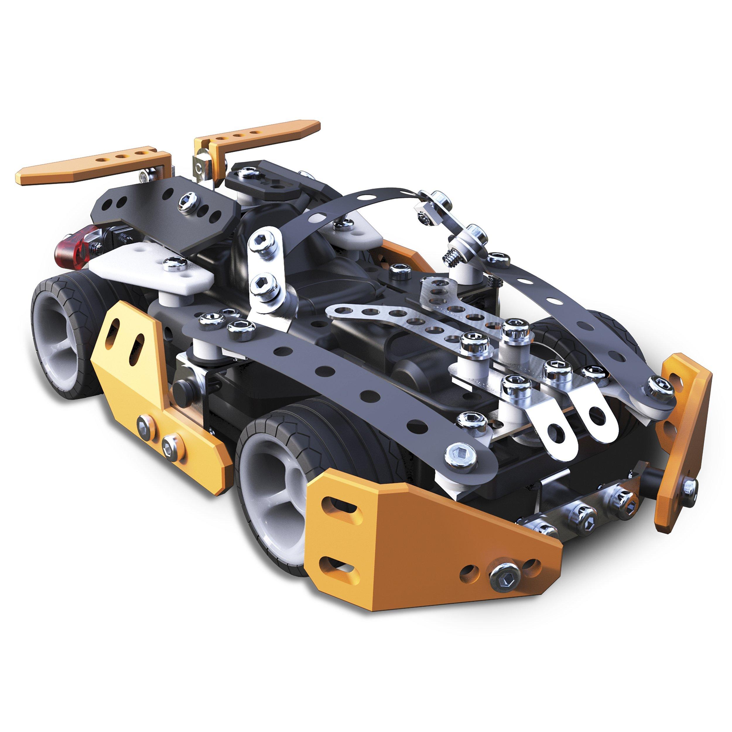 It’s up to you to build one of two models as you explore the world of real engineering! With the real metal tools and real metal parts, you can construct your Roadster. As soon as your model is complete, it's time to race. Experience the real world of engineering as you build and play with the Roadster RC.