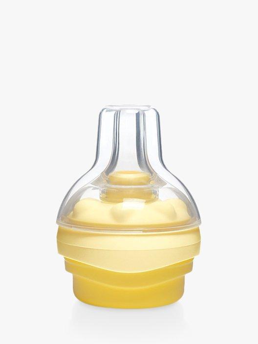 The teat can be used with all Medela breastmilk bottles. Calma Solitaire is easy to assemble and clean. It comes with 2 multi-lids that prevent spills and close the bottle tight, plus a protection cap.