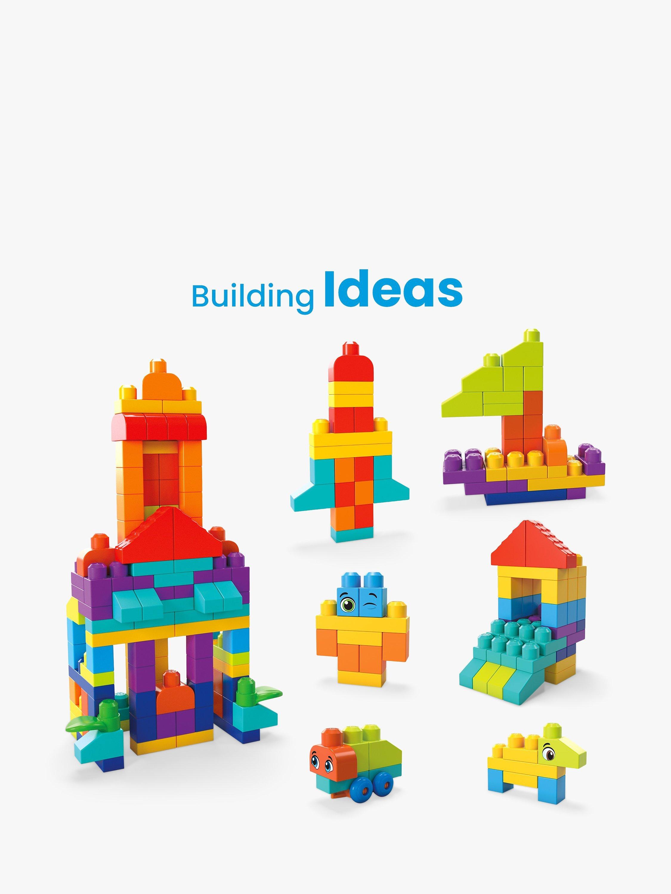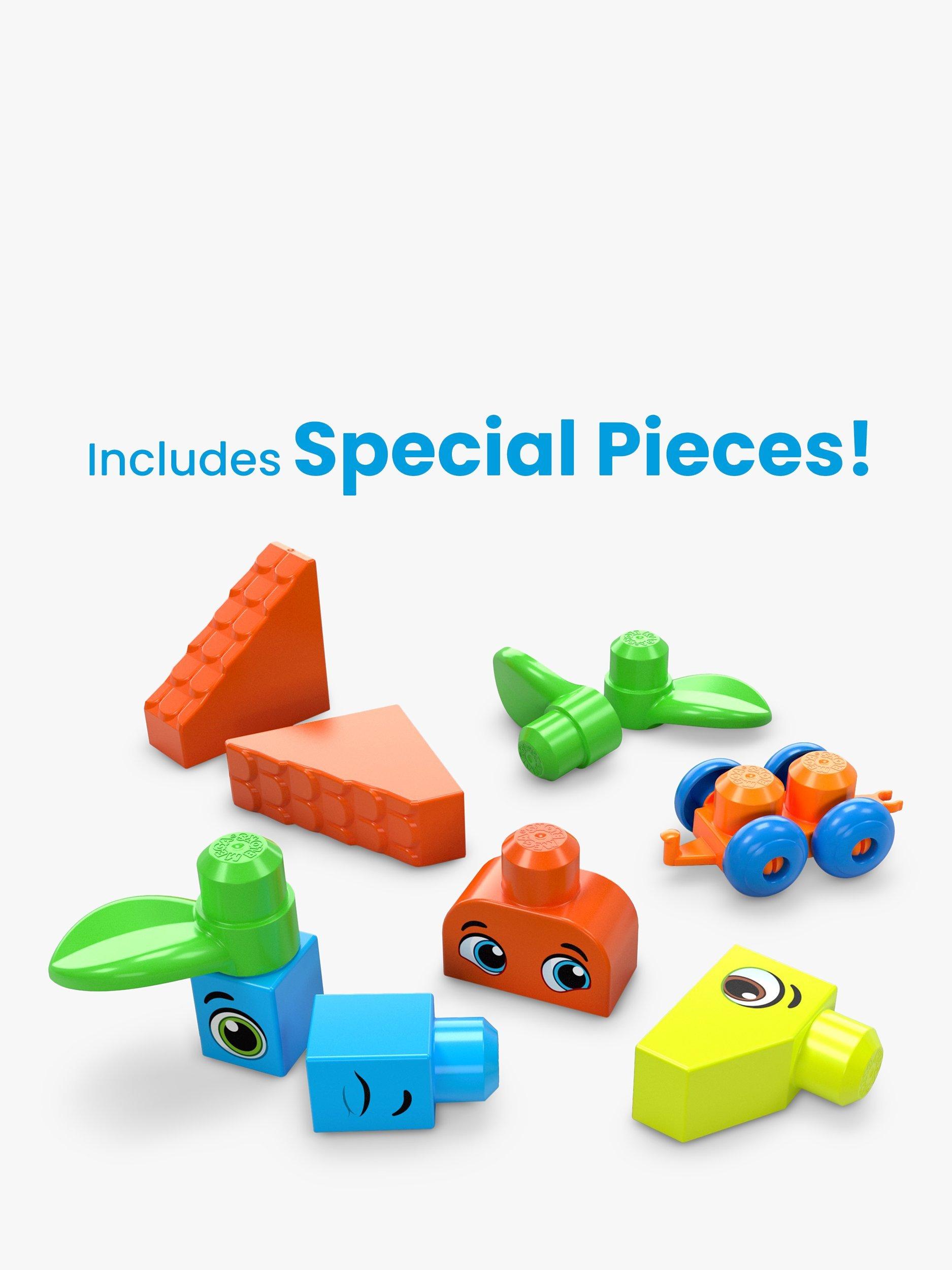 Spark your little builder's imagination with the Bigger Building Bag, filled with 150 big and colourful building blocks and special pieces including blocks decorated with eyes, leaf blocks, roof blocks and 1 wheelbase. The perfect fit for little hands and big imaginations, these blocks are easy to grip and easy to stack, helping to develop fine motor skills, creativity and imagination.