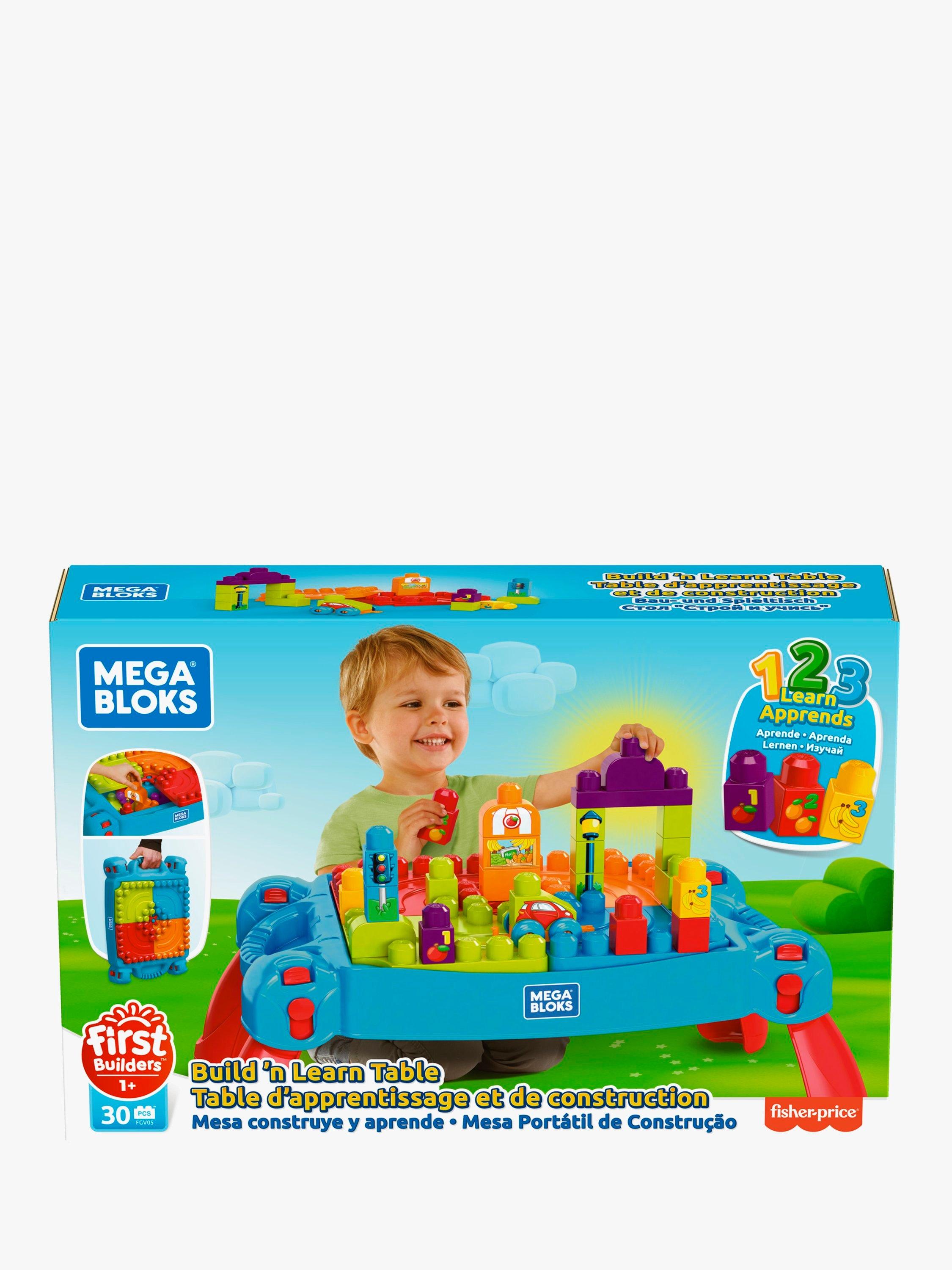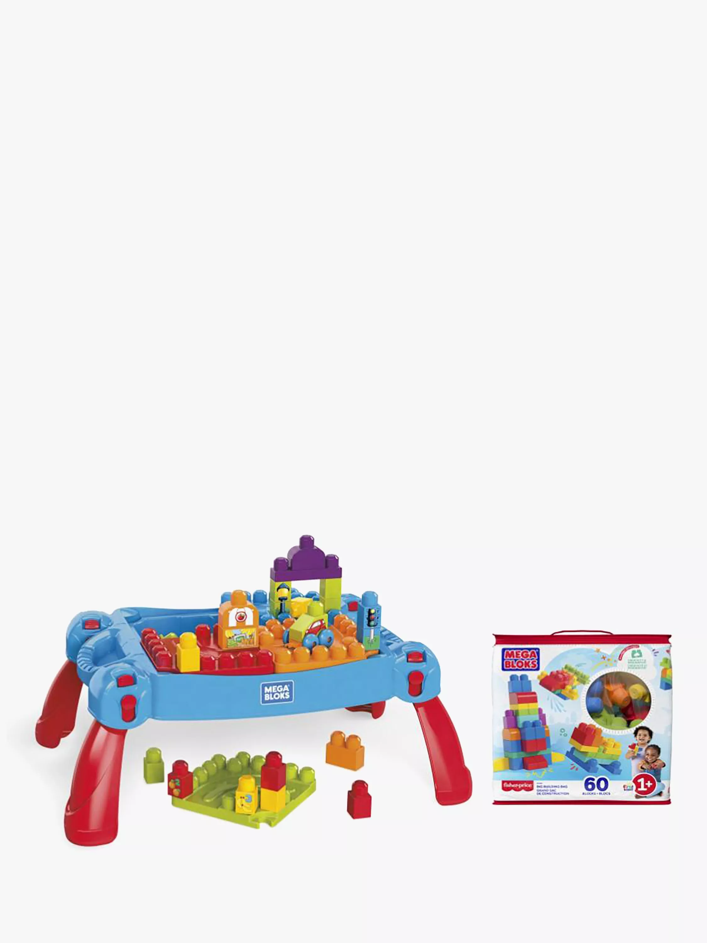 Mega BloksFirst Builders Build 'n Learn Table & 60 Piece Building Bag Bundle, Blue