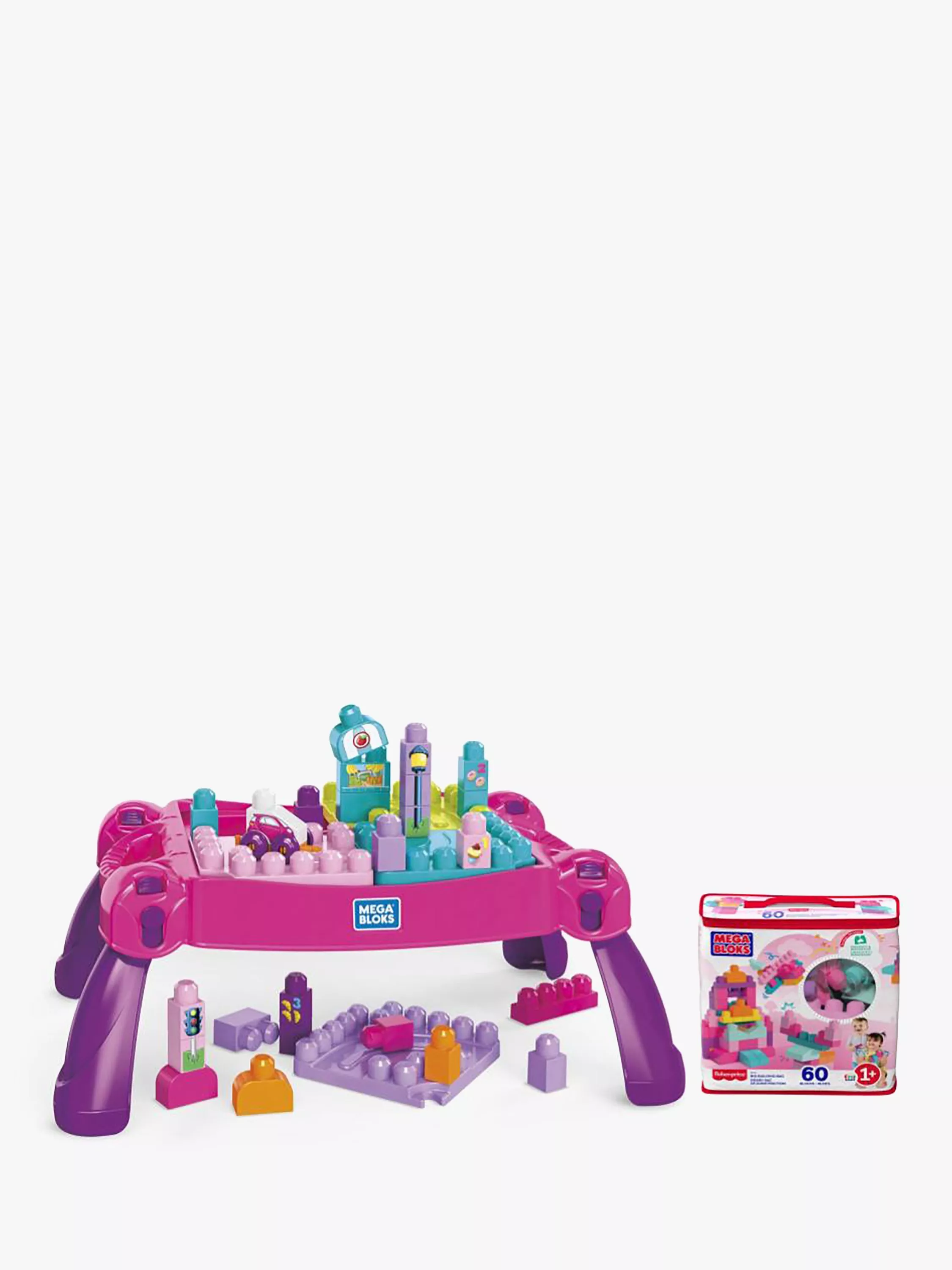 Mega BloksFirst Builders Build 'n Learn Table & 60 Piece Building Bag Bundle, Pink