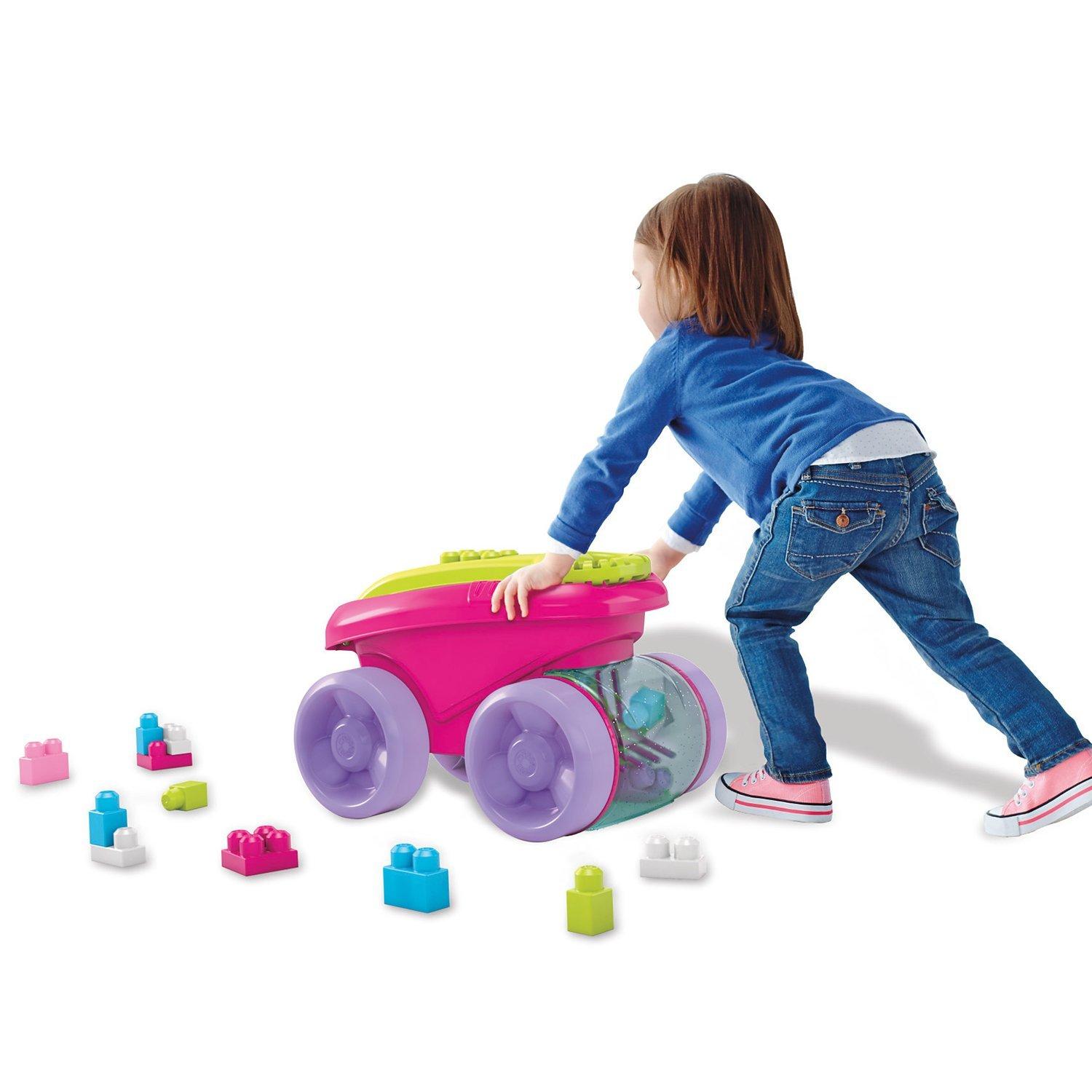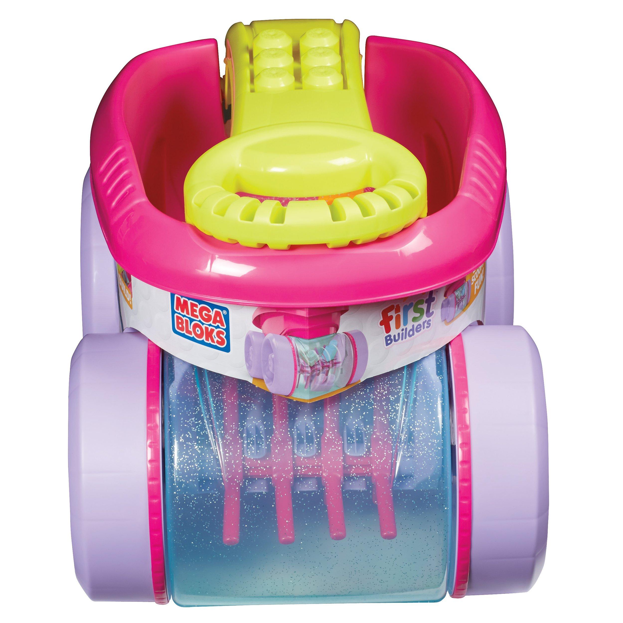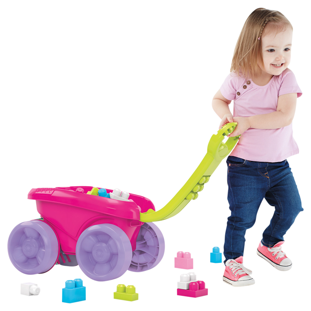 They’ll love seeing the Mega Bloks spin round and round in the clear compartment. They can also connect the blocks onto the wagon’s handle - or dump them on the floor and start building. Includes 20 First Builders blocks in pastel colours.
