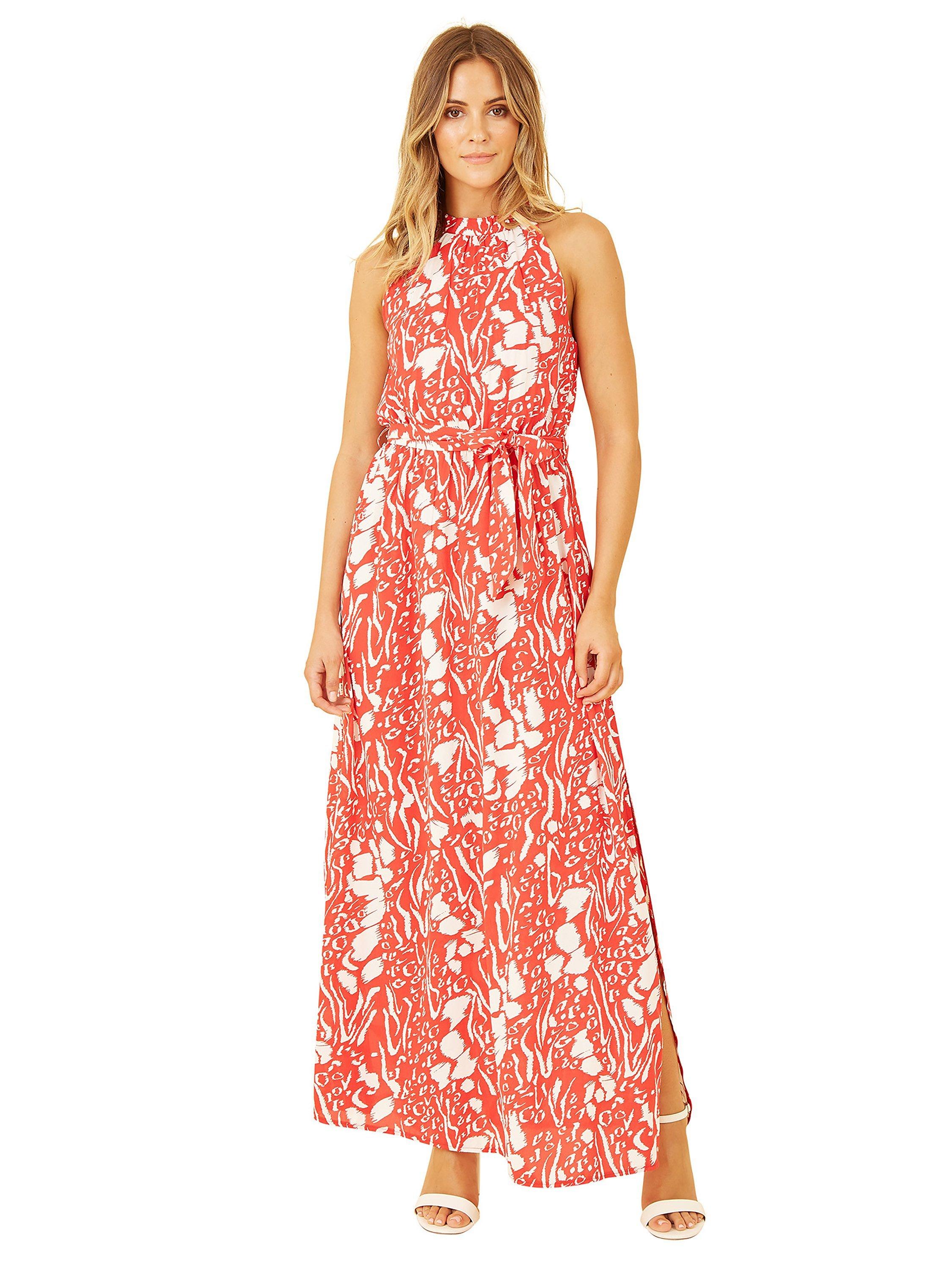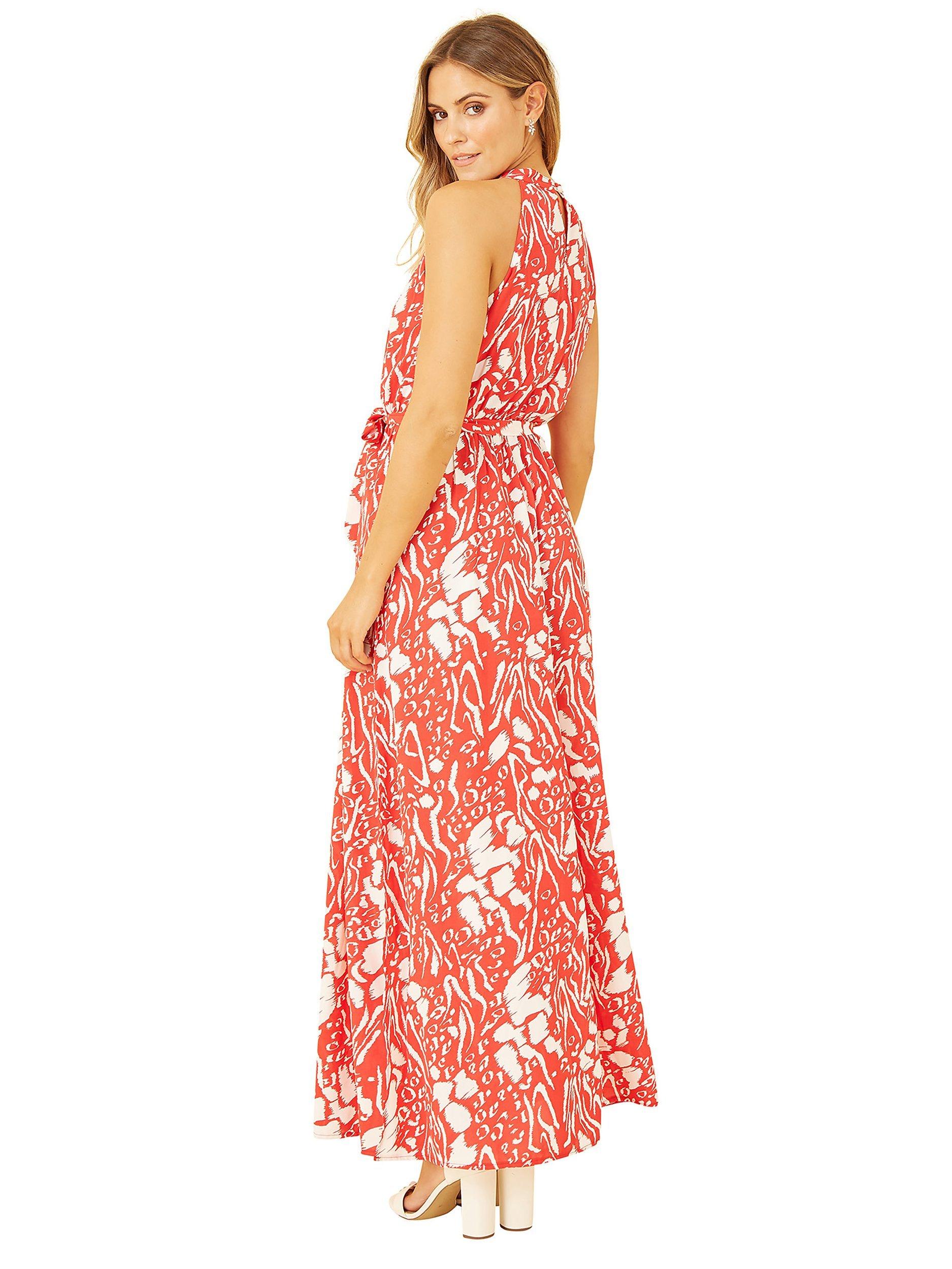 A tried-and-tested classic, this maxi dress from Mela London comes in a fabric that's built to last. With a halterneck, this style has a can't go wrong animal print.