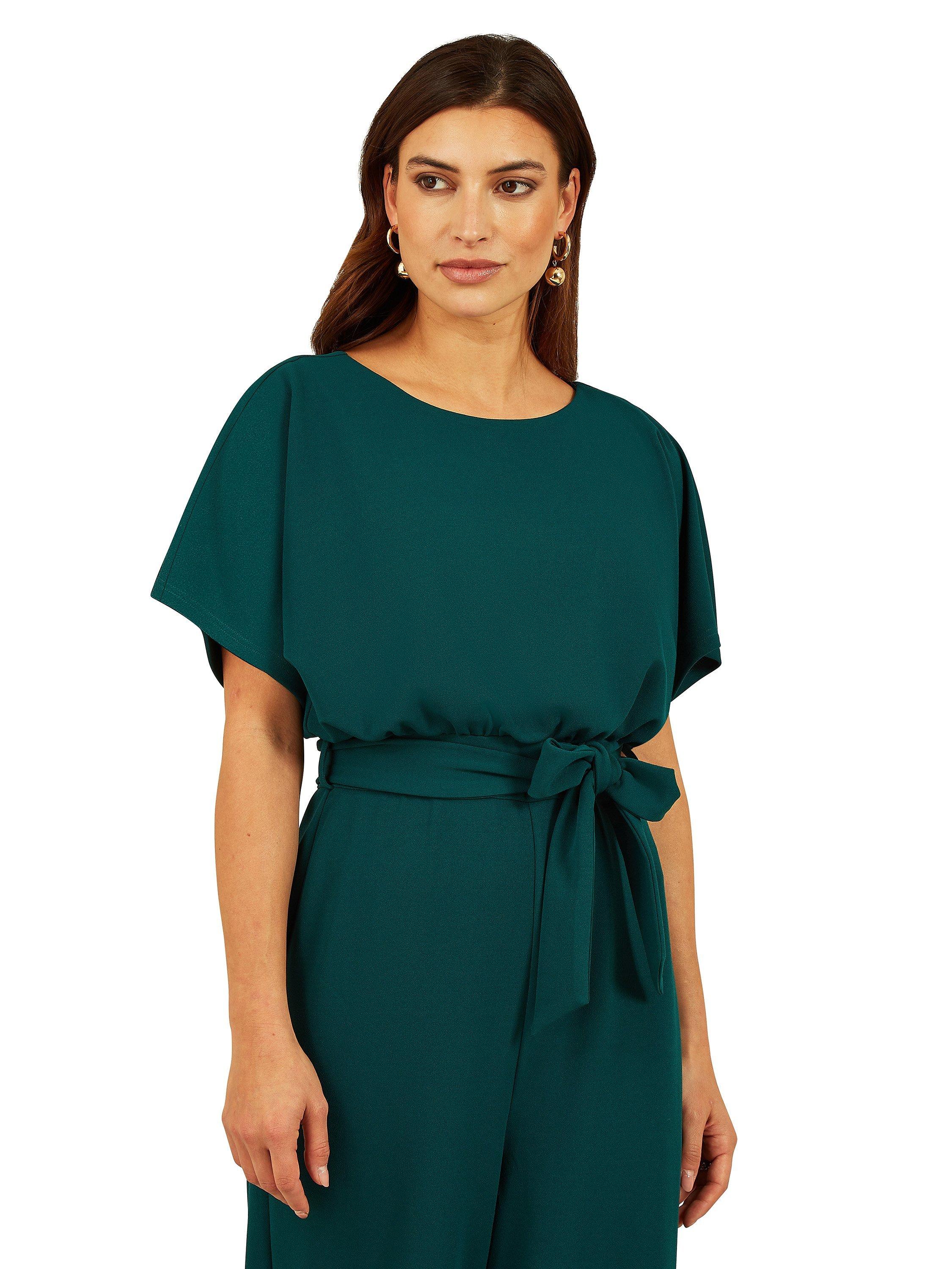 Kept simple with a round neckline and batwing sleeves, this jumpsuit from Mela London is shaped to a billowy wide-leg silhouette and is whipped up from a smooth blended fabric.