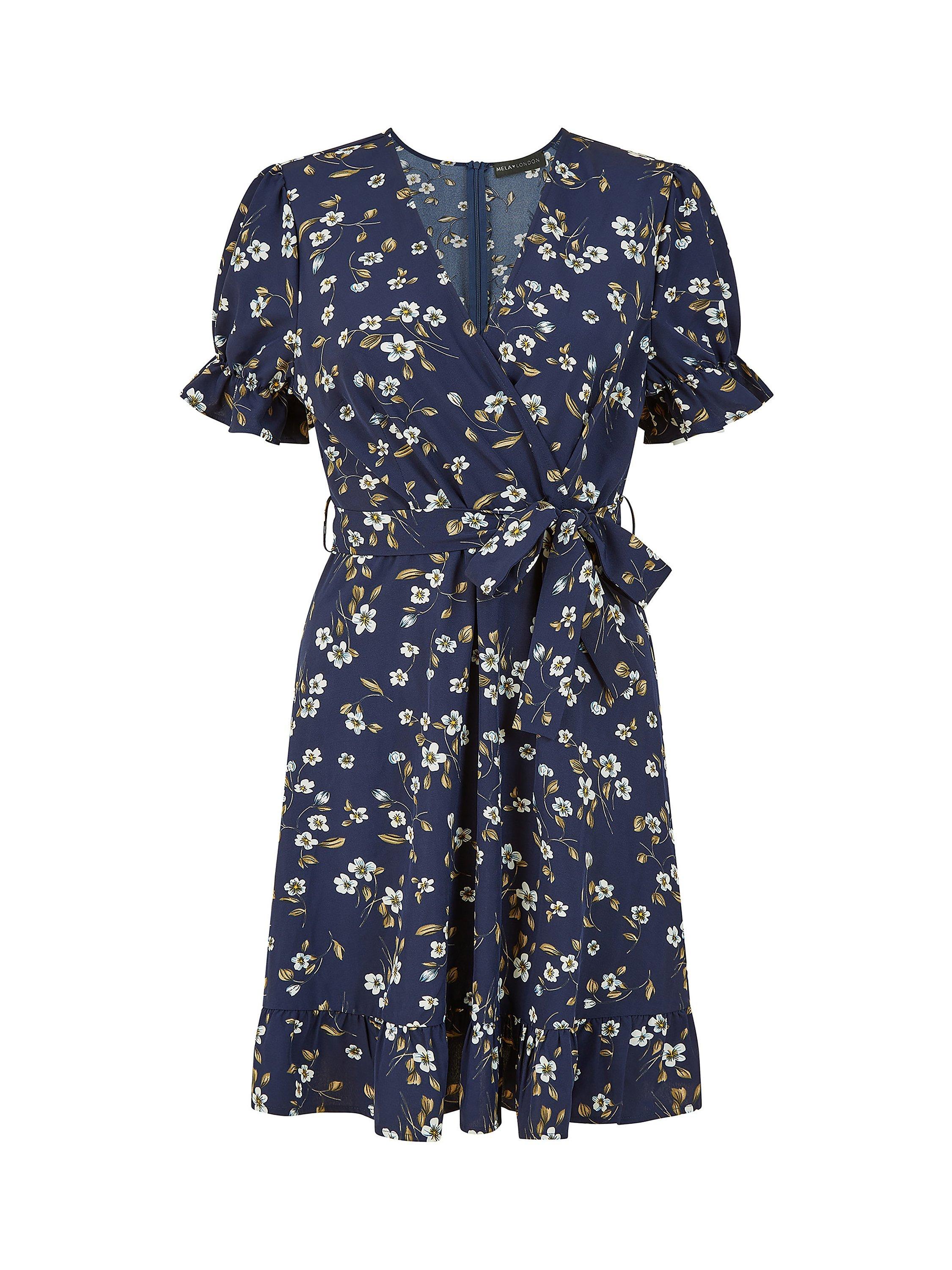 Offered in a timelessly flattering wrap style, this thigh-grazing dress from Mela London opts for florals as an all-over print.