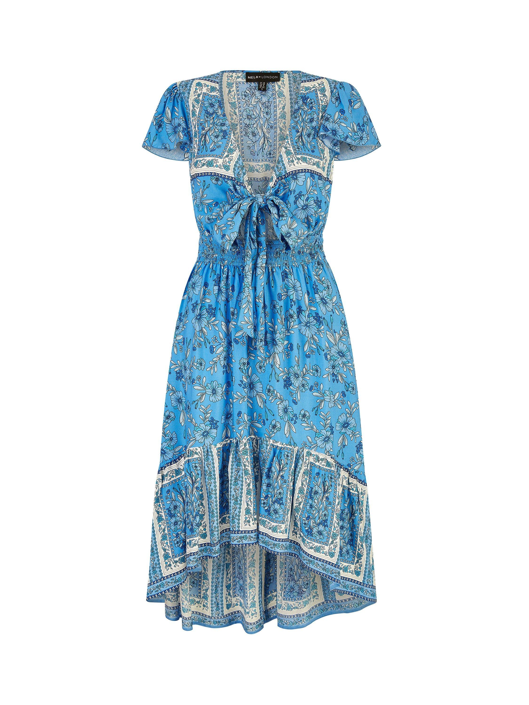 Offered in a universally flattering fit and flare shape, this mid-length dress from Mela London is dreamt up from whisper-weight viscose. With a smart v-neckline and short sleeves, this style charms with ease thanks to the floral print.