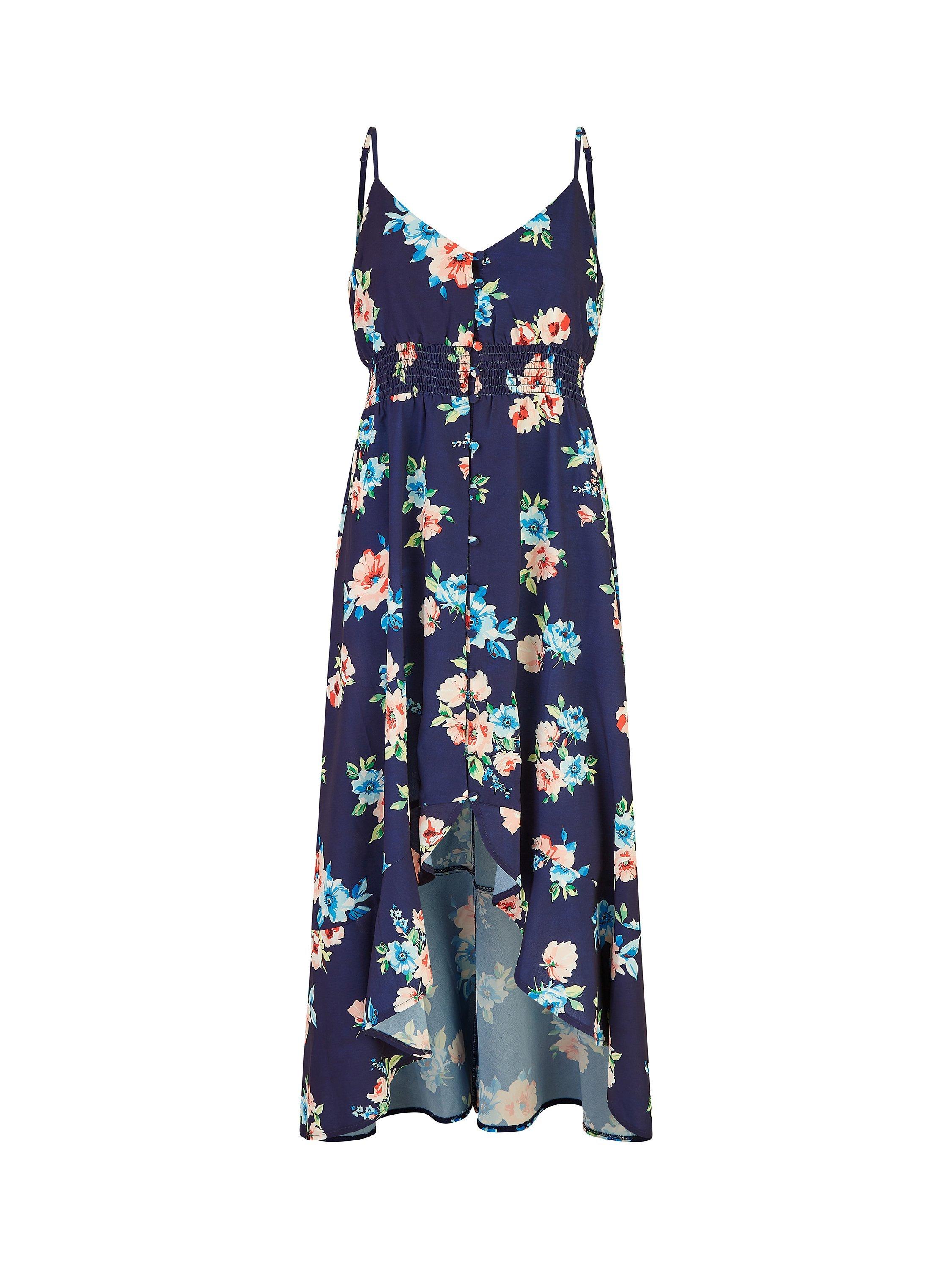 YumiMela London Floral High Low Frill Midi Dress, Navy/Floral