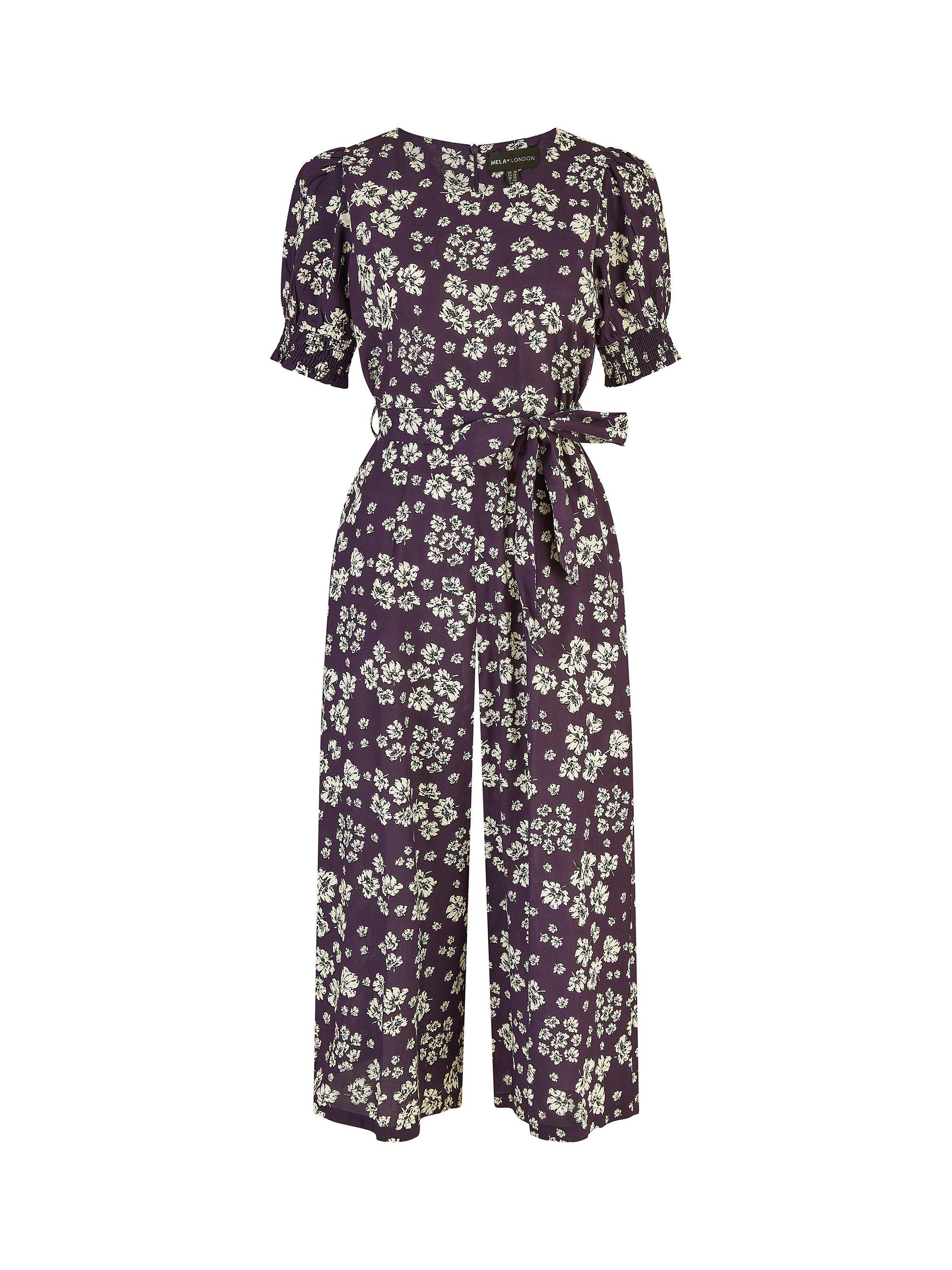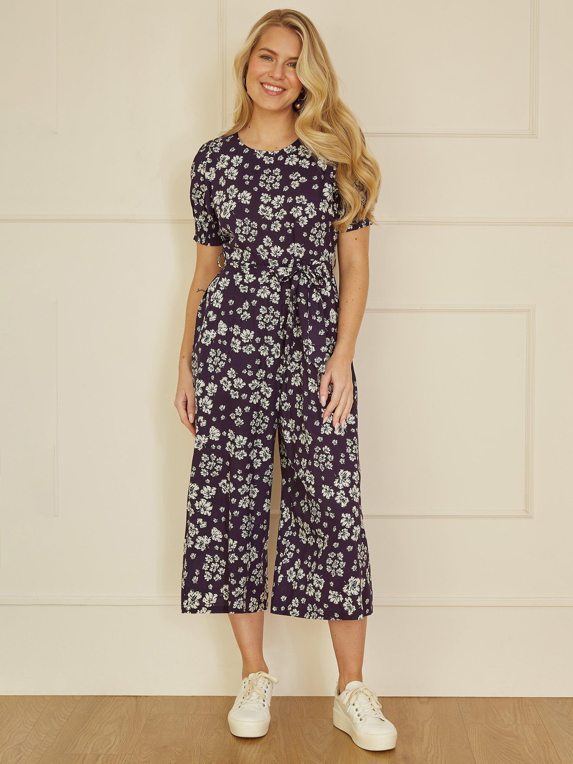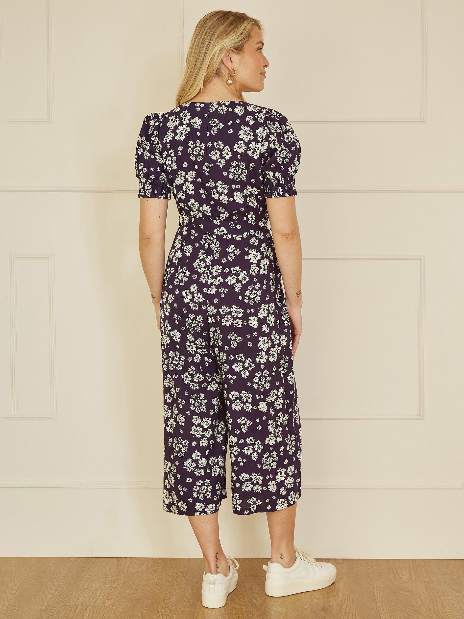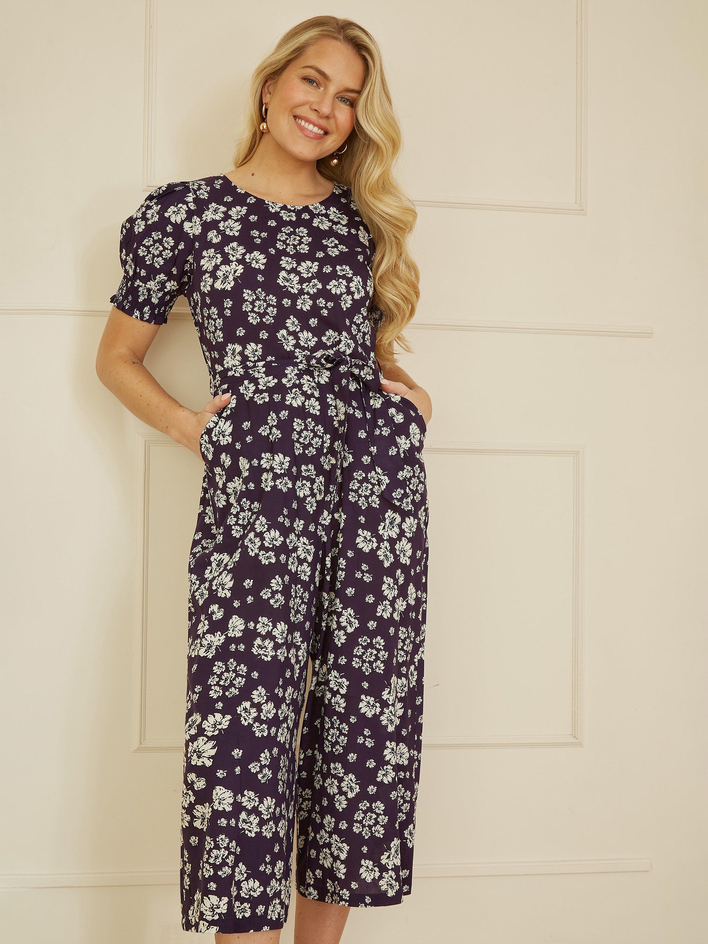 YumiMela London Floral Ruched Sleeves Jumpsuit, Navy