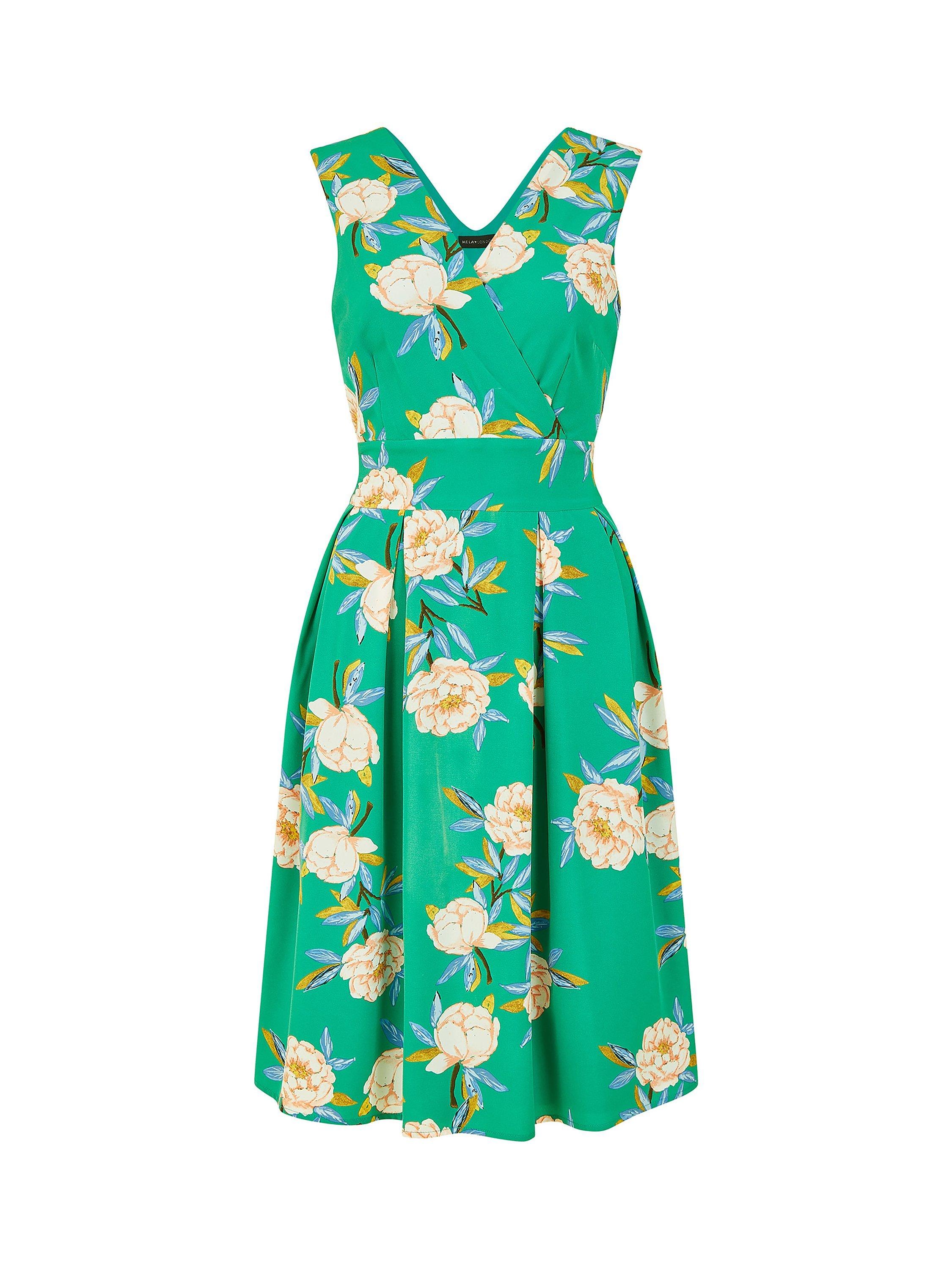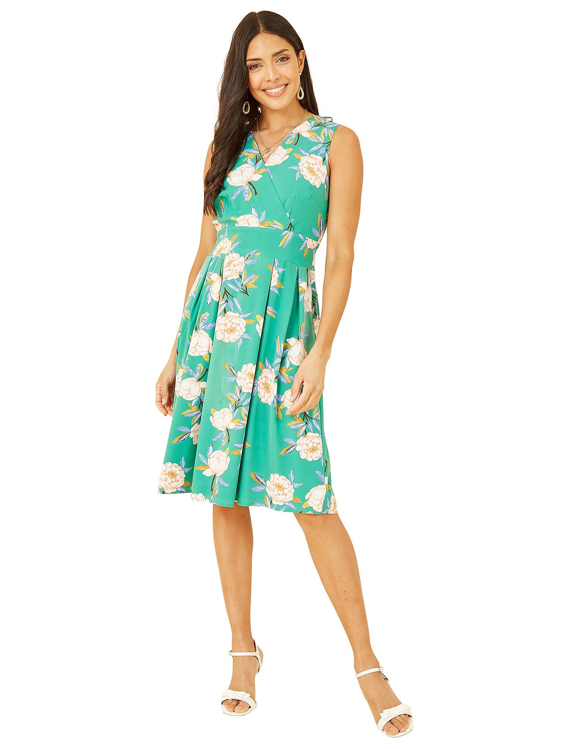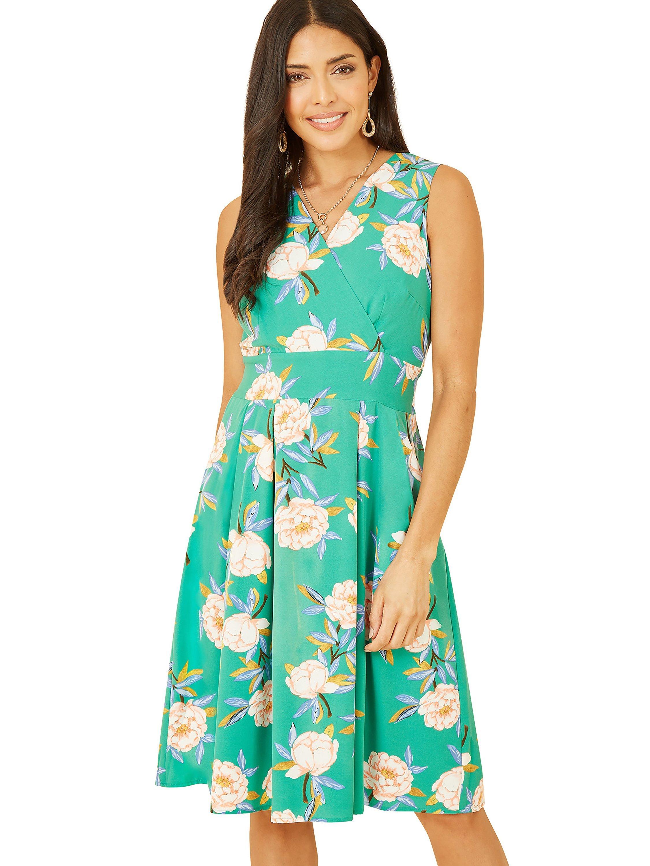 YumiMela London Floral Wrap Over Skater Dress, Green