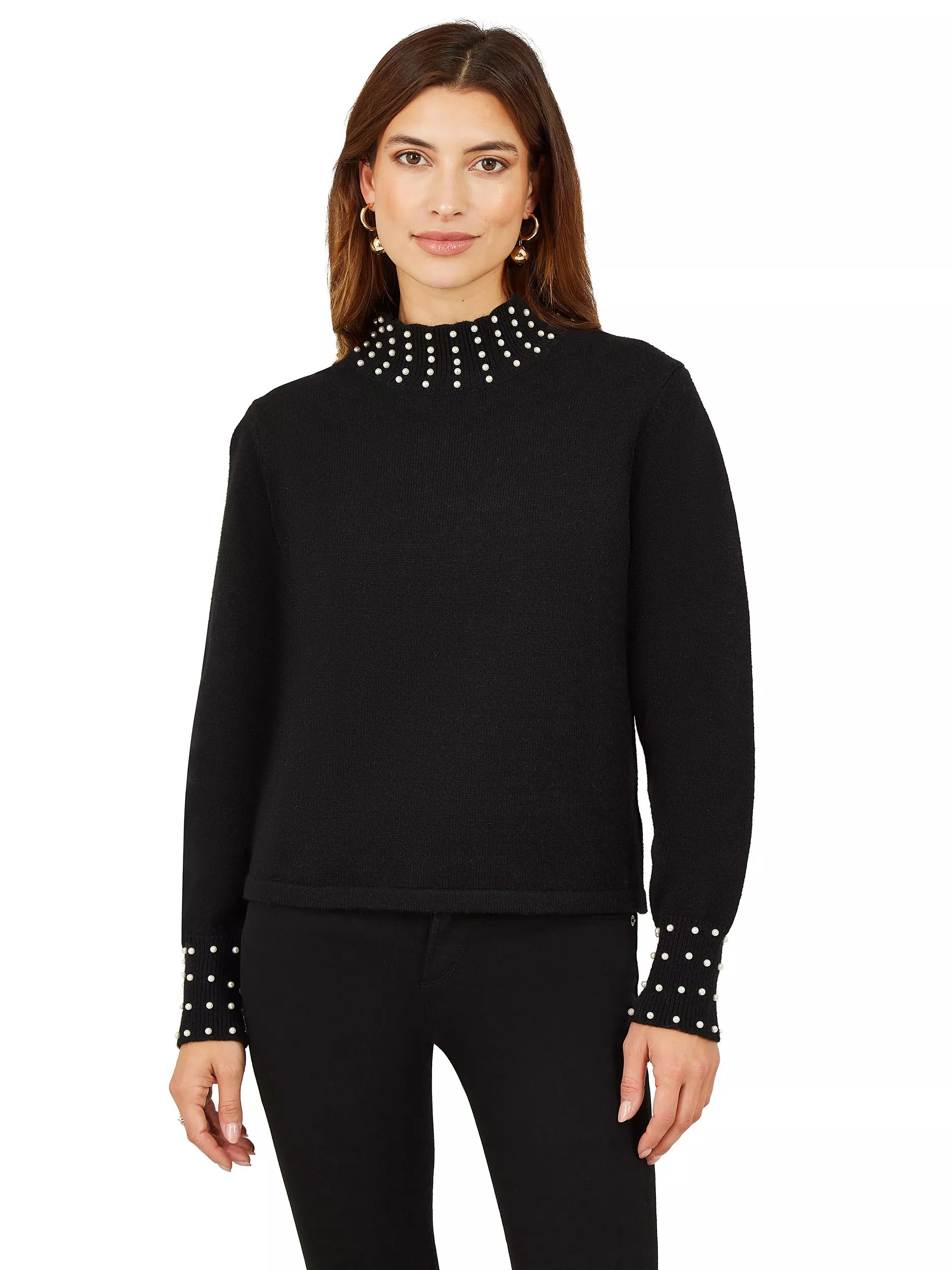 Framed by a graceful high neckline, this jumper by Mela London is embellished with accents for eye-catching appeal and makes for lightweight wear in a smooth fabric.