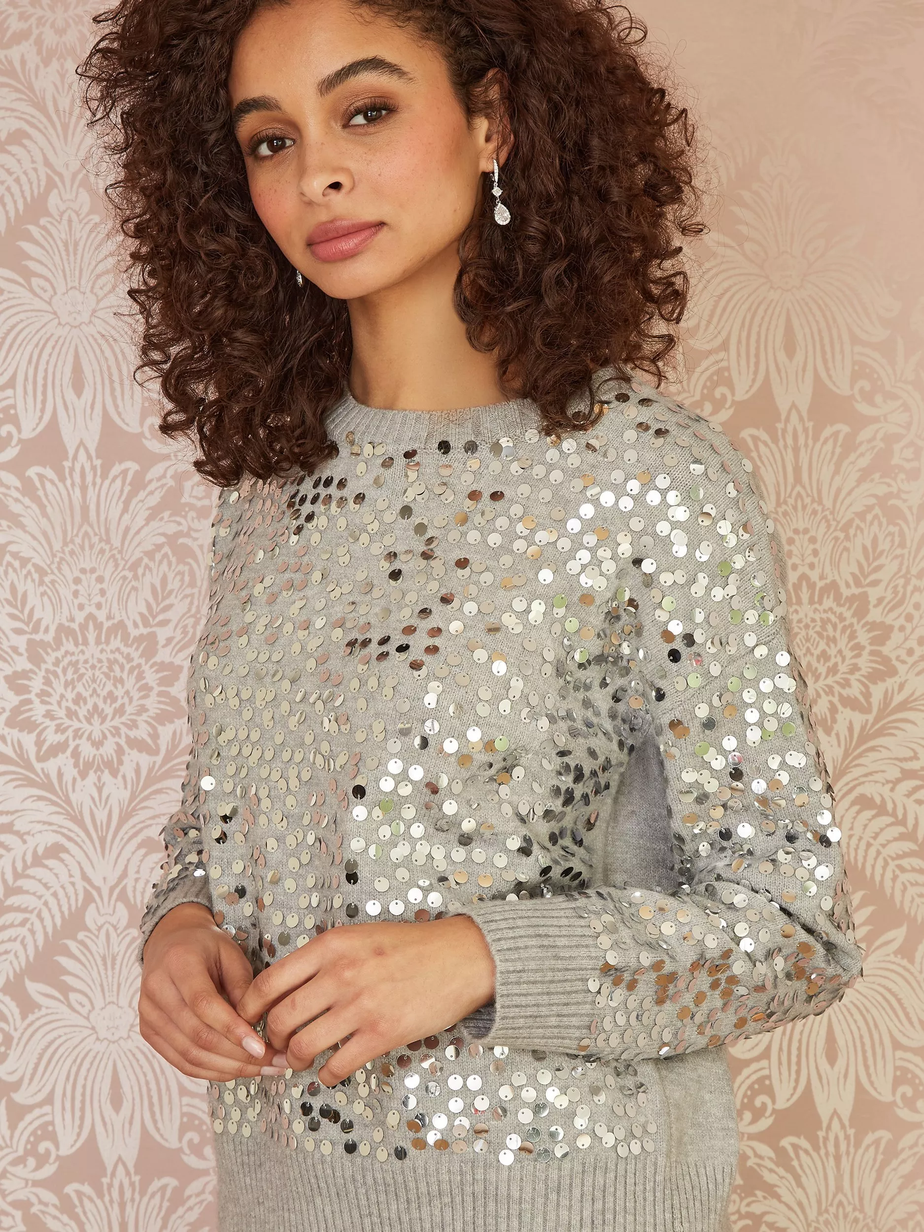 This relaxed fit jumper from Mela will be your go to this festive season for Christmas market visits or drinks with friends. The all over sequin design really is a stand out - With the added bonus of feeling soft and comfortable. Style with denim or faux leather for the perfect everyday look.