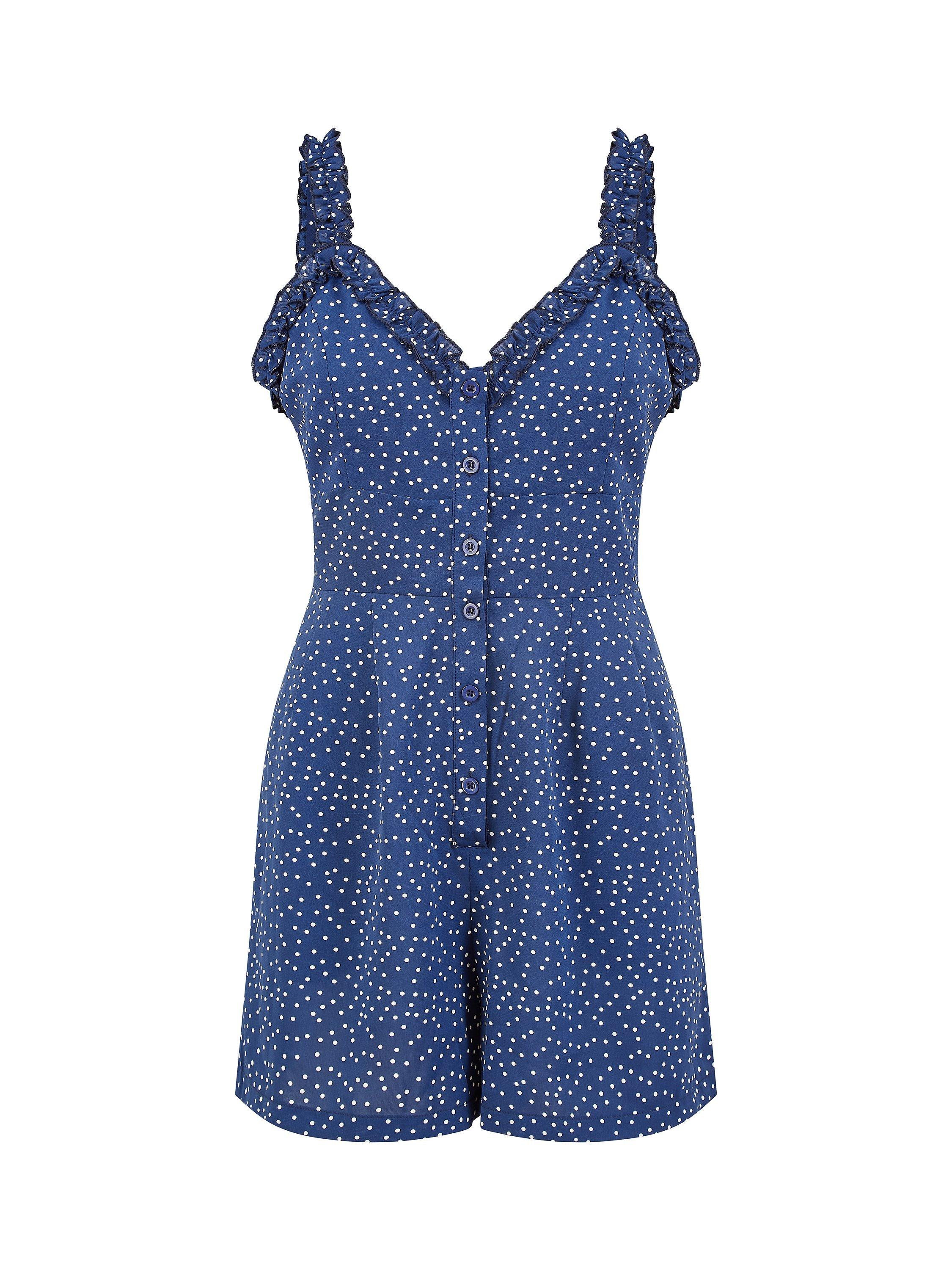 YumiMela London Spot Button Up Playsuit, Navy