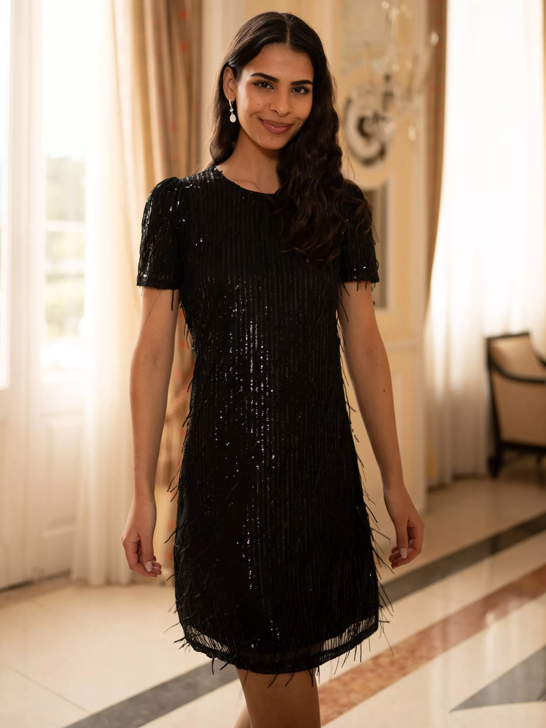A wardrobe essential for invites over the festive period. This tunic shape dress is super flattering on all body shapes, covered in dazzling sequins that hang to create a gorgeous effect. Throw on some heels and you're good to go and party.