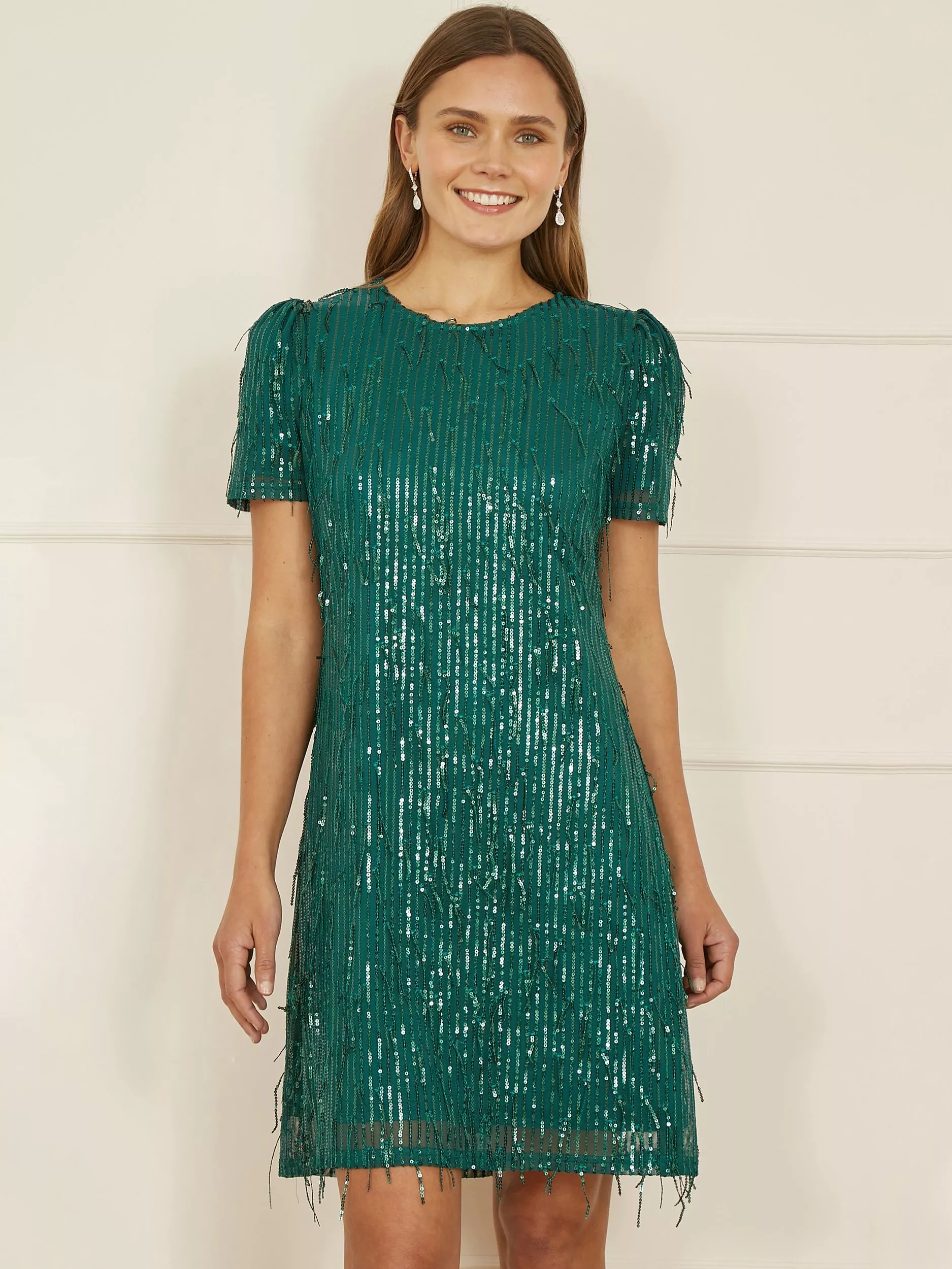 A wardrobe essential for invites over the festive period. This tunic shape dress is super flattering on all body shapes, covered in dazzling sequins that hang to create a gorgeous effect. Throw on some heels and you're good to go and party.
