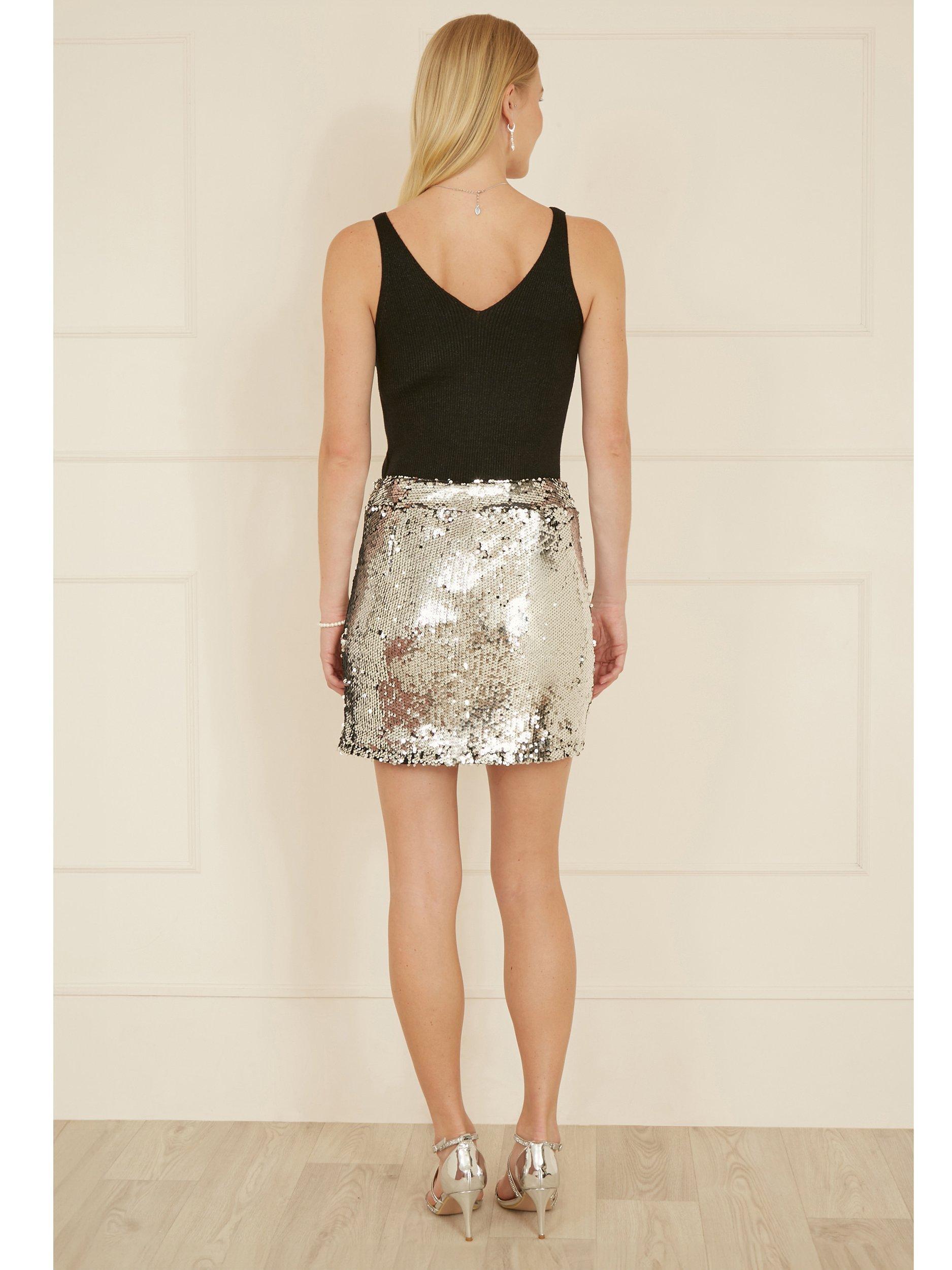 Be daring this season and opt for sequins at any occasion. Whether it's a casual invite or office party, this mini skirt will see you through. With a high waist fitted band, all over sequins and the split in the thigh we love this styled with casual jumpers or a bodysuit and blazer.