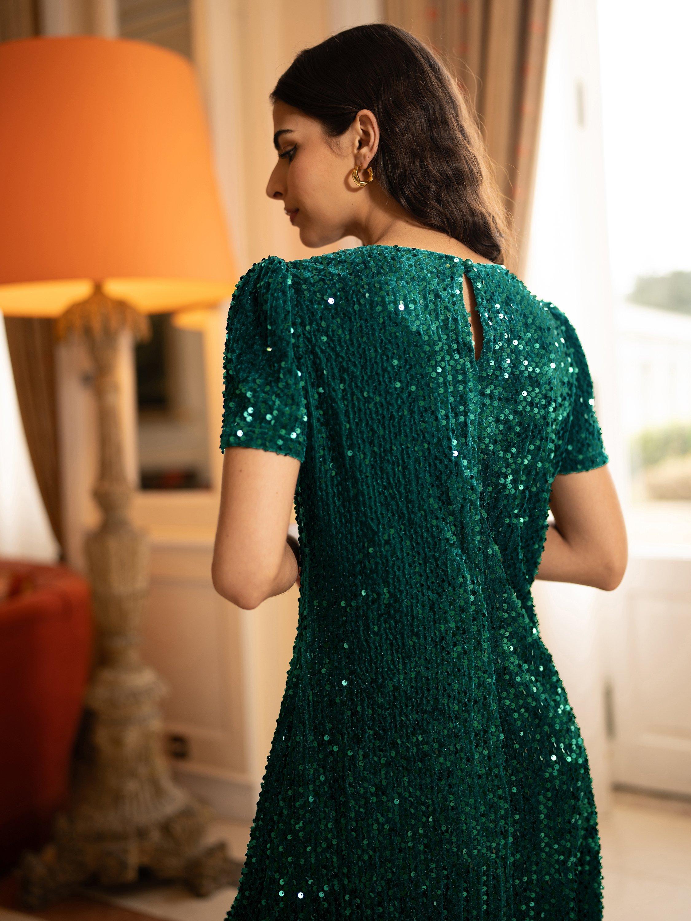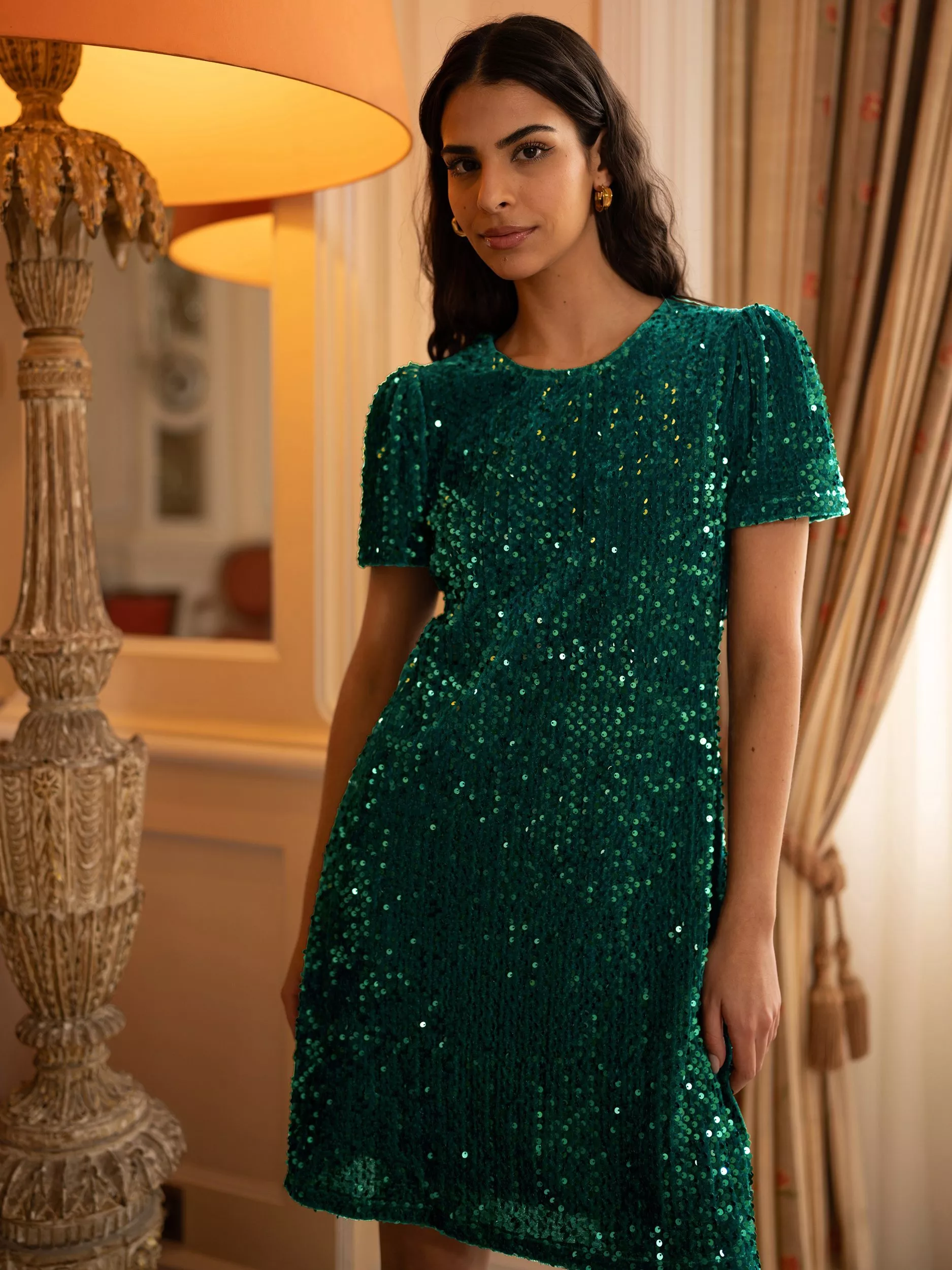 Full of sparkle, this Mela Sequin Tunic Dress is all you need for party season. With a relaxed silhouette, it has been cut in an easy-to-wear tunic shape and is fully lined. Complete with a round neckline, short sleeves and a zip fastening running up the back, it's ready for a dance floor, party or special occasion.