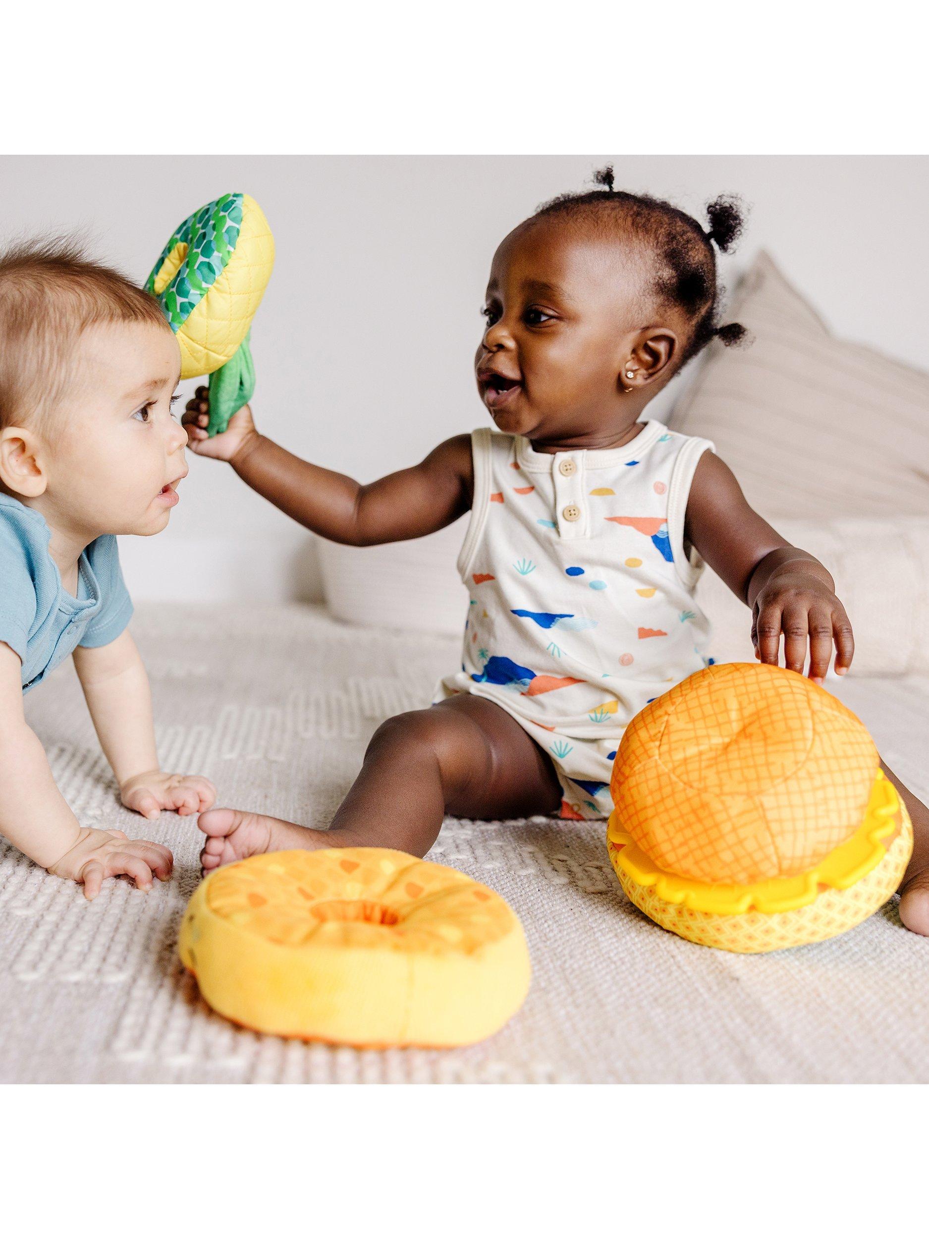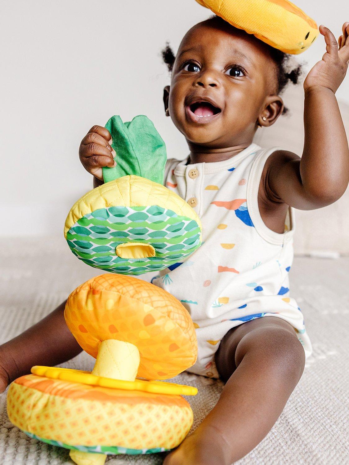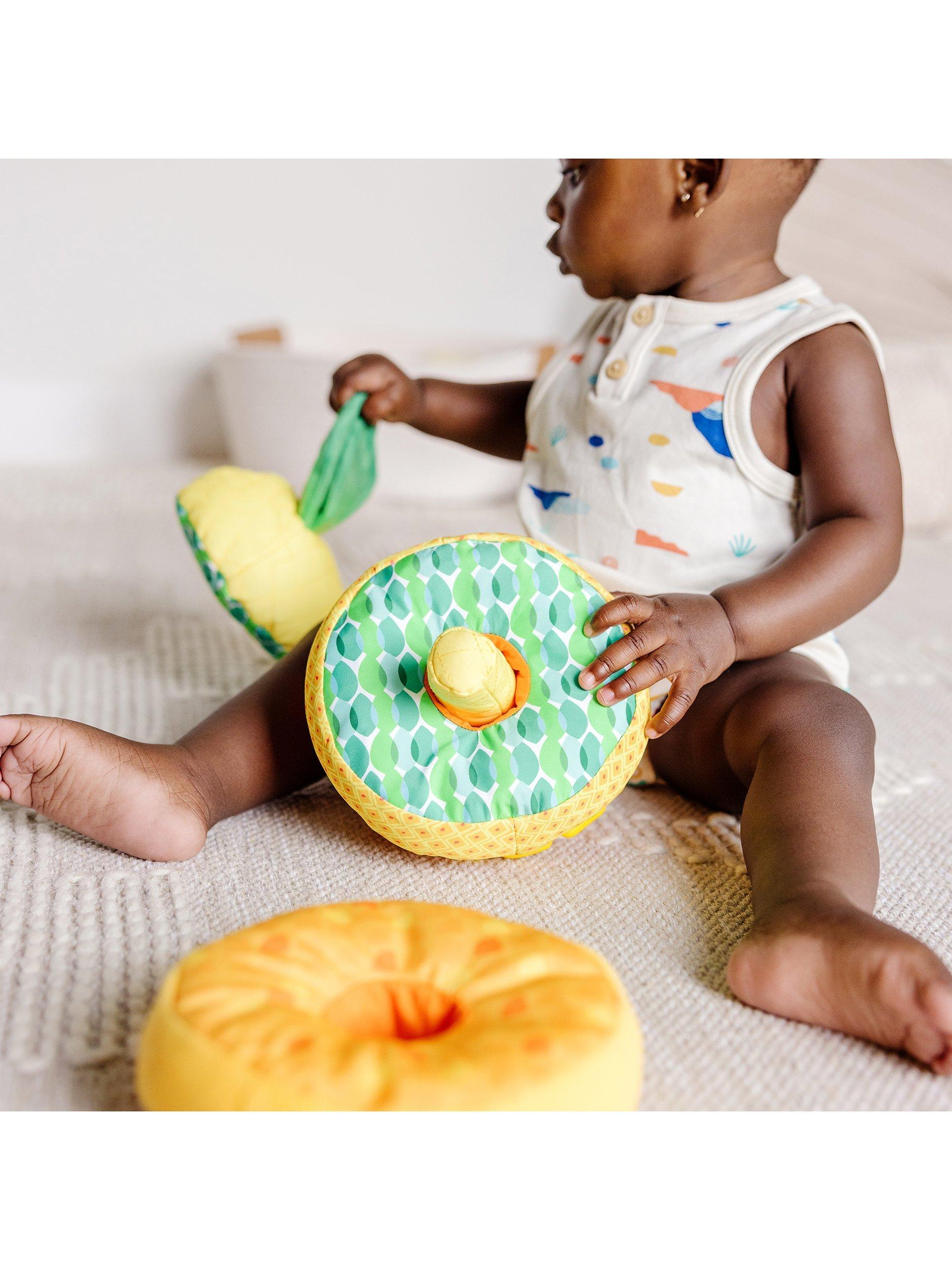 With a mix of wonderful textures, this cute stacker toy is a great way to keep your little one entertained. Once staked you've got a cute little pineapple friend complete with large long leaves.