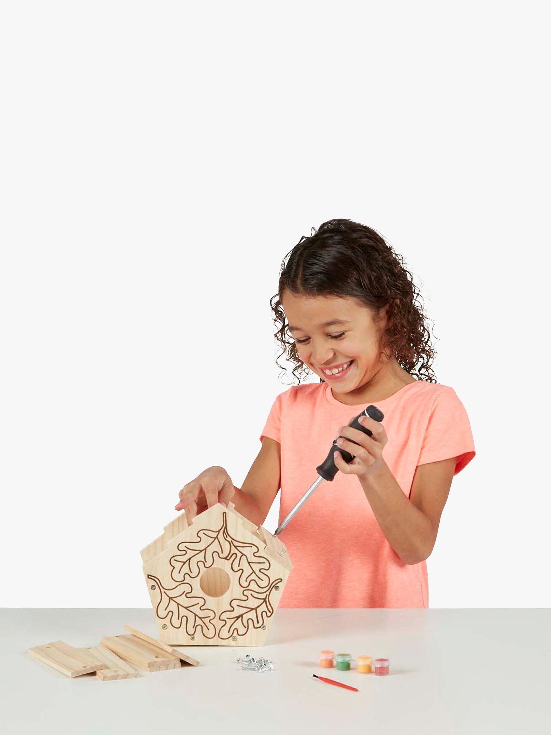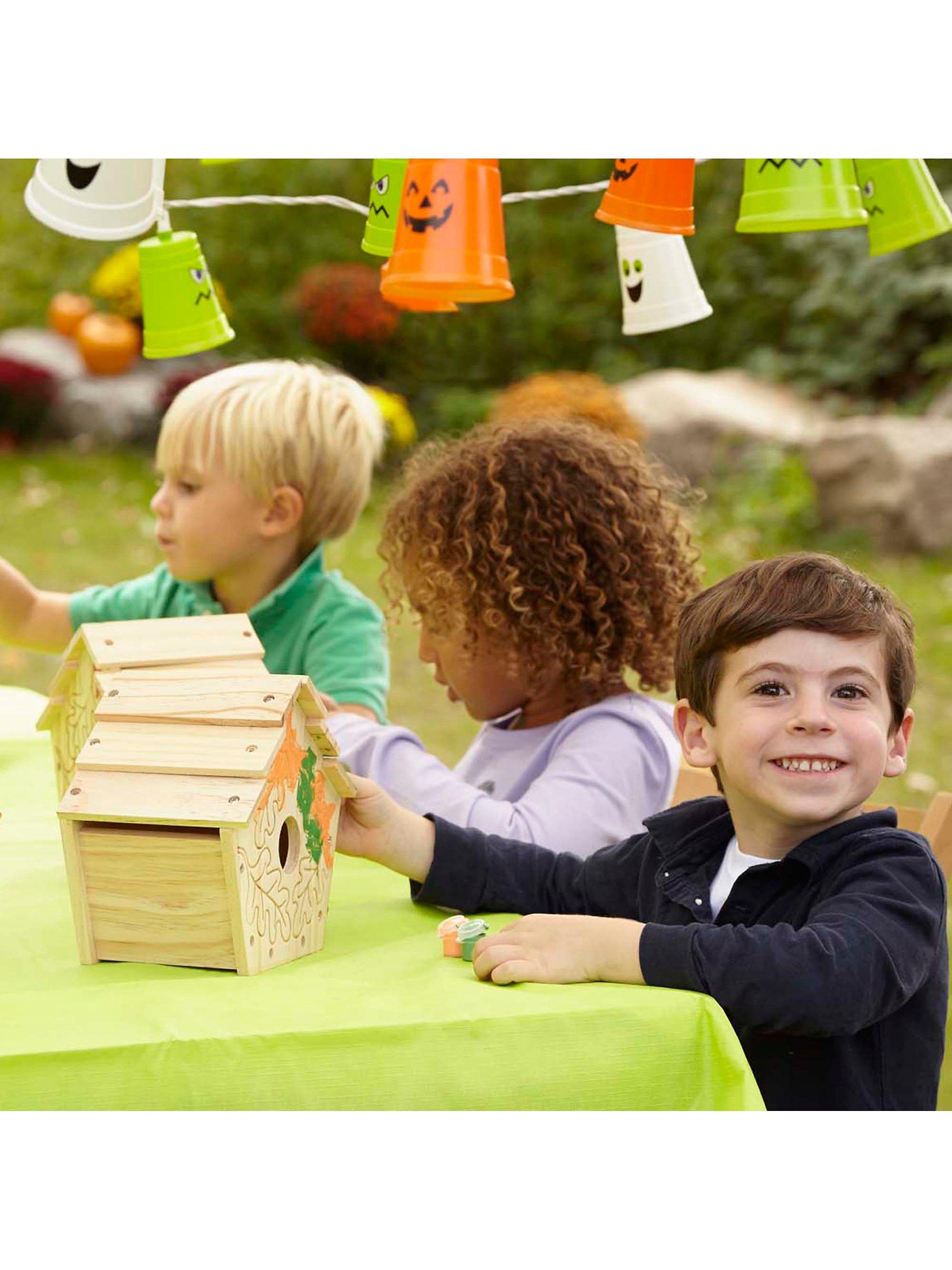 Spend ime with your child as you assemble this birdhouse and then paint and decorate it.