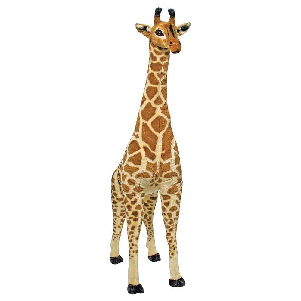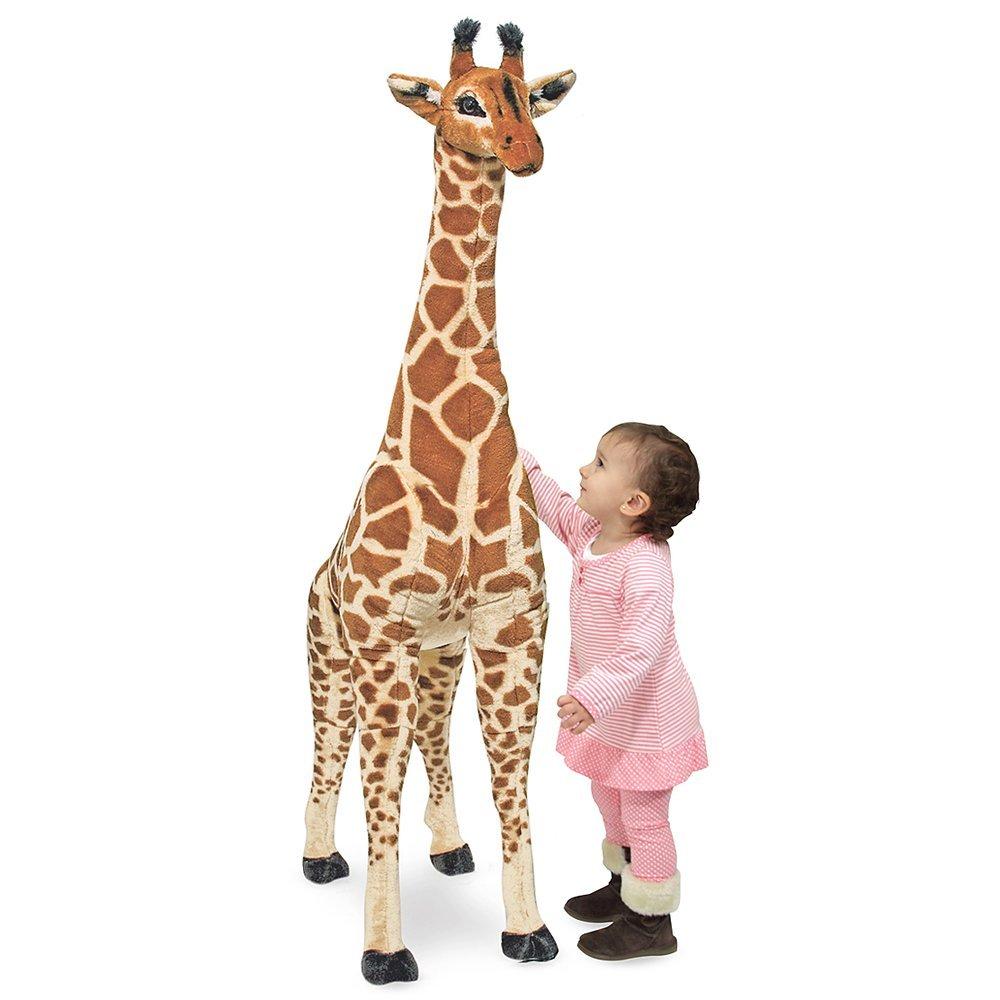 A sweet expression, long eyelashes, soft horns, and a tufted tail make this stuffed animal impossible to resist and sure to be a treasured member of any adventurers menagerie! For an added catalyst to spark imagination, create a friendly family by pairing the classic four-foot-tall giraffe with the sweet Melissa & Doug baby plush!