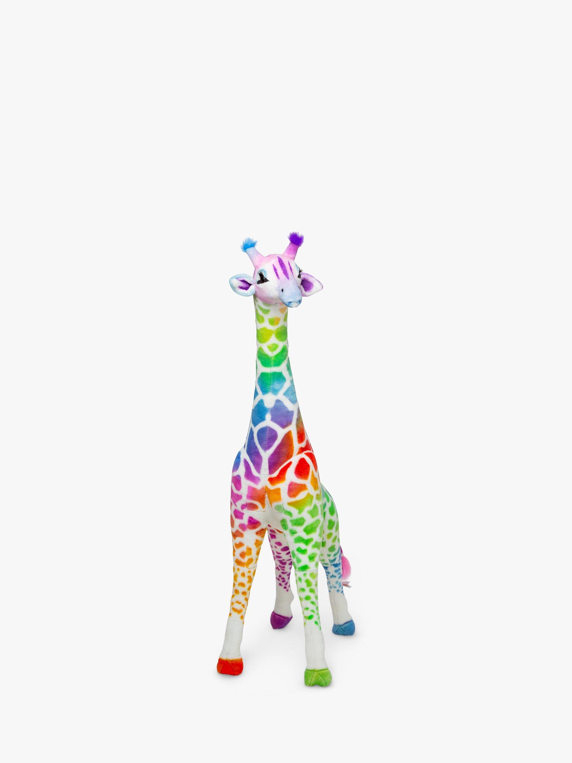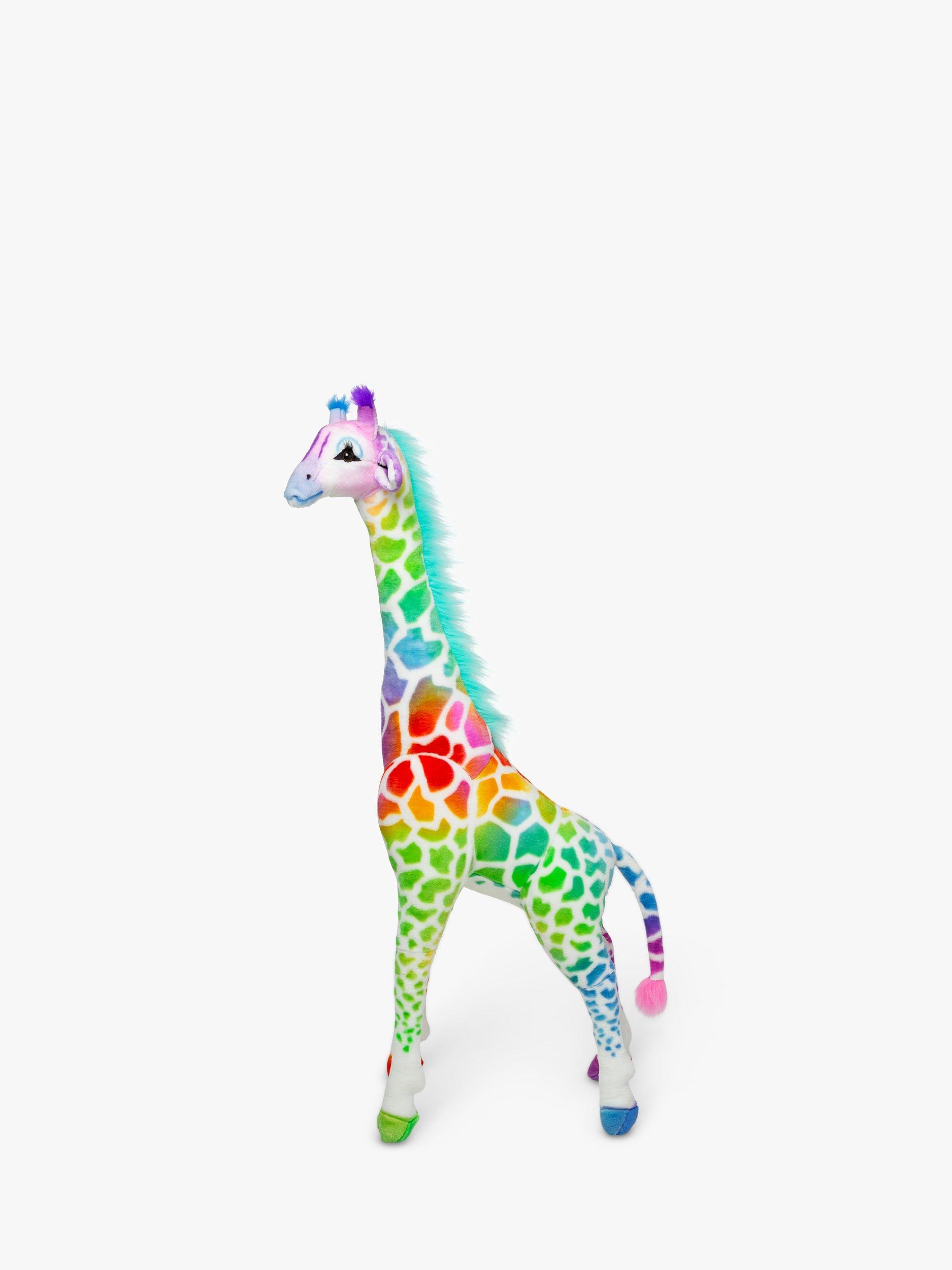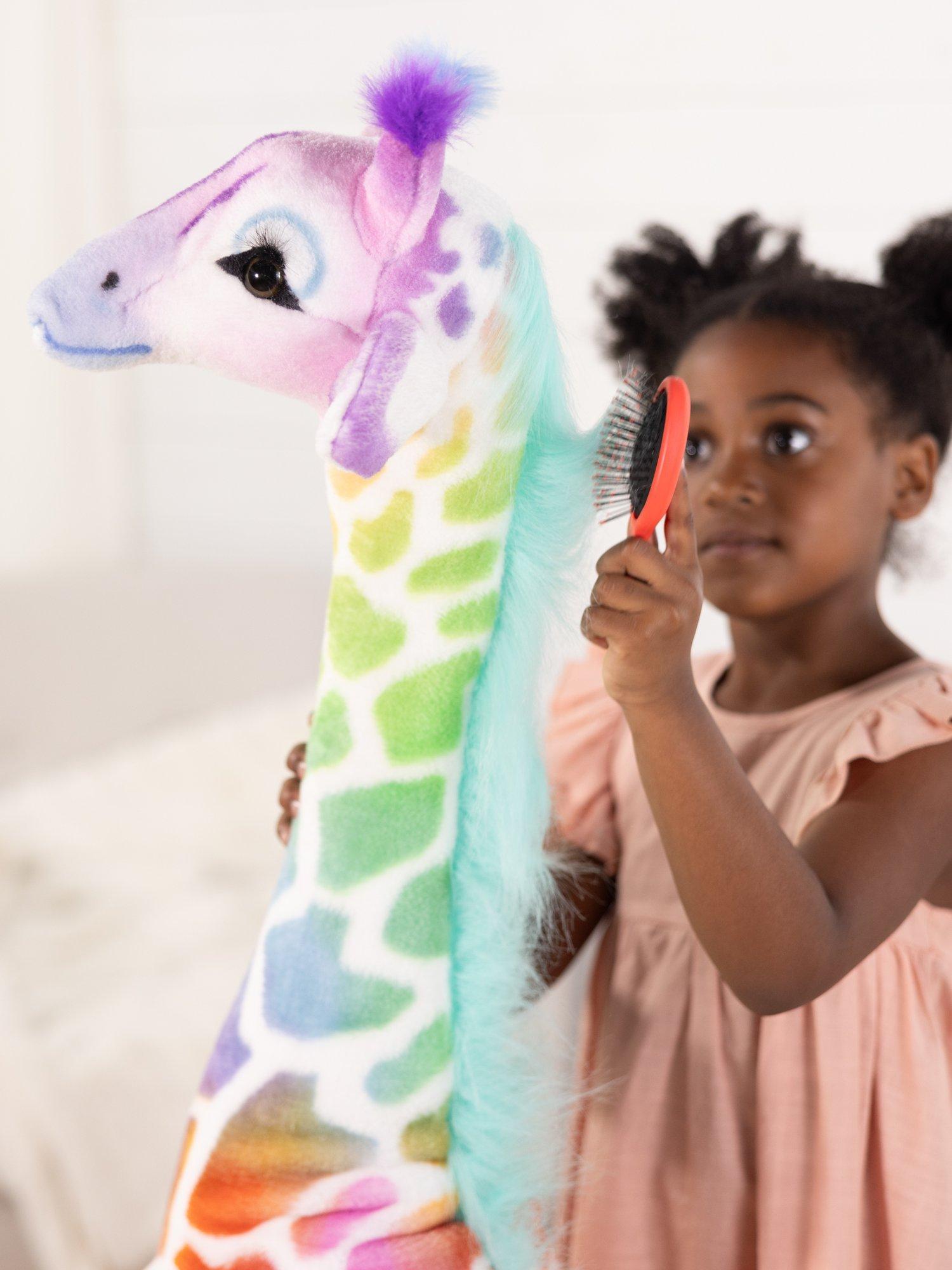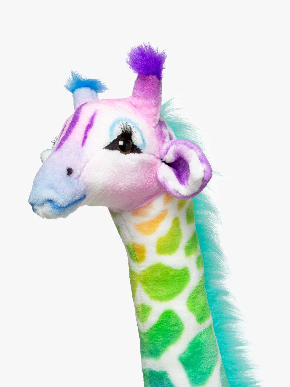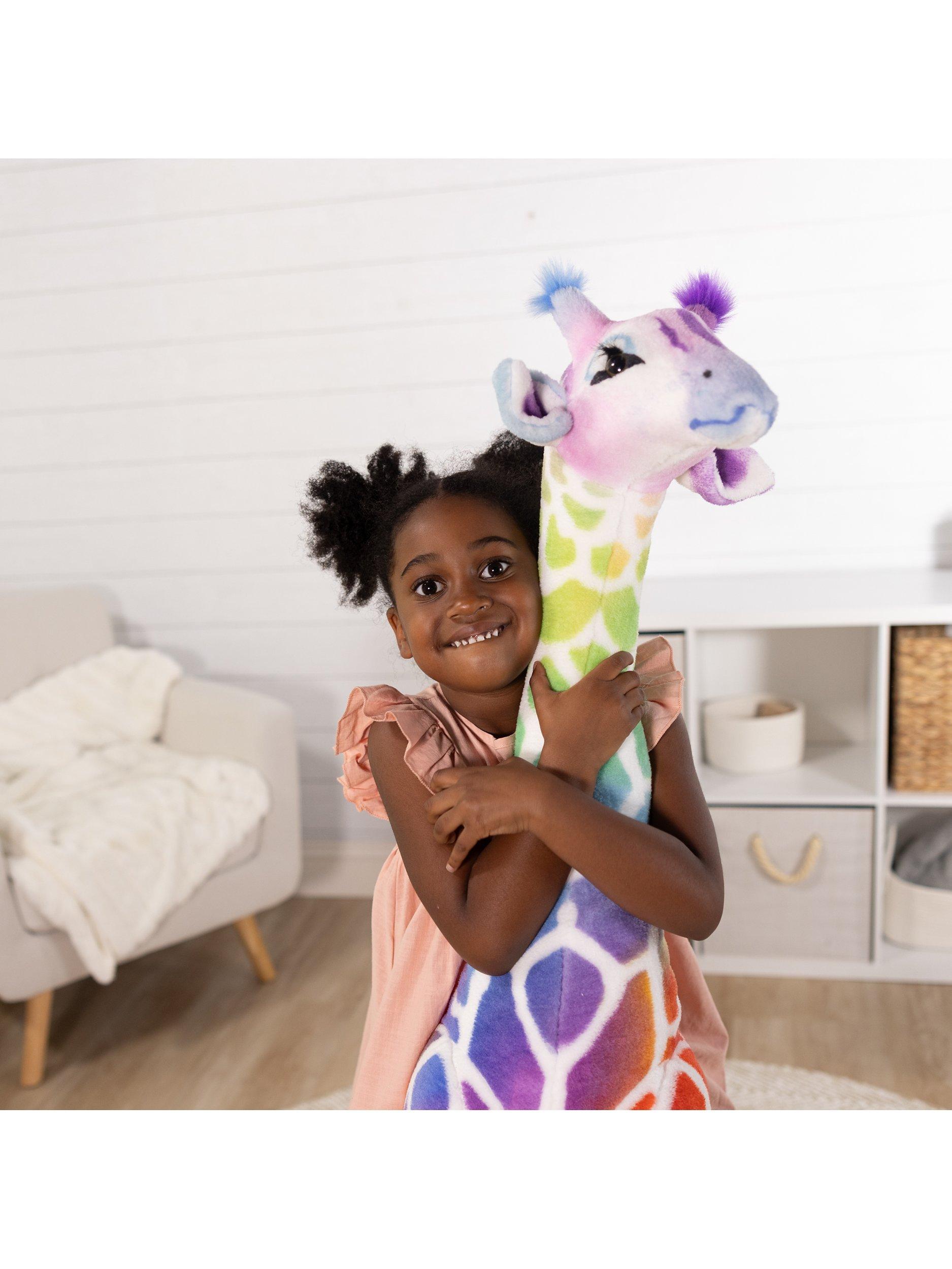 A long, curving neck and sweet expression guarantee the charming Rainbow Giraffe will be a beloved member of any child’s menagerie. While soft and squeezable to the touch (and surface washable), its sturdy construction and a strong interior structure means the giraffe will hold up to years of hugs and snuggling.