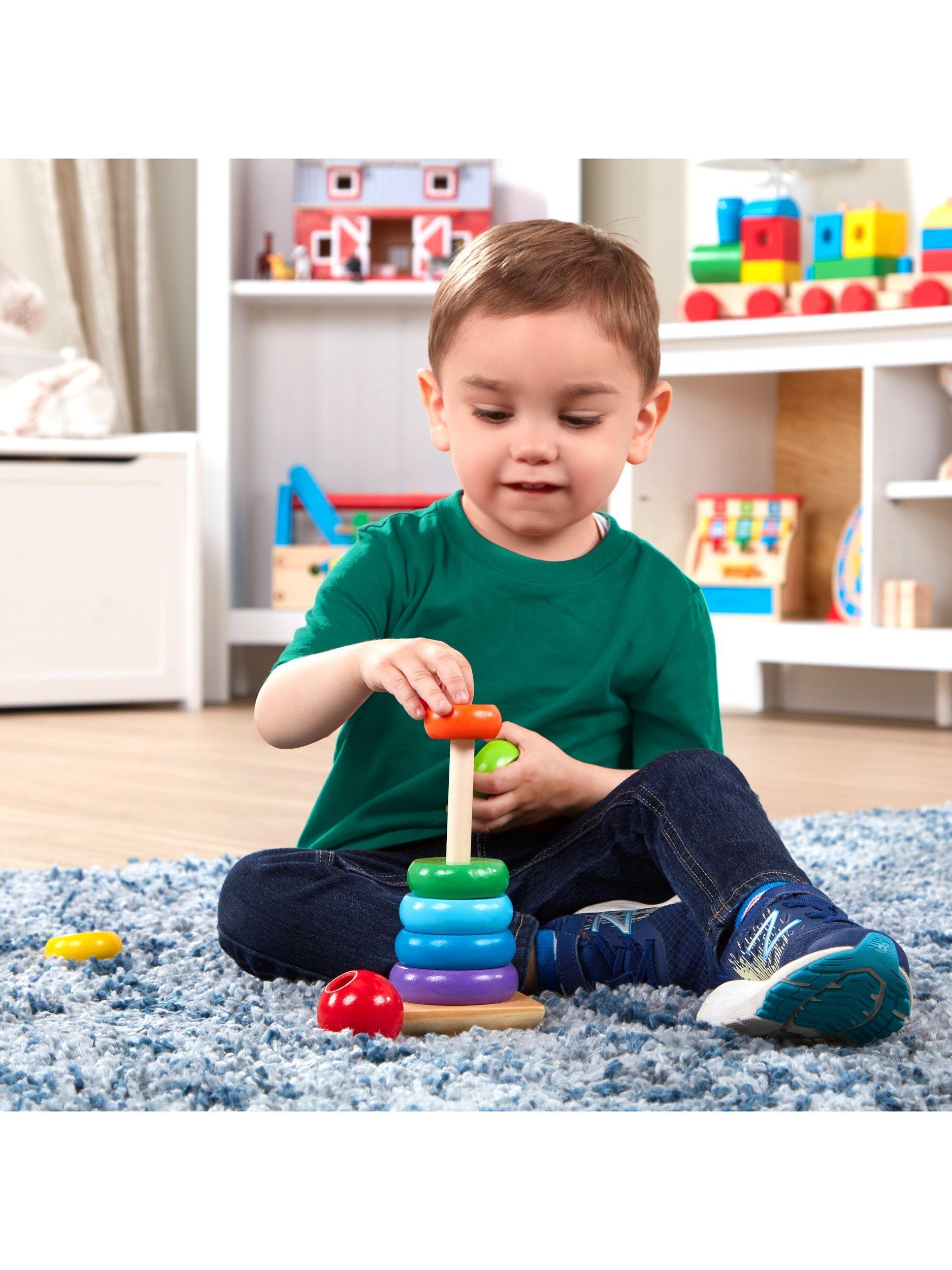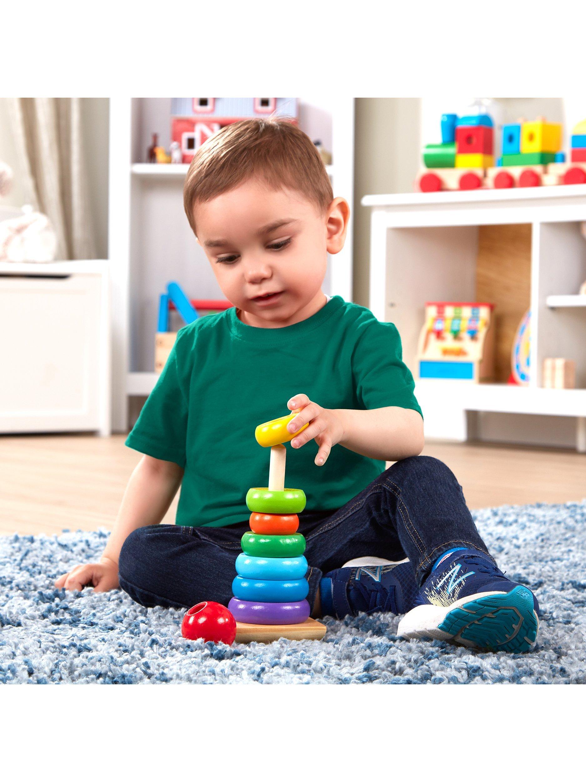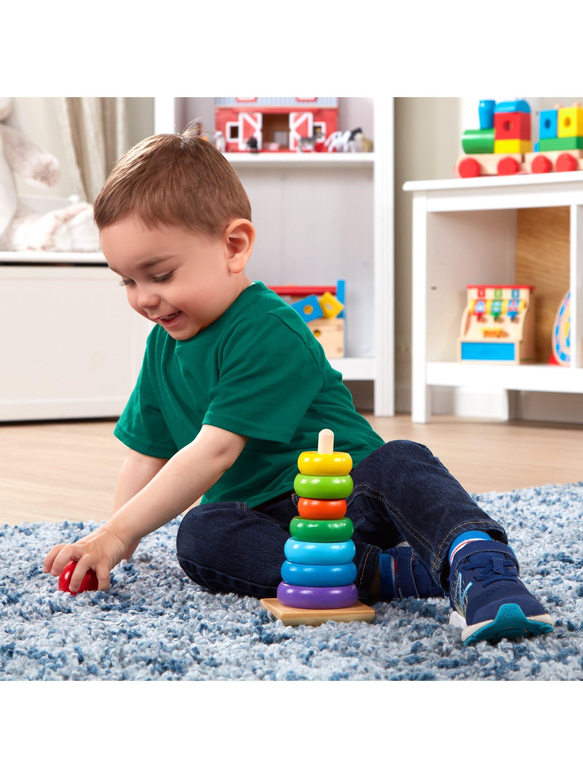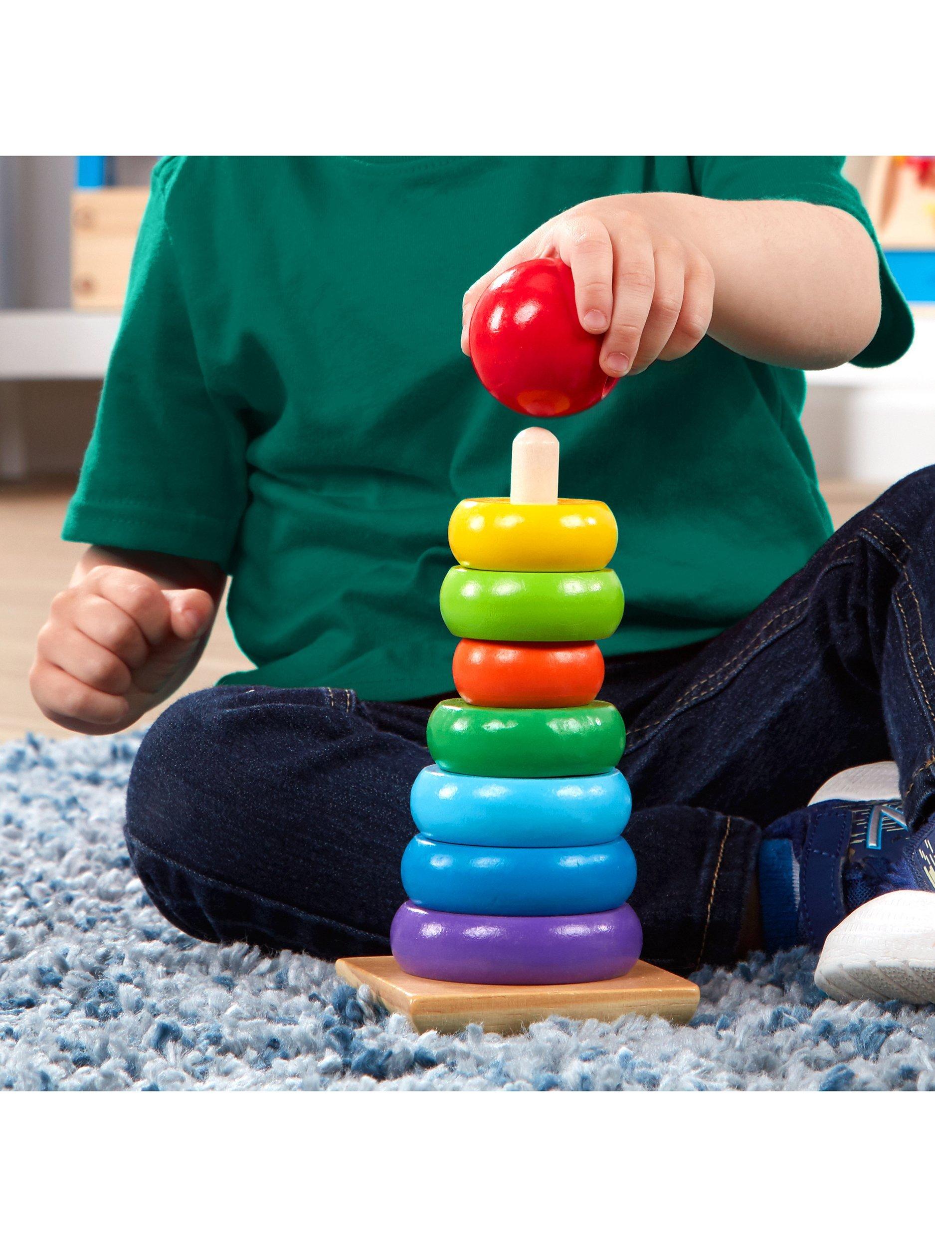 Talk about a classic childhood toy! All the colours of the spectrum are represented by these eight smooth, easy-grasp wooden pieces. Stack them on the solid-wood base designed with rocking edges for safe and intriguing play.