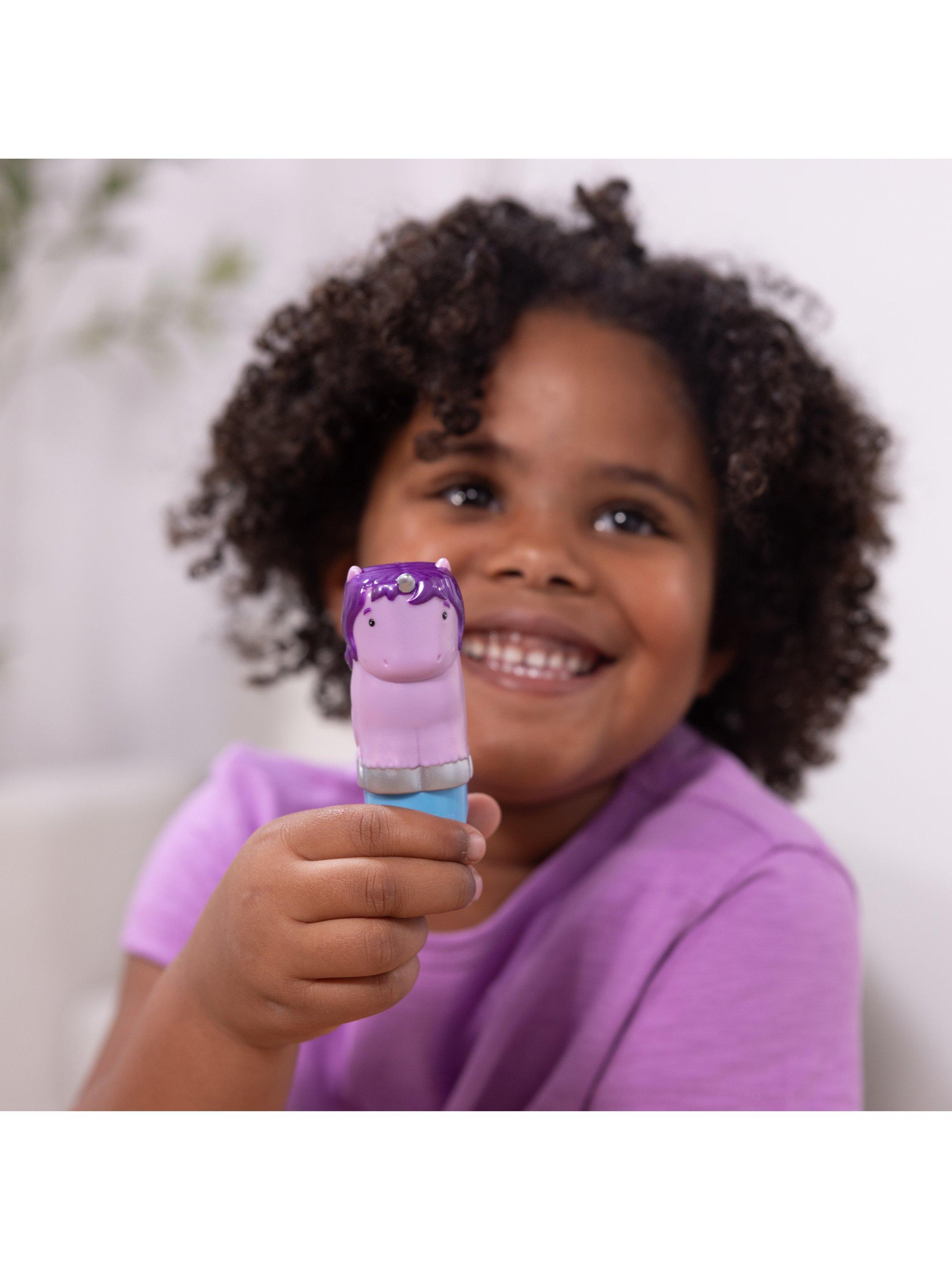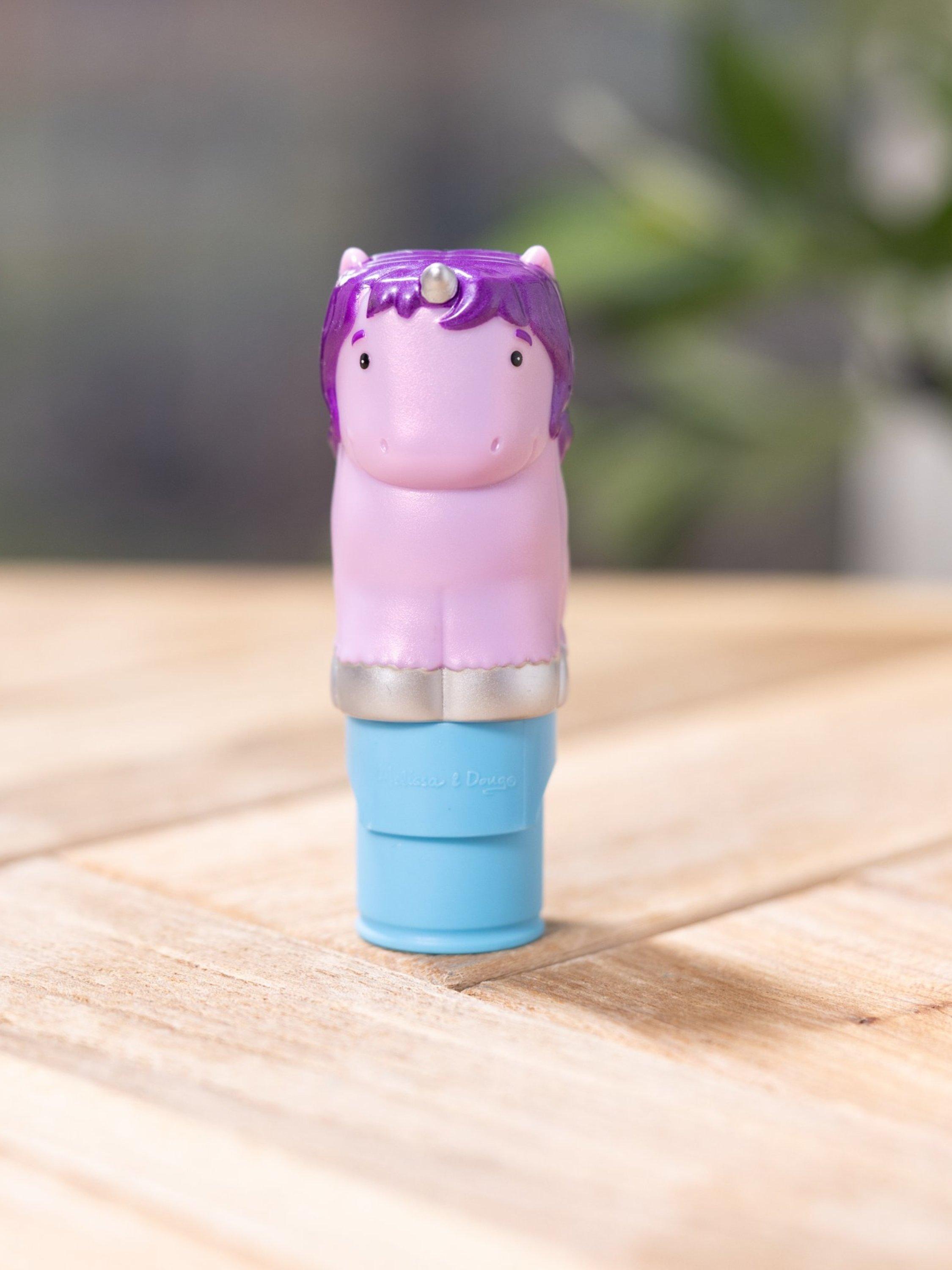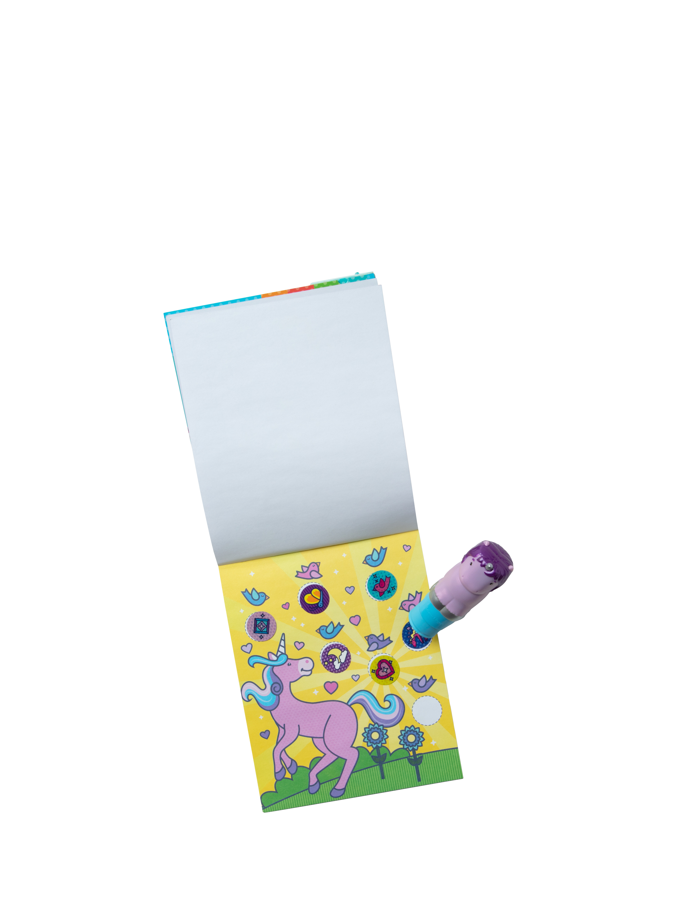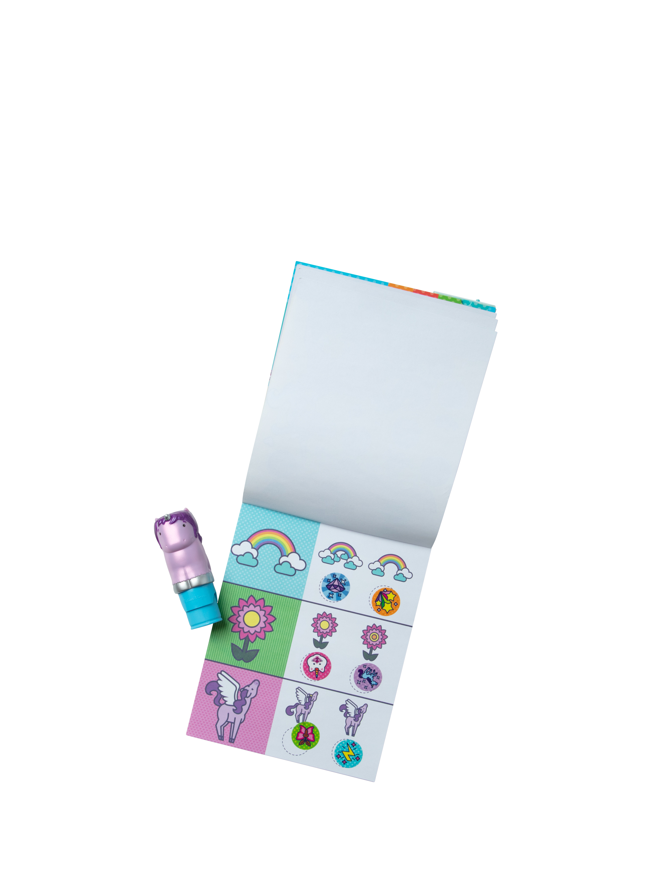 Melissa & Doug Sticker WOW!™ is a whole new way to play with stickers! Let the adorable, collectable Cupcake the Unicorn stamp, stamp, stamp its way through 24 pages of fun-filled, fantasy-themed counting, matching, and search-and-find activities. The refillable sticker stampers come pre-loaded with sticker stacks of 300 assorted stickers – with 100 unique designs in every stack, each sticker is a surprise! Stickers are not reusable, but are easy to remove if necessary. Fill in the activity pages and use for creative art projects, such as bookmarks, posters, cards, and more. Easy-to-remove stickers and the convenient on-the-go format with built-in sticker stamper storage makes Sticker WOW!™ a great mess-free travel activity. Sticker WOW!™ (patent pending) promotes fine motor skills, encourages creative play, and it’s satisfying, fidget fun!