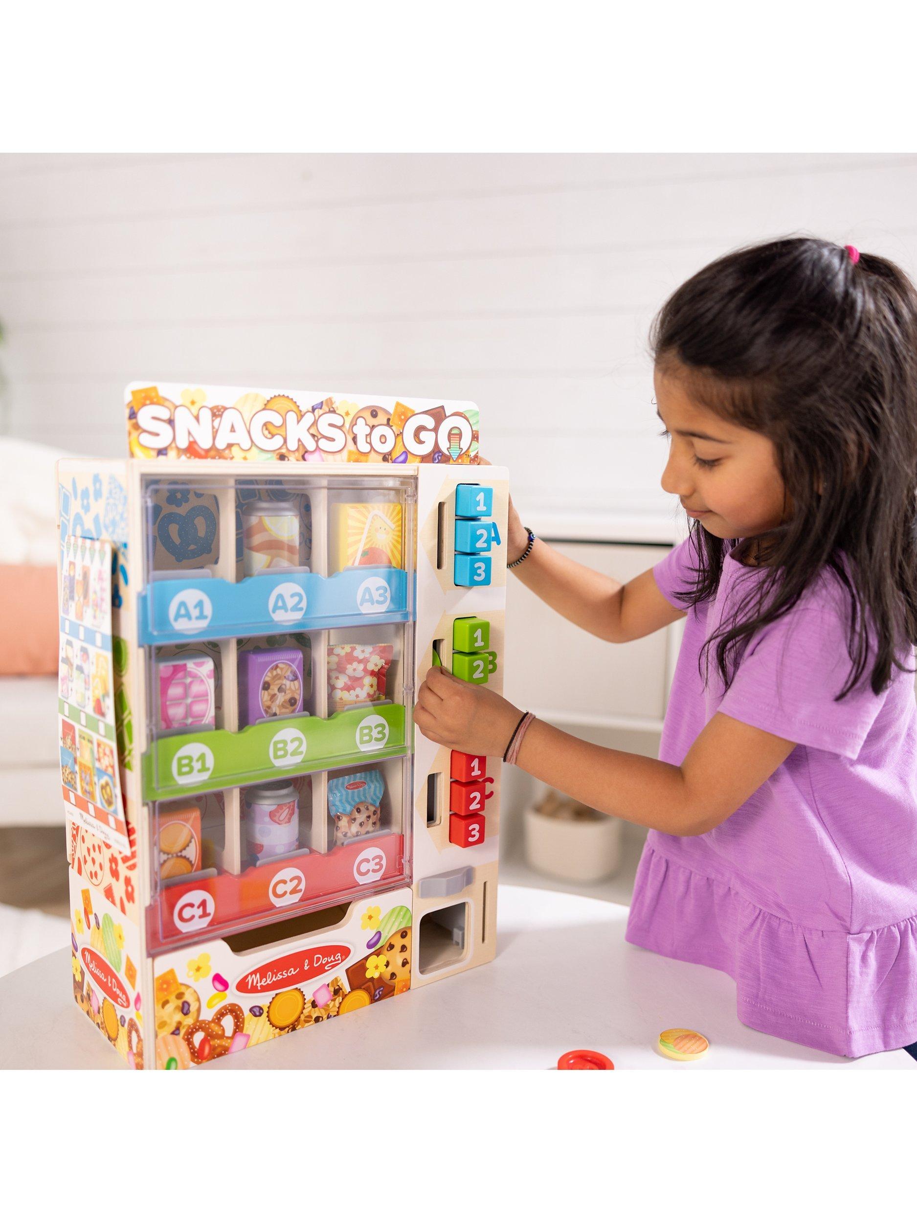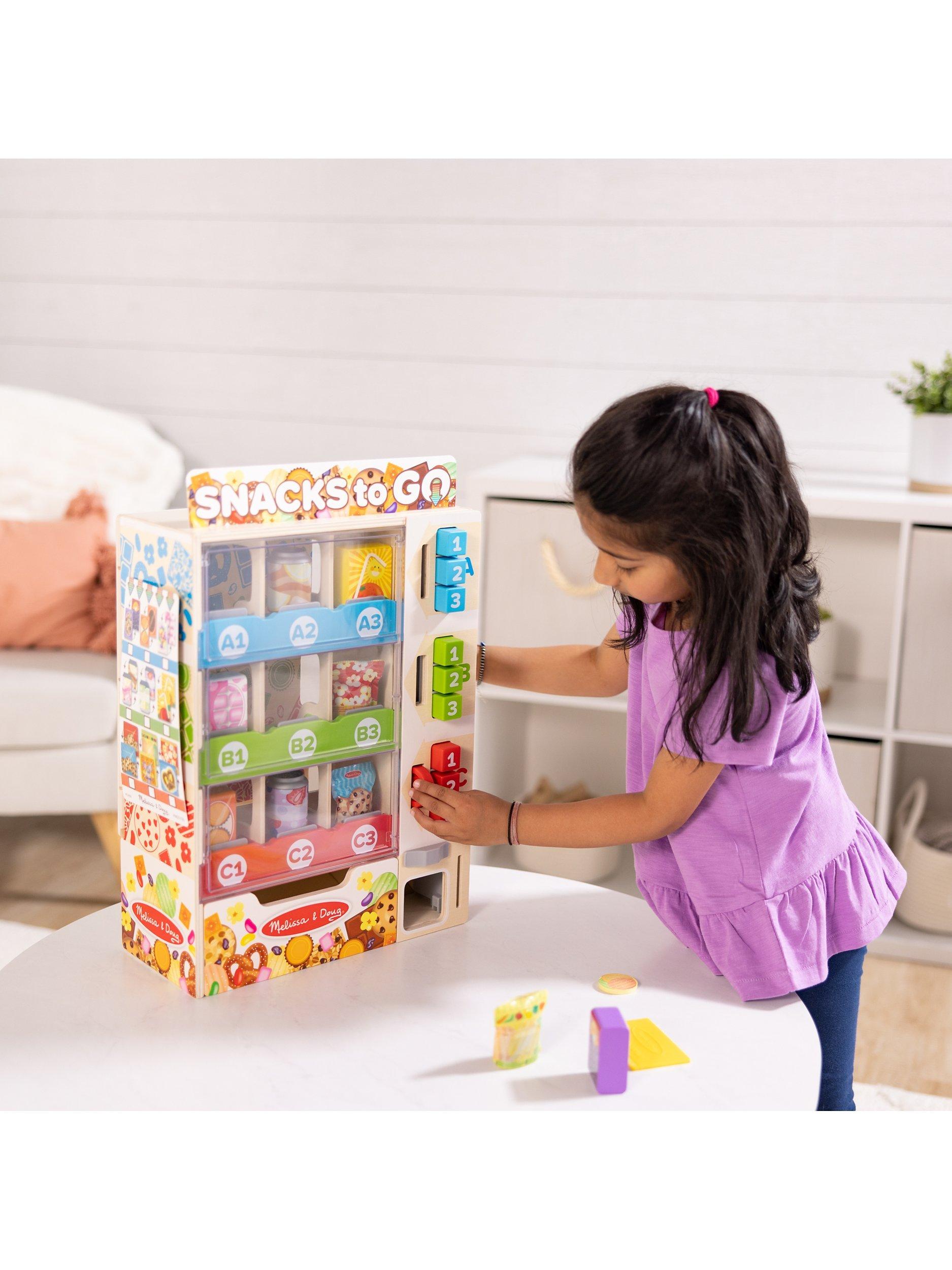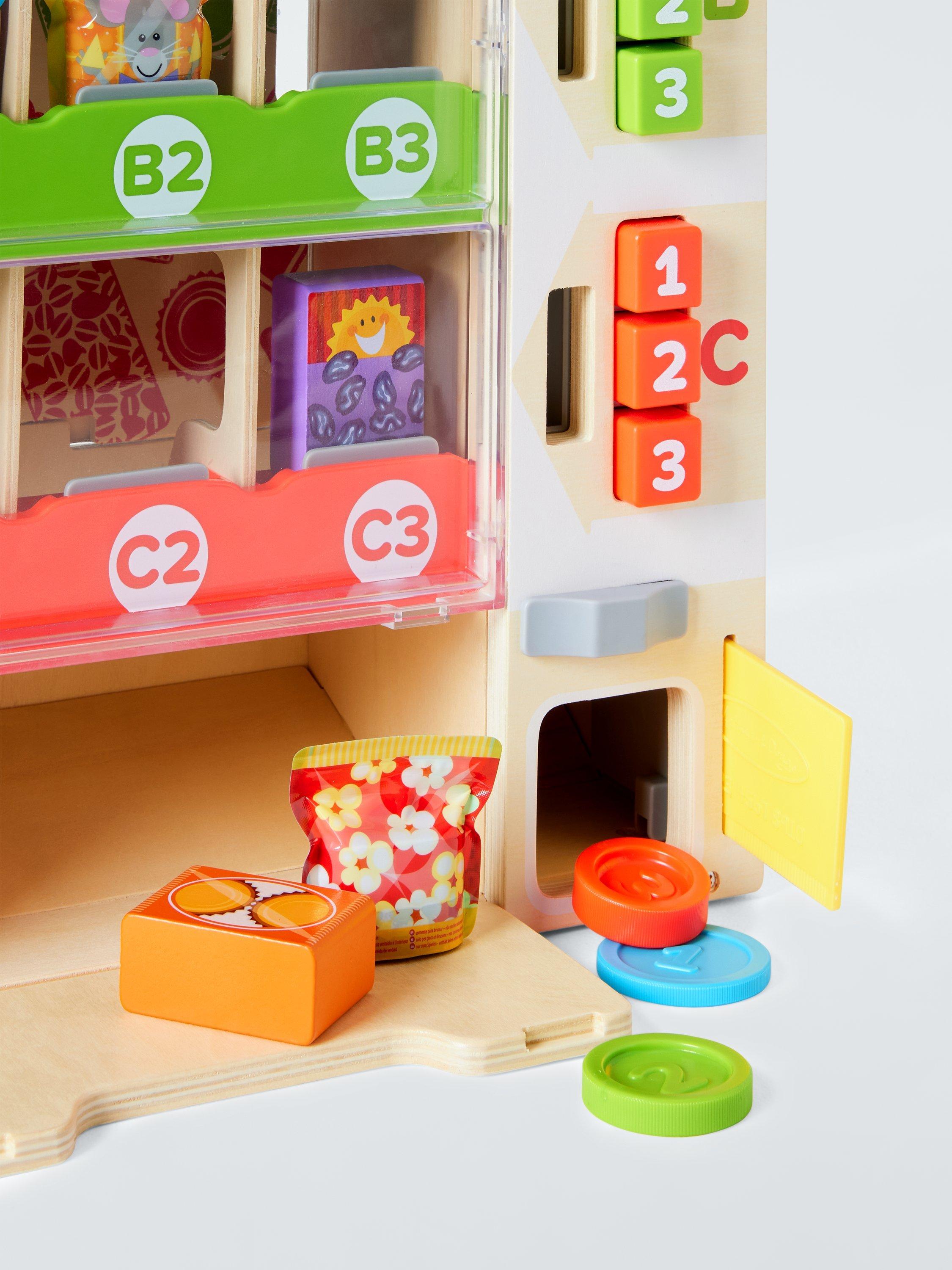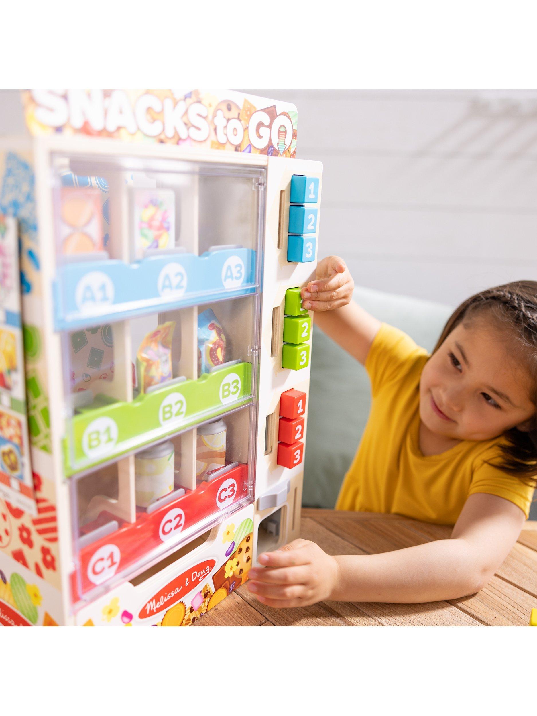 This vending play set is an engaging, hands-on way to help teach kids about cause-and-effect, and to encourage letter, number and colour recognition, sorting, matching, counting and fine motor skills.