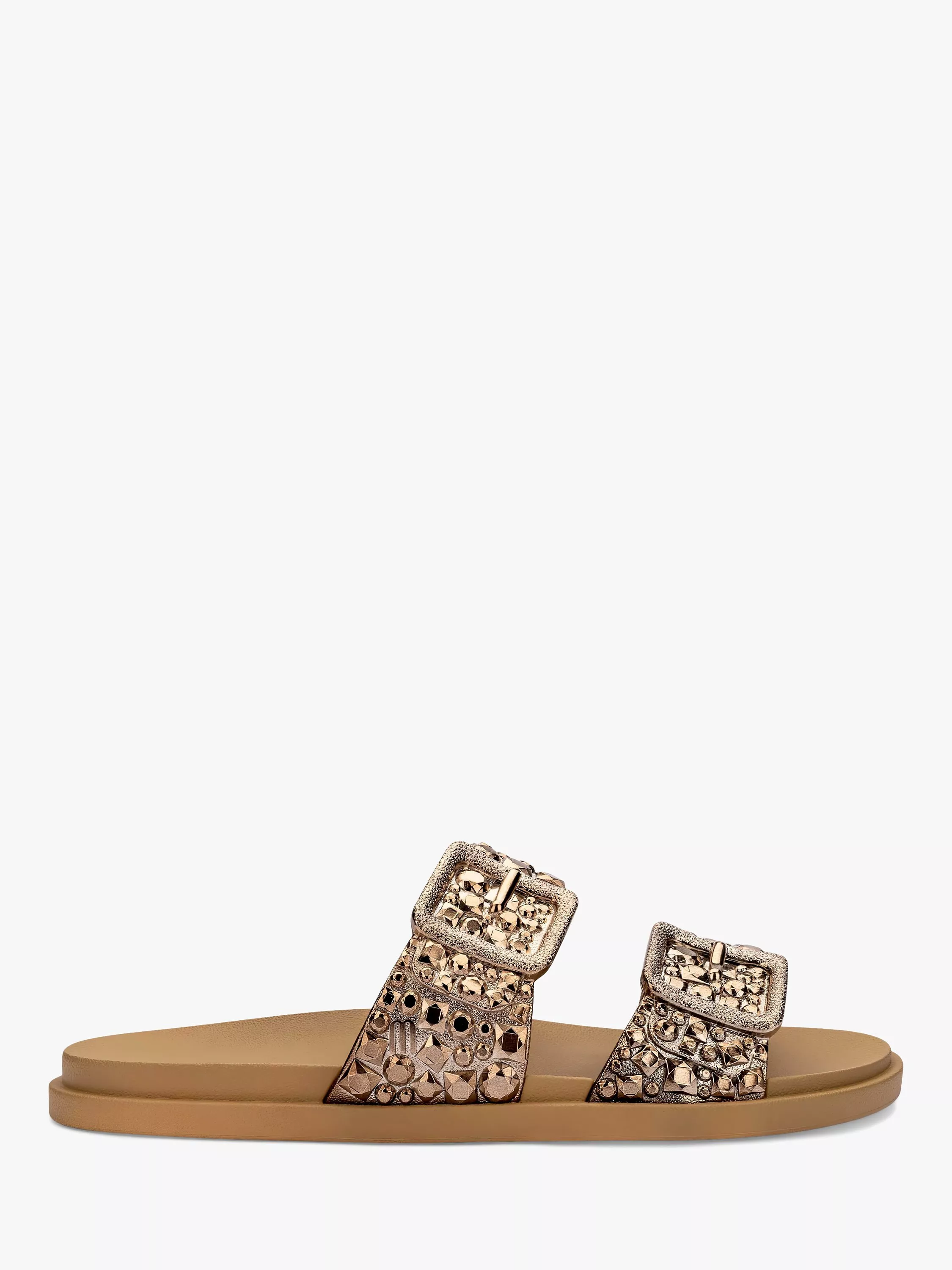 The upper is made out of Full Plastic PVC and has a chrome effect and this ultra-lightweight style is completed with non-adjustable buckles.