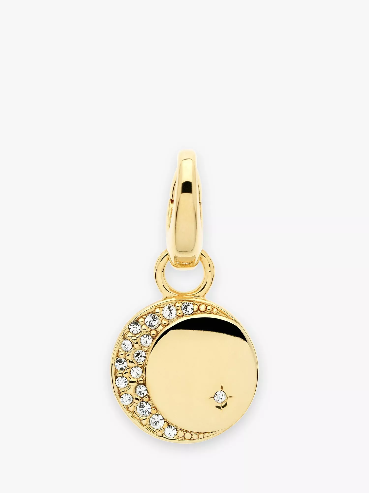 Inspired by the beauty of the night sky, this disc charm uses sparkling crystals to depict a crescent moon and sparkling star. With a beautifully polished finish, the charm is ideal for adding to a bracelet or necklace.