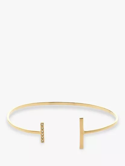 With a minimalist and sleek design, the piece will add charm to an outfit with its sparkling crystals. Its open-end structure is made to adapt to the wrist effortlessly.