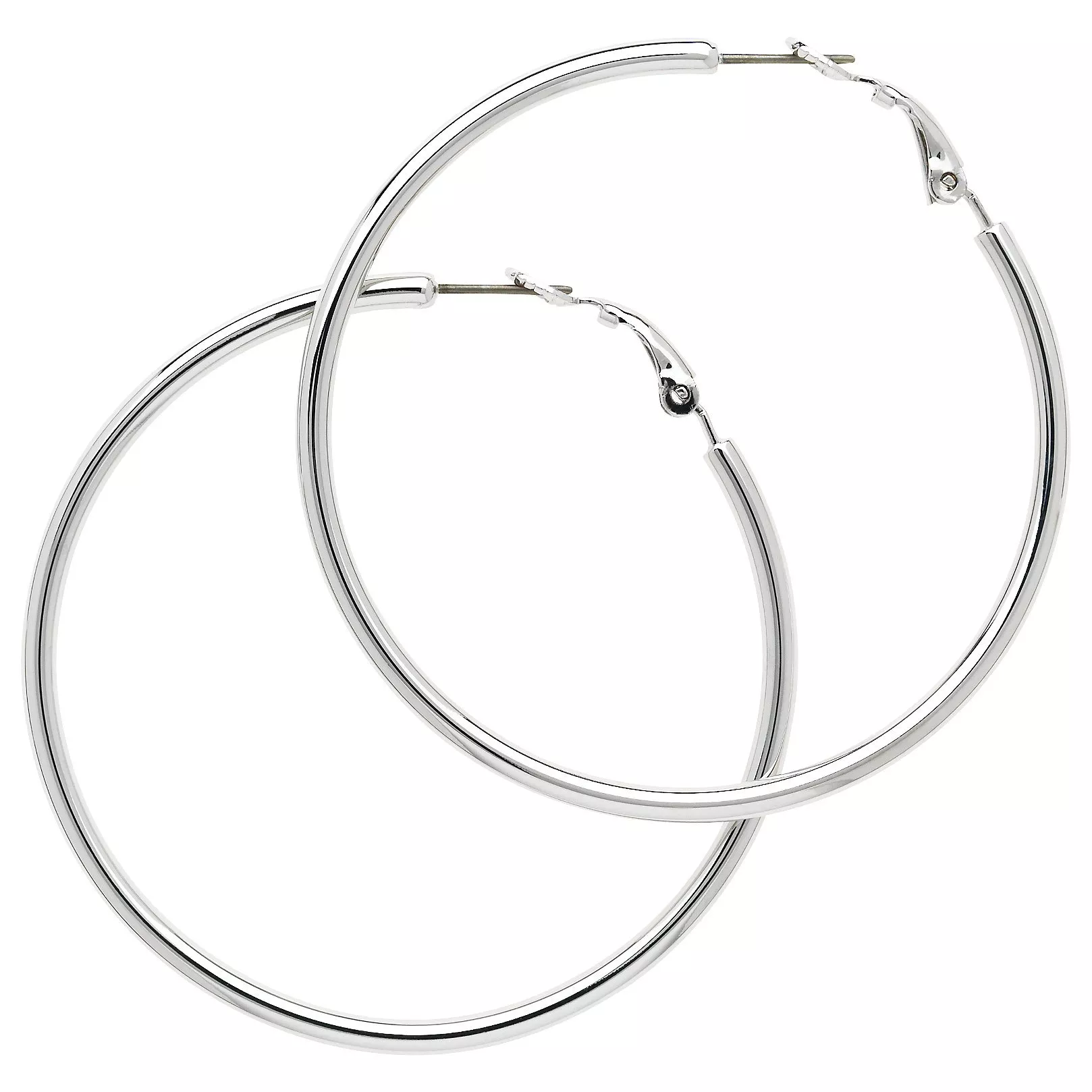 The pair has a lustrous thin hoop design and classic post fittings that are suitable for pierced ears only.