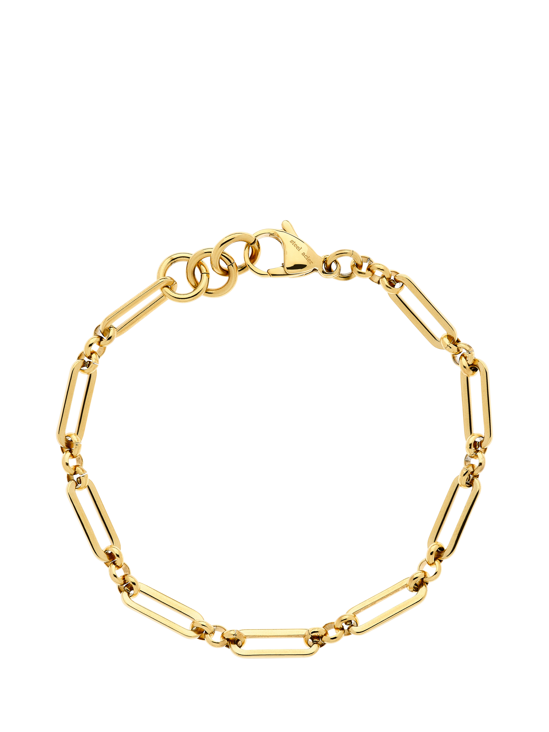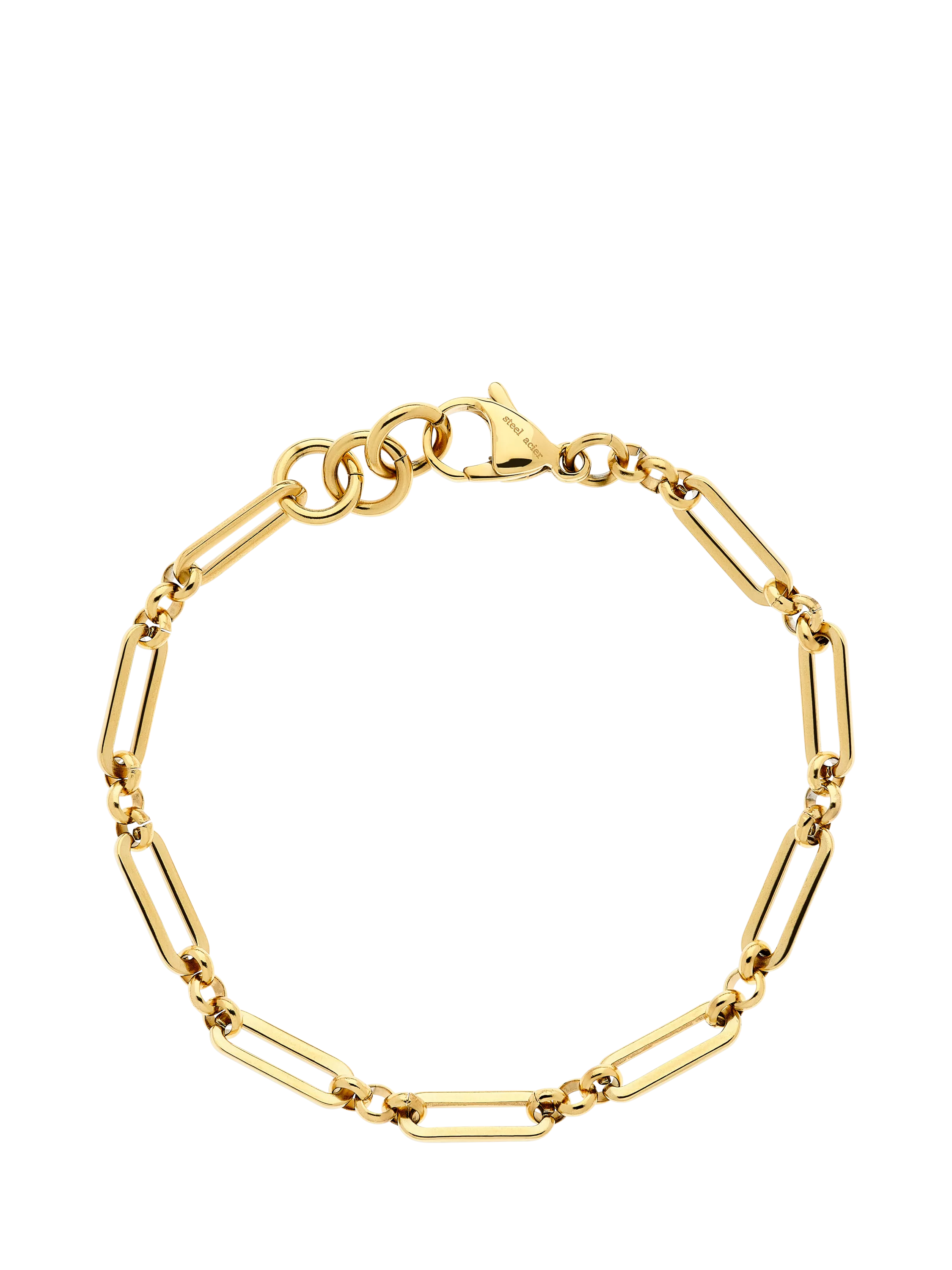 This classic mixed link chain bracelet is designed to look elegant alone or stacked with other bracelets.