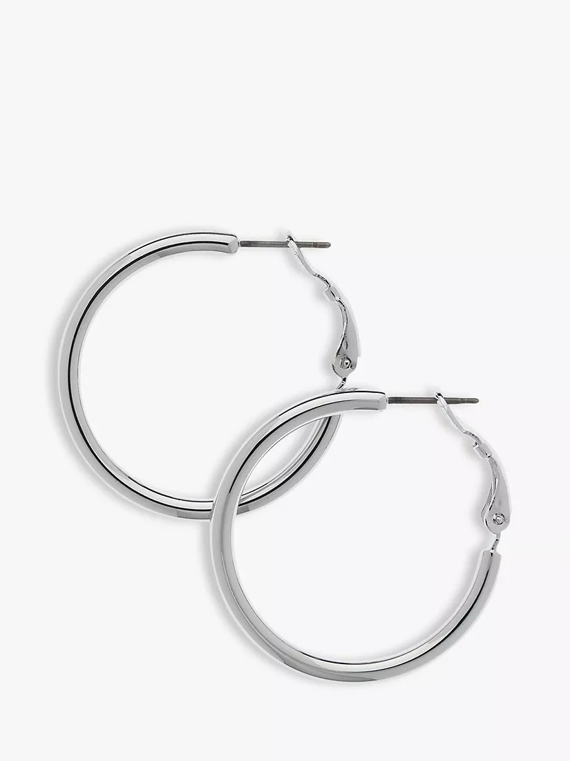 Simple and classic, these hoop earrings are finished in a polished rhodium plating for a brilliant, bright shine. With leverback stud fittings. Supplied in a velvet pouch.