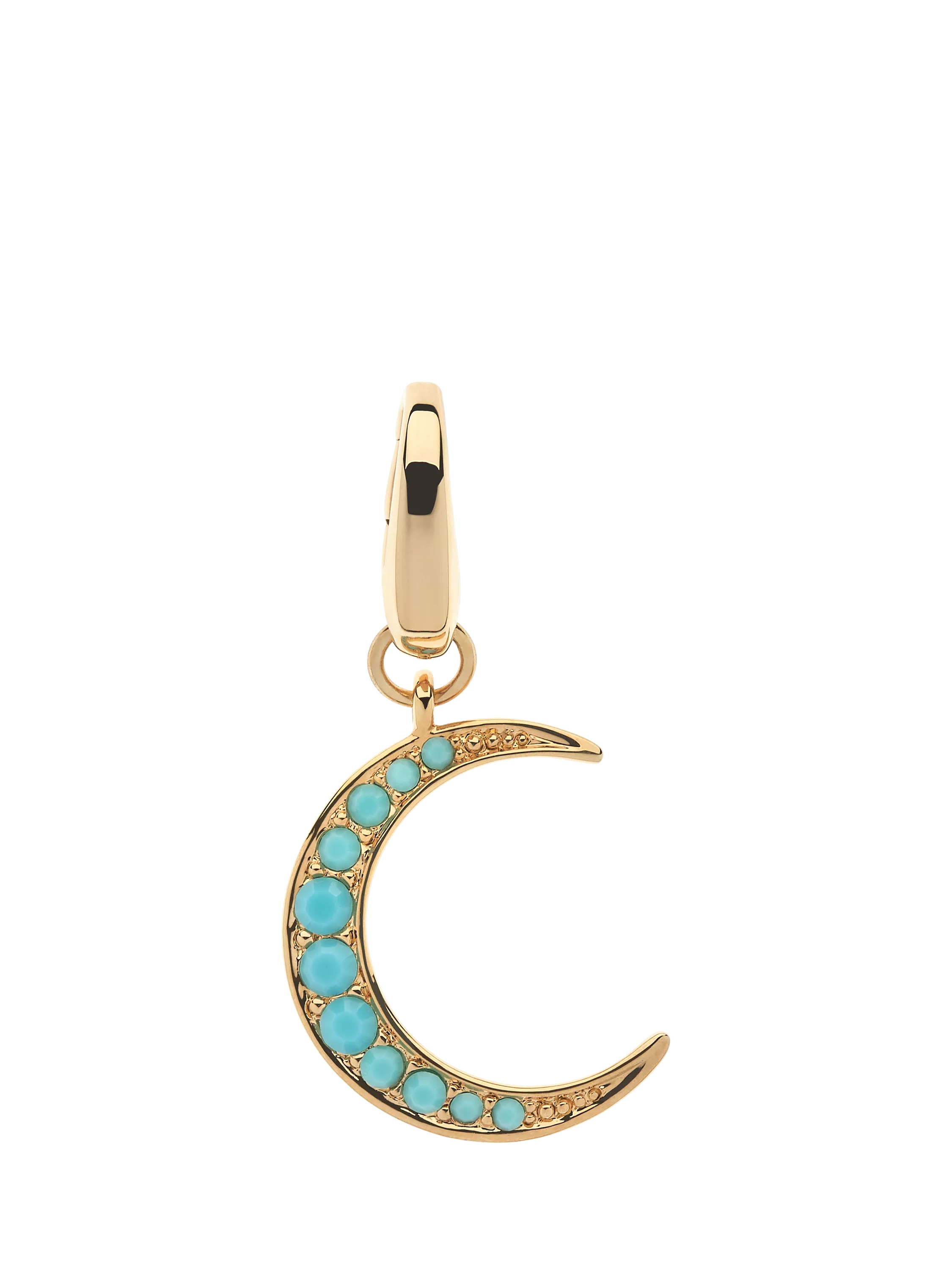 This moon charm is studded with eye-catching turquoise crystals, the perfect finishing touch for both a necklace or bracelet.