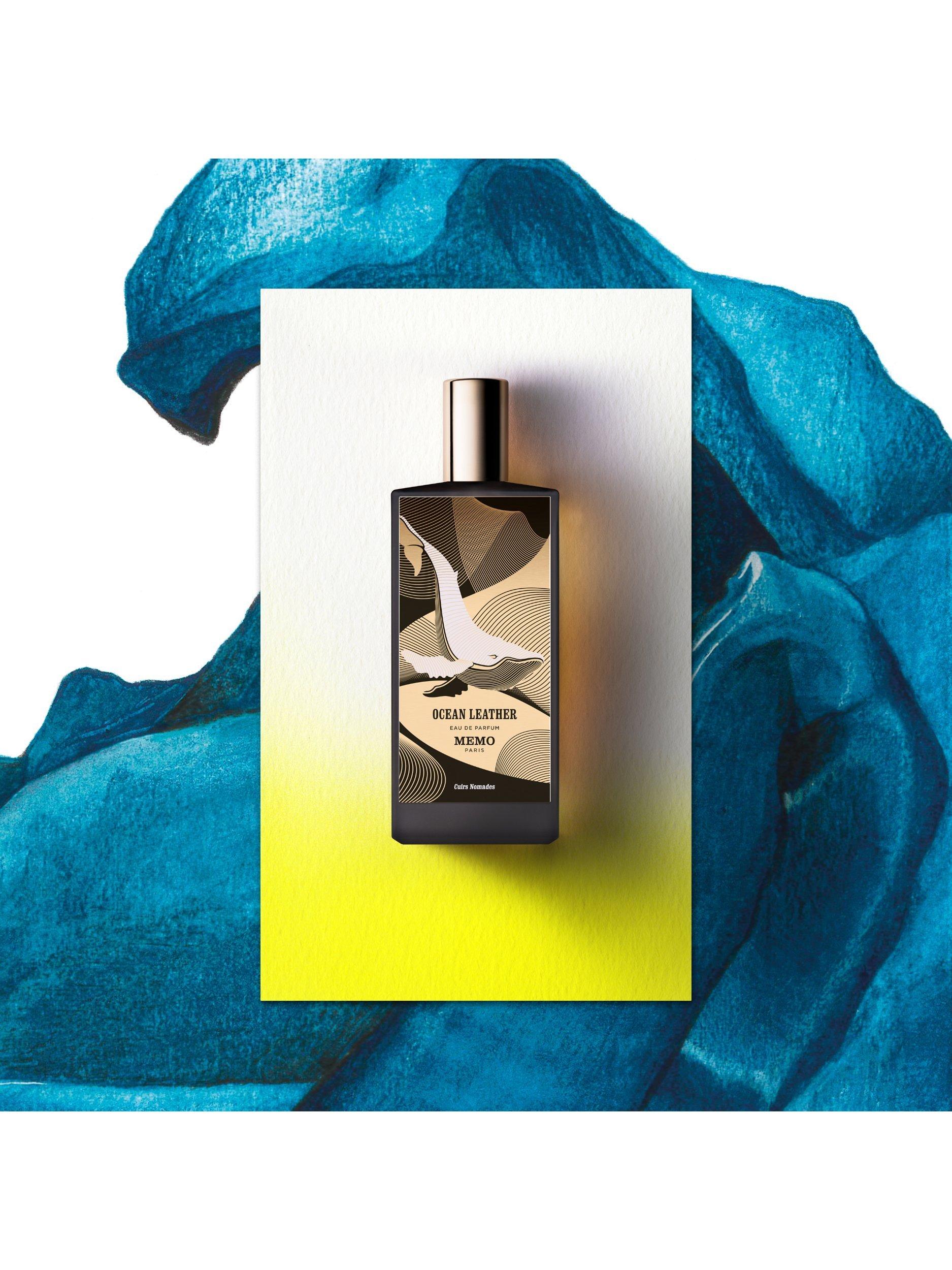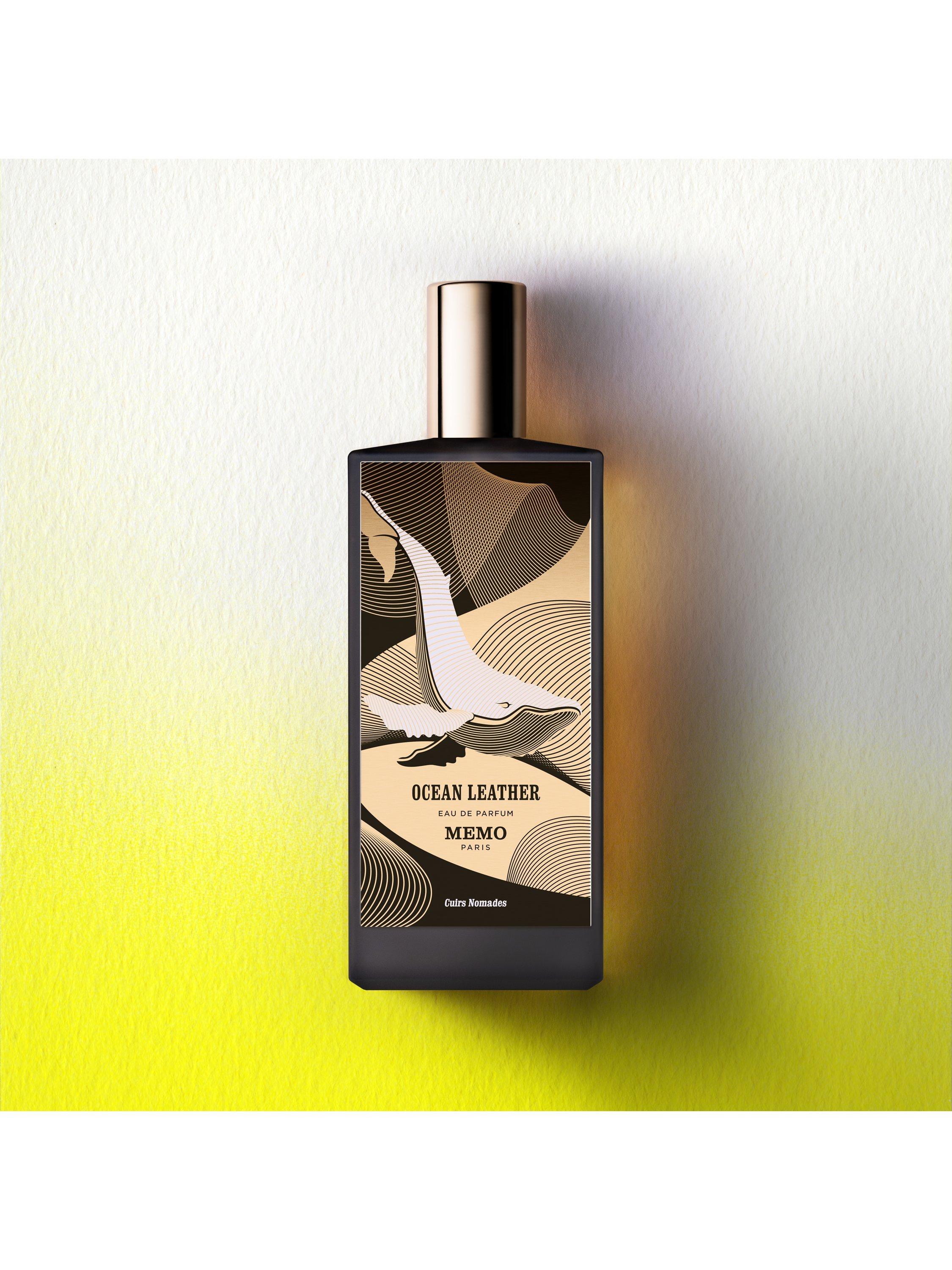 With Ocean Leather, Memo decides to leave the mainland to embark on a major destination, an infinitely blue one, the ocean, and sets off in search of a majestic cetacean, a mythical animal that has inspired literature and now the imagination of a perfume.