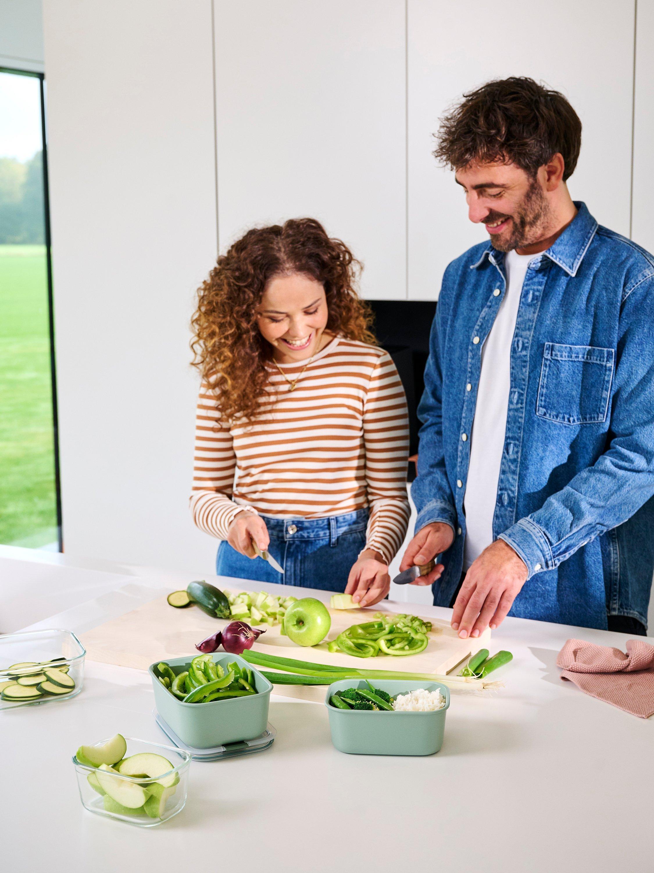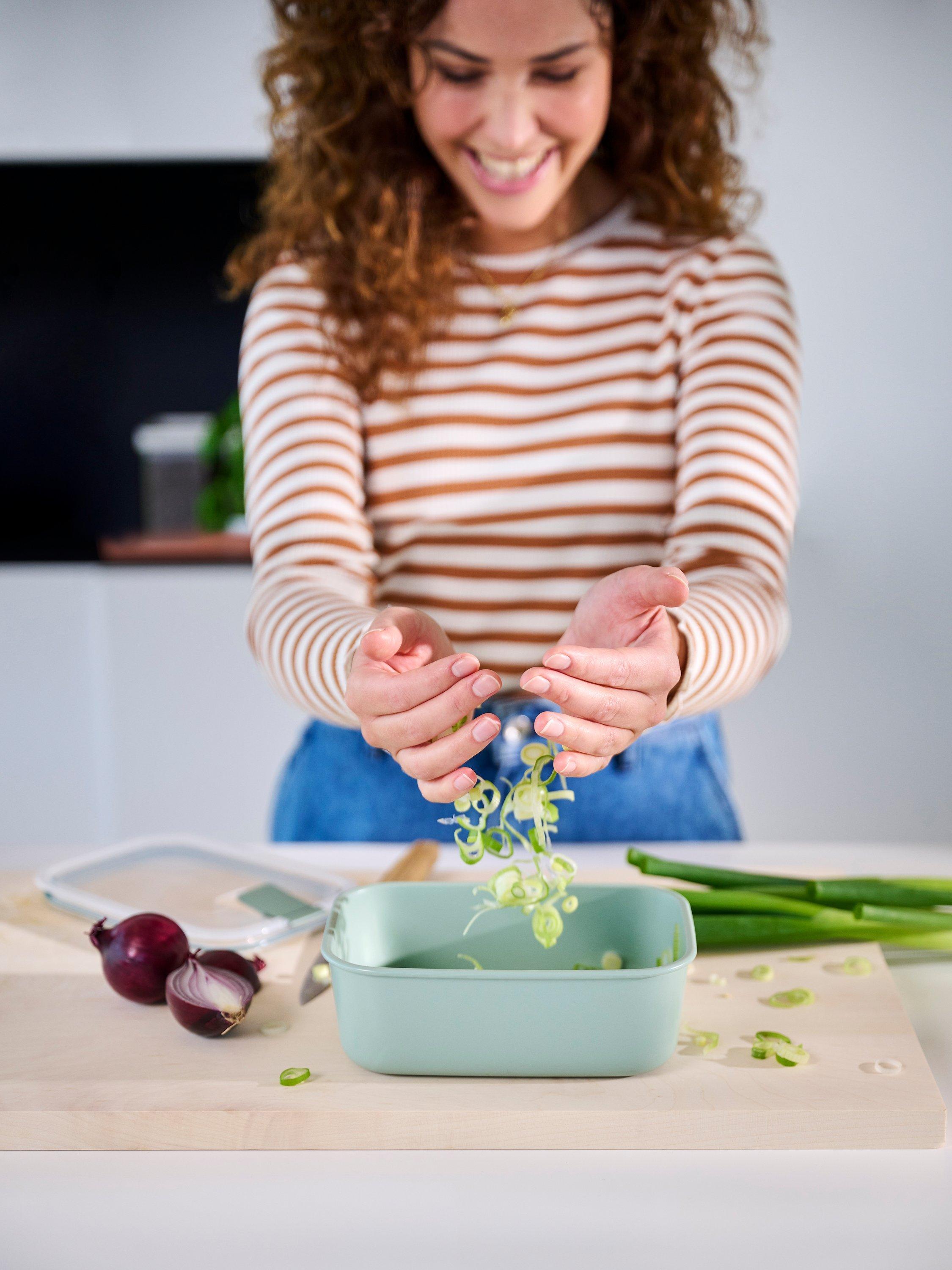 Store leftovers inside. With one click it's leak-proof and aroma-tight. Click, seal and store. Thanks to the design of this storage champion you will have super sleek organisation in your fridge or freezer. And because of the transparent lid and dish you can see the contents at a glance. All EasyClip boxes have the same height for a super sleek organisation.
