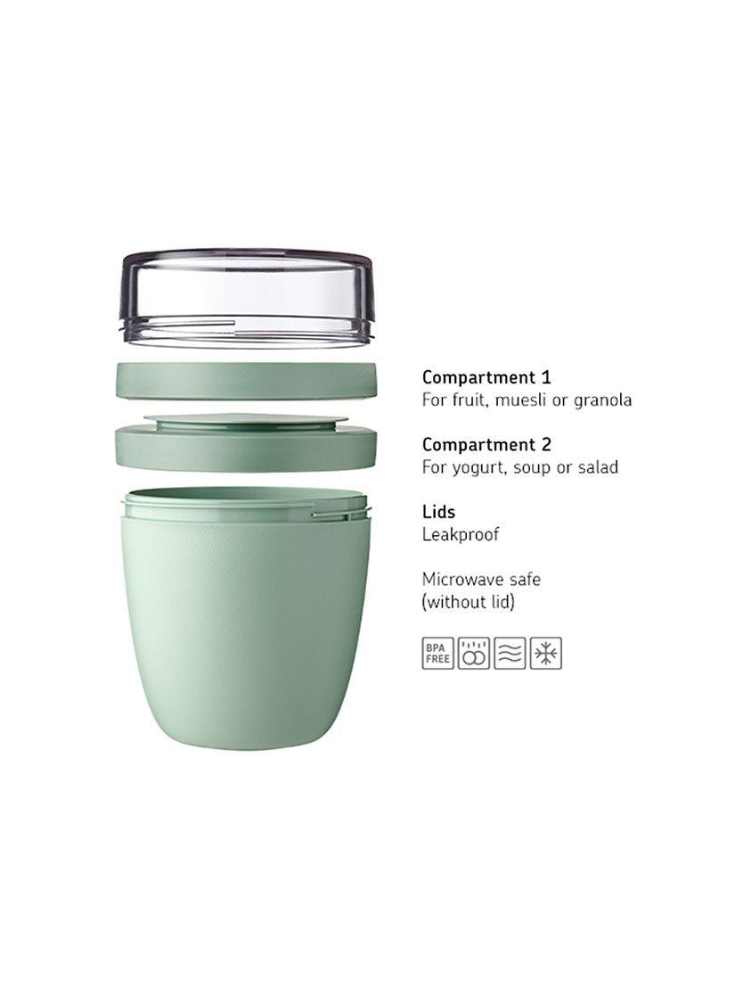 Ellipse lunch pot from Mepal with two compartments to keep different ingredients separated. Store in the fridge or freezer, and the large 500ml compartment can be heated up in the microwave at mealtimes.